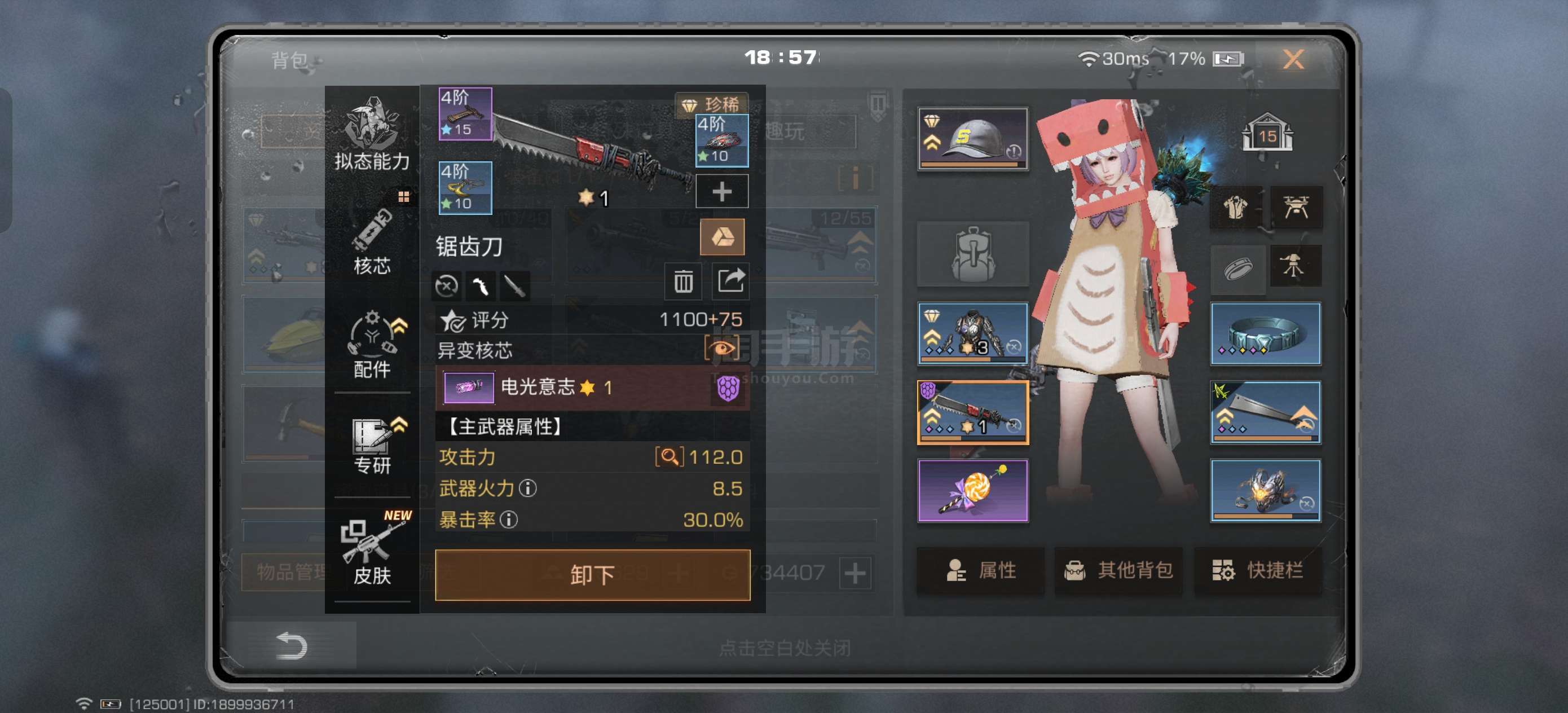 新服小顶武士,配件16 10 10,15 10 12,t0梯队配件等级潜能10500,多时装有纸恐龙
