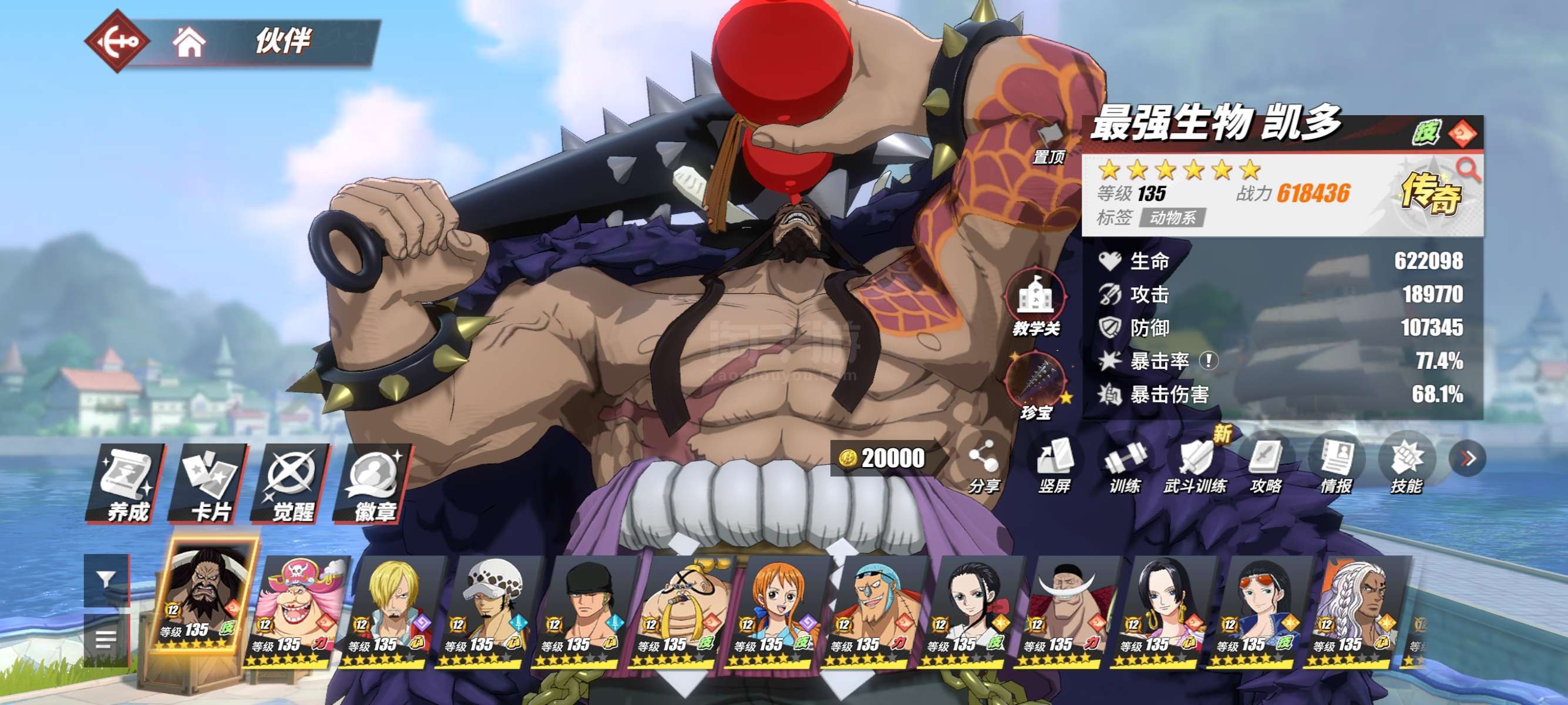 航海王热血航线【安卓官方】6820万战力。3万3金果131高级抽。66传奇8强者4典藏。23艘船。珍宝:6星凯多。白胡子。