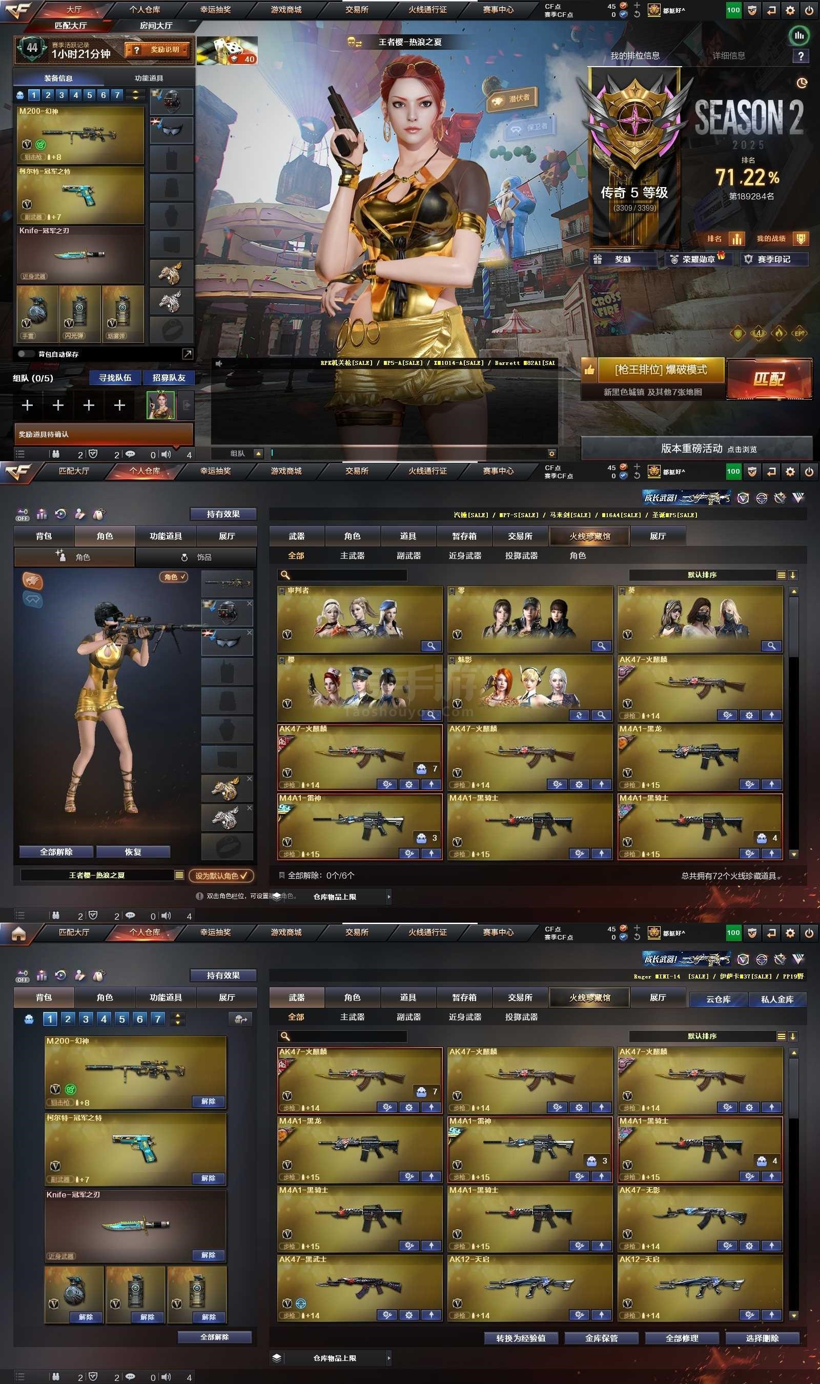 3王者武器 1炫金武器 72V武器 5V角色 13皮肤 可排位