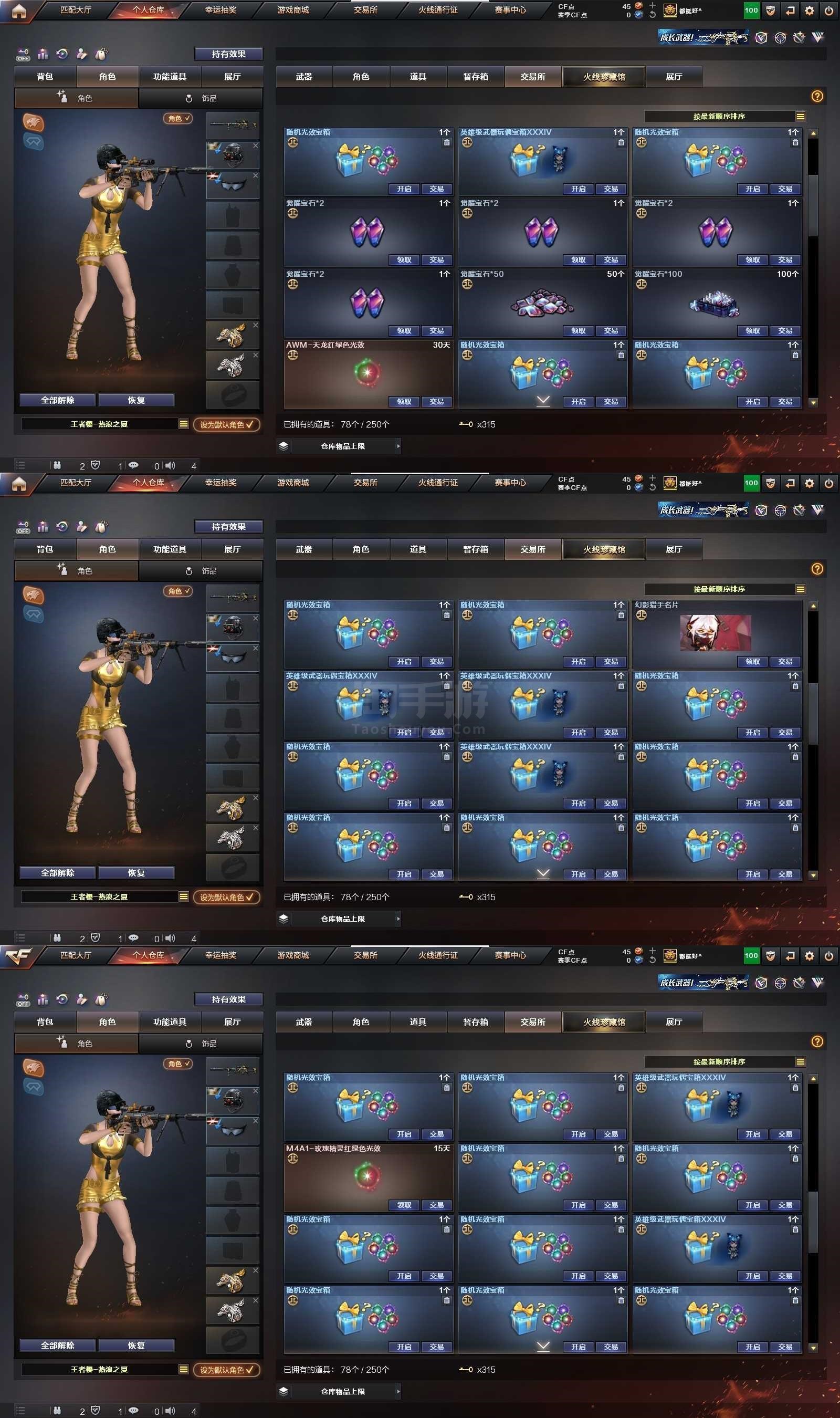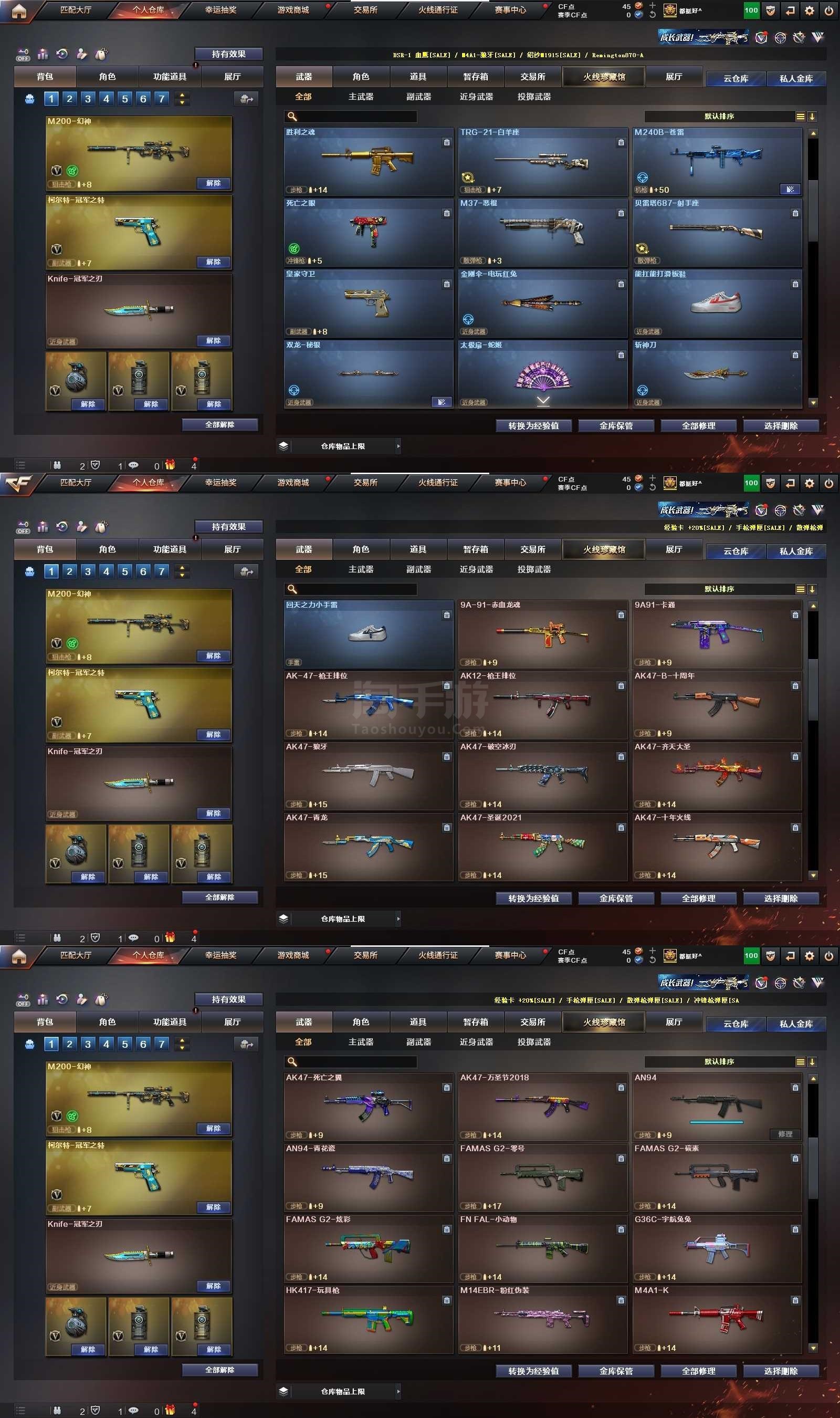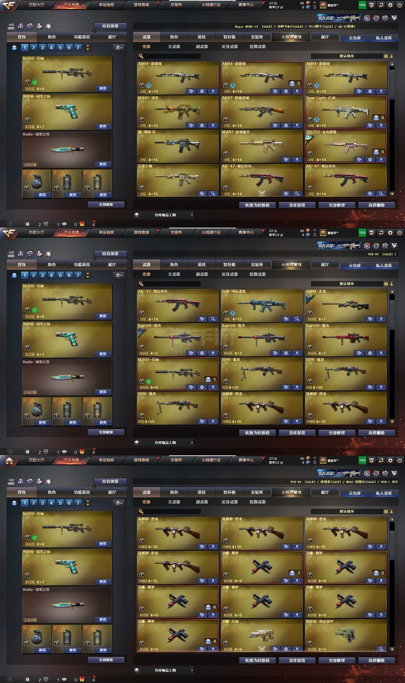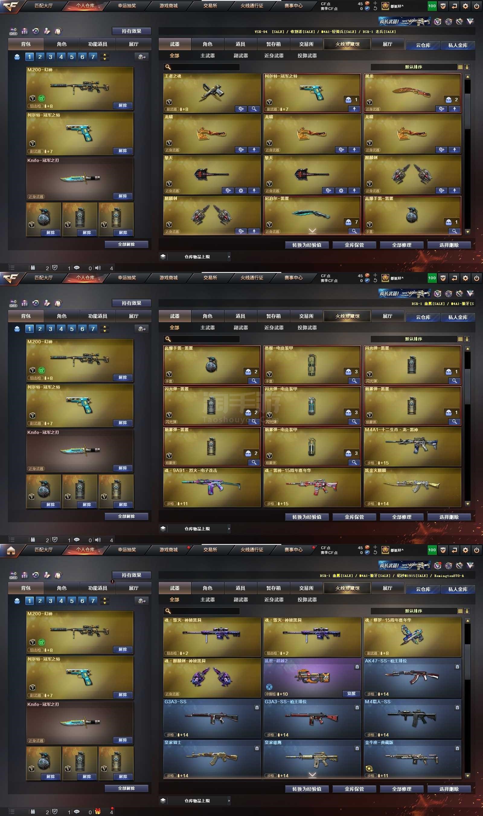 2119504_安徽/东部/包实名可排位/72V3王者1炫金【主武器类型】 M200-幻神 (黄忠) 6烈龙 +S眼 柯尔特-冠军之特 冠军之刃 Scar-白虎 白虎电玩蓝兔 Barrett-毁灭 (音效卡) Barrett-极光 王者之魄觉醒版 M4A1-雷神 (冠军之魄+赵云+音效卡) QBZ03-金色蔷薇 (冠军之薇) M4A1-黑龙 M4A1-黑骑士 *3 M4A1-武圣 AK47-火麒麟