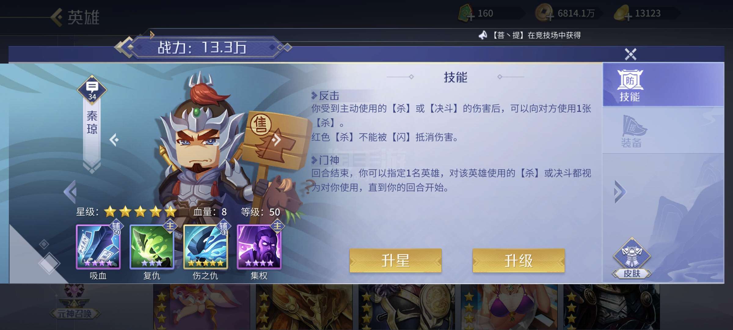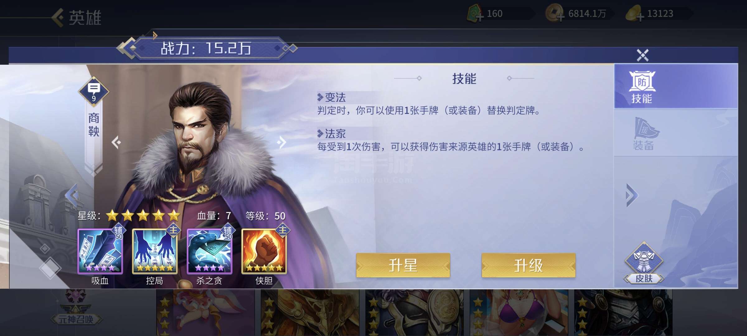 英雄杀【安卓微信】四大金刚商鞅毕业三星玉环五星英雄多多