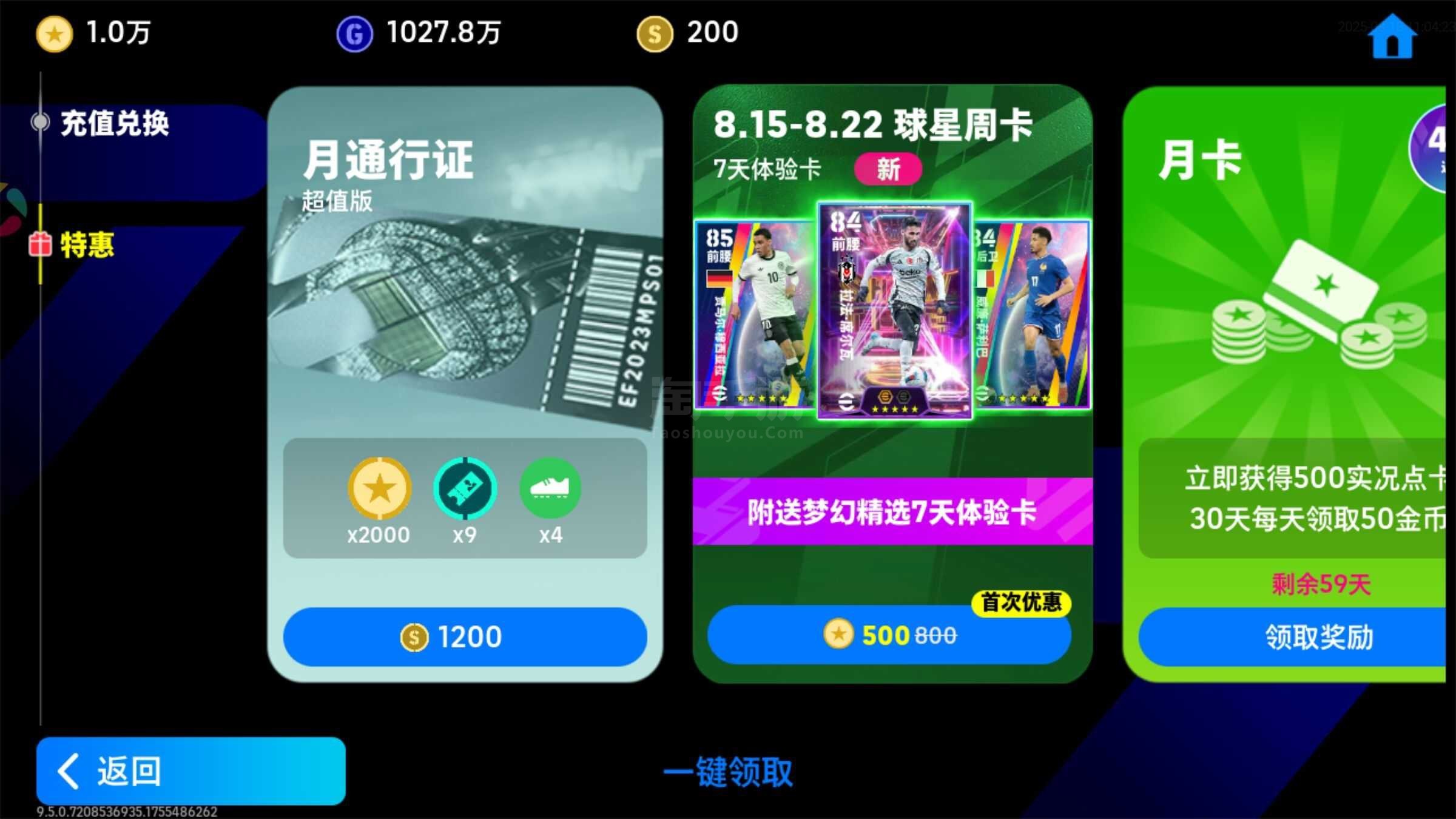 实况足球【安卓QQ】1万金币+10张高光卷+59天月卡,可小刀,诚心出售