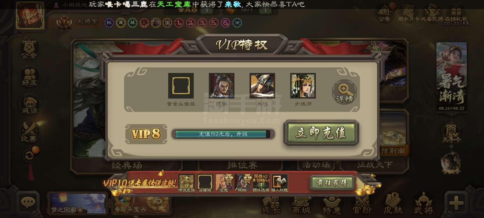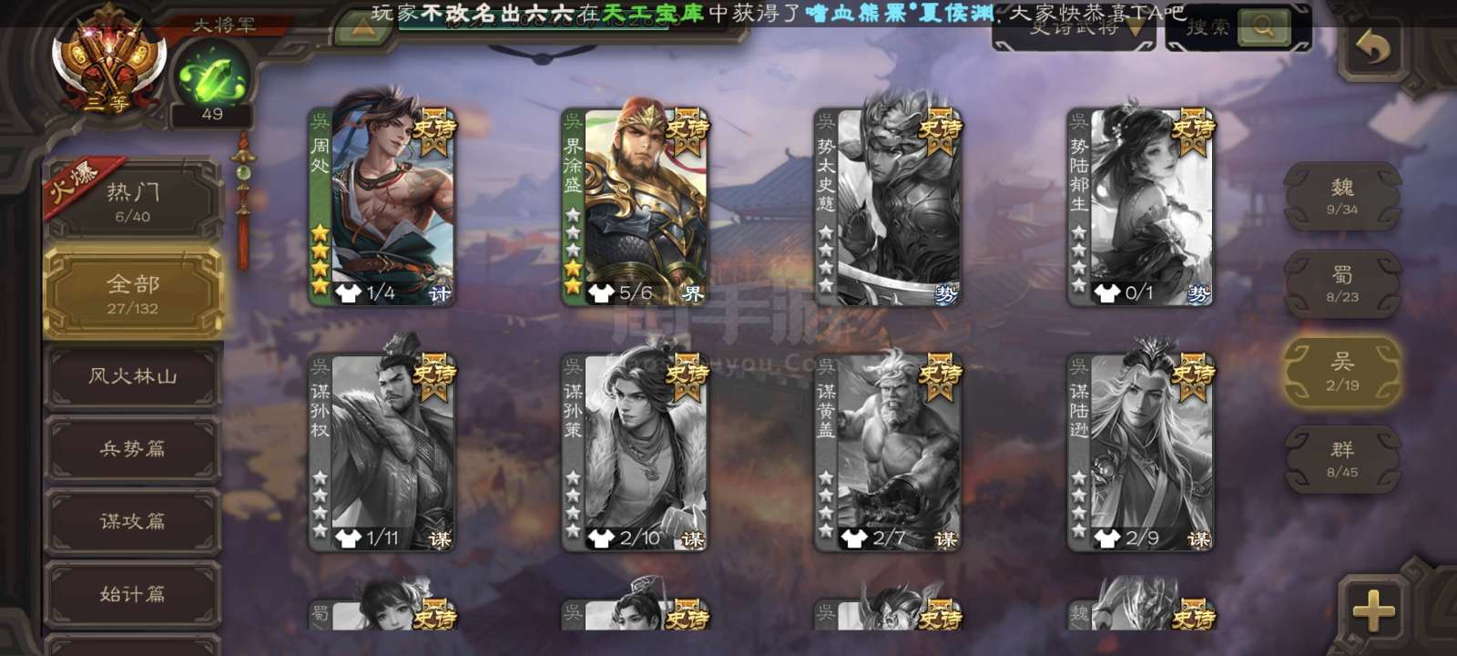官服活绑带年卡大将军,动司马昭动谋曹丕动大宝回廊动李儒等28史诗,友徐庶闫象等天宫精品,天子令已开。