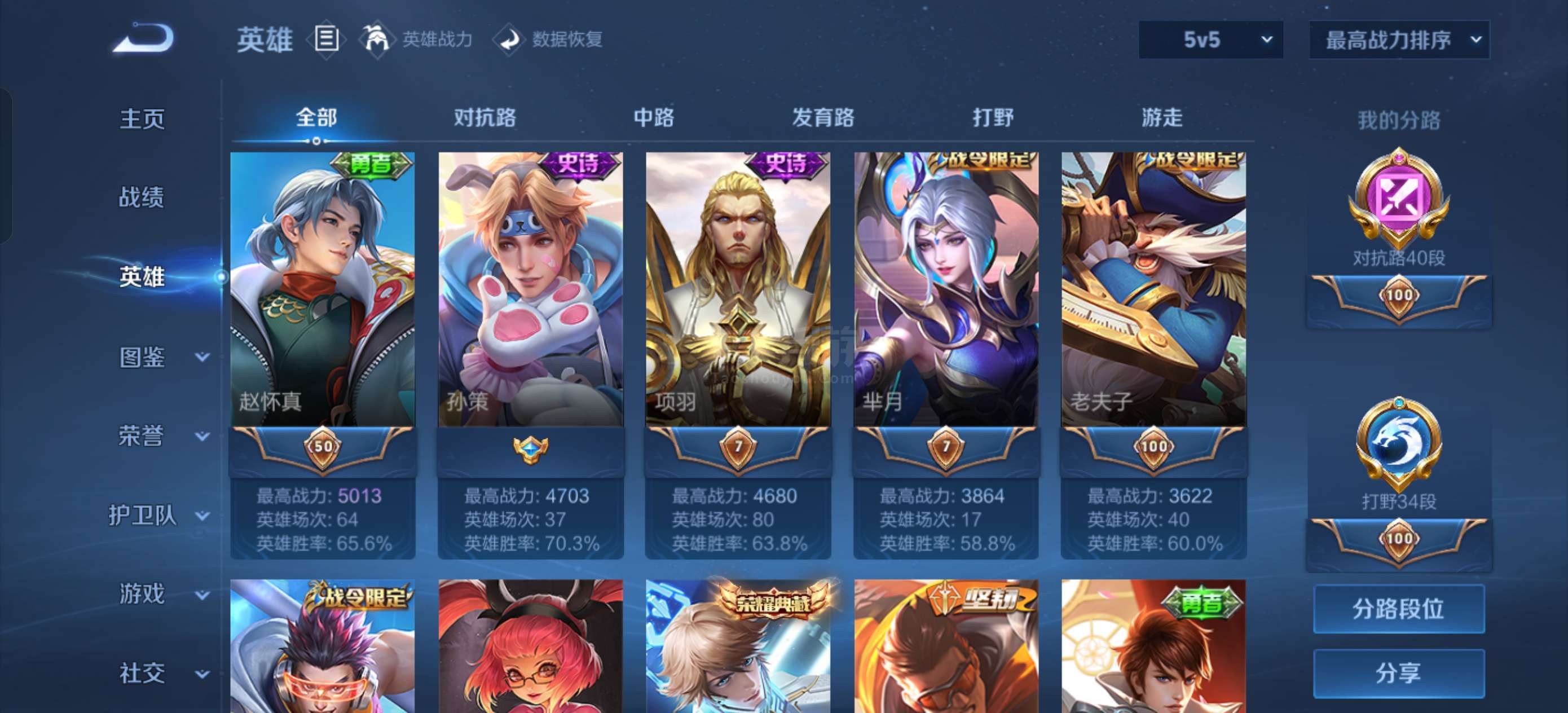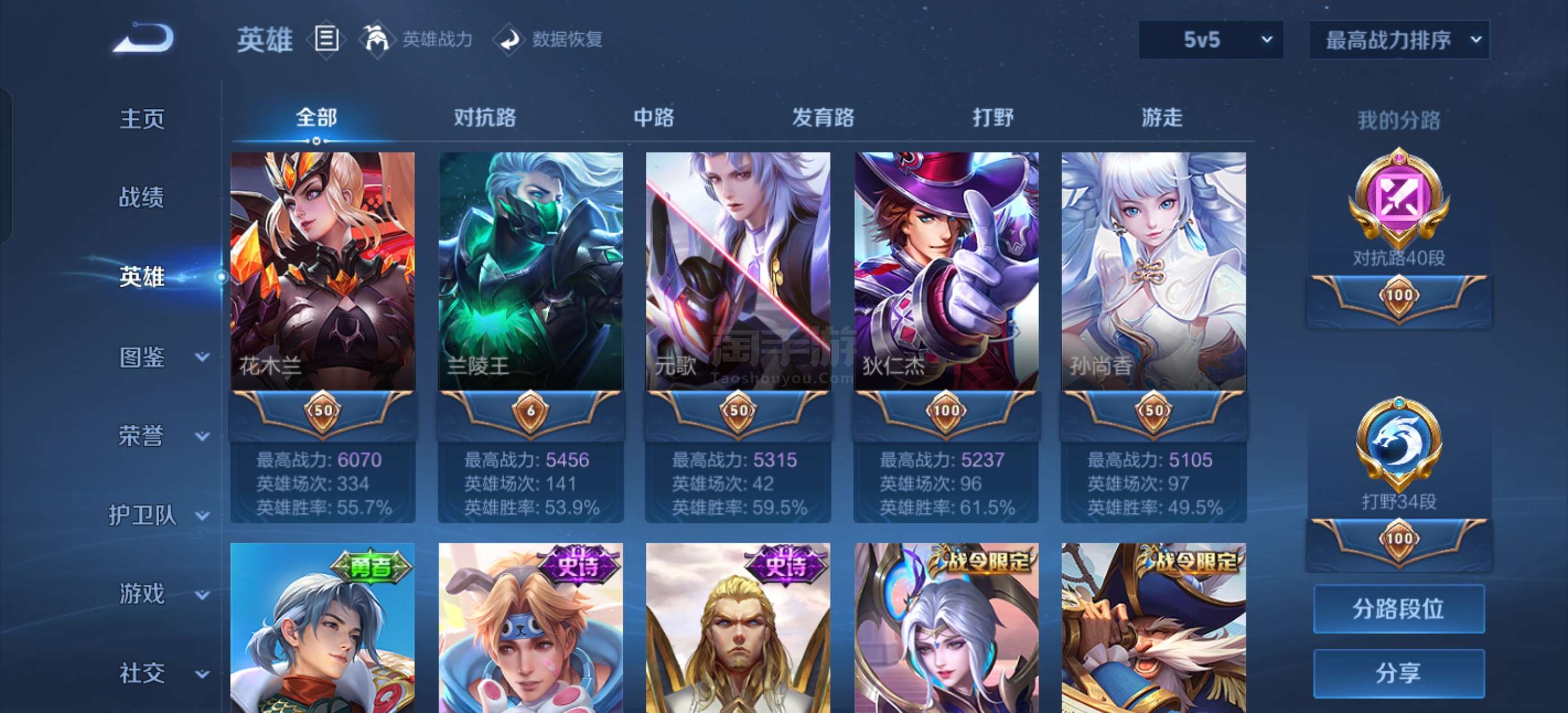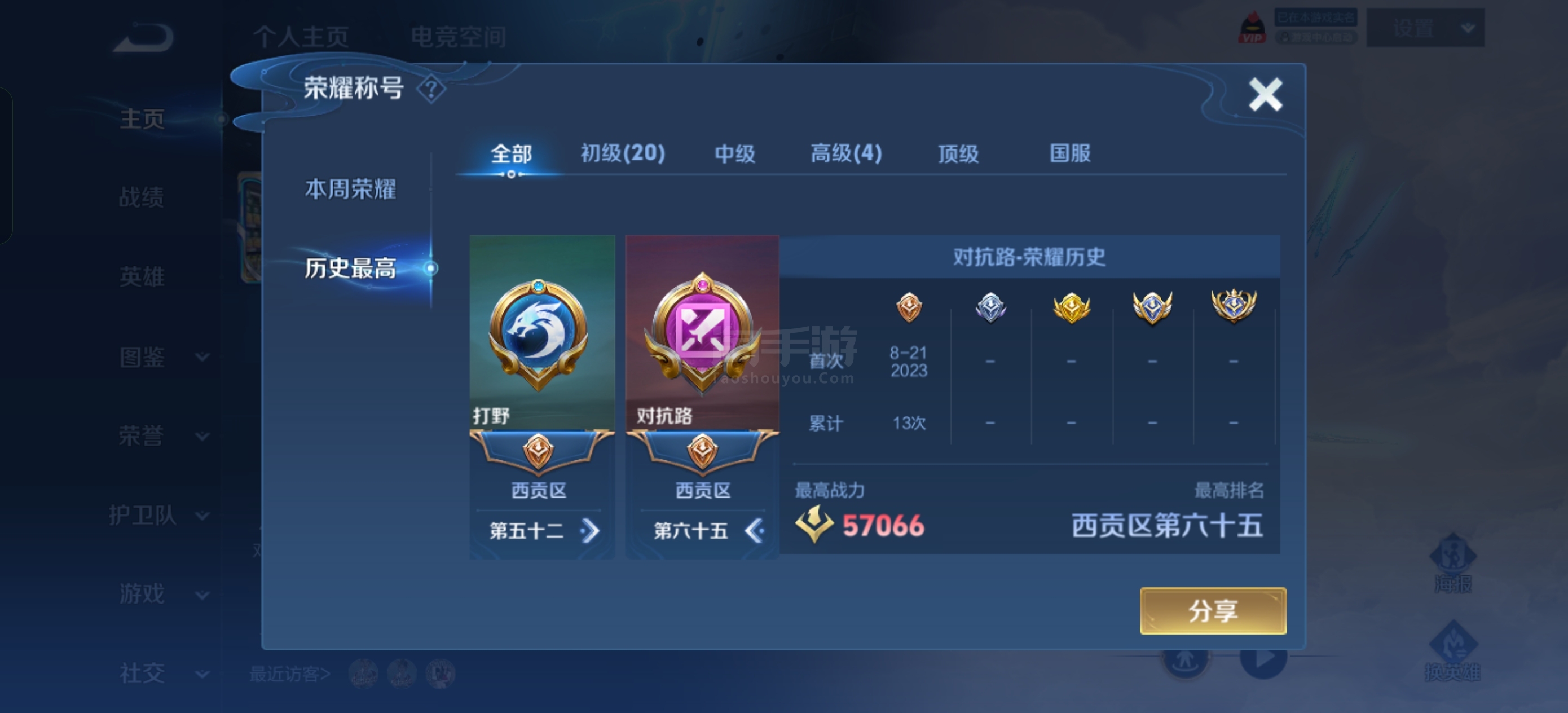 1w2司空震三荣耀印记最高57段对抗路45段打野