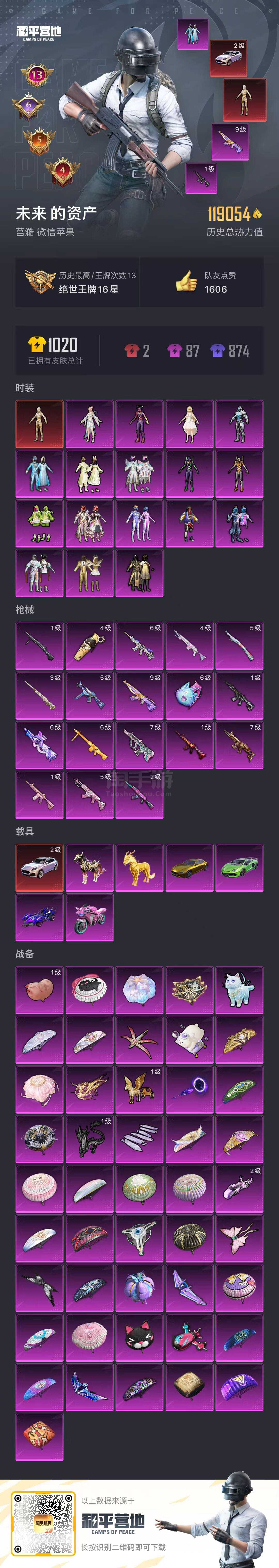 a3865/苹果微/-13王牌印记-17粉装-18特效枪-7载具-119054热力值-192套装-