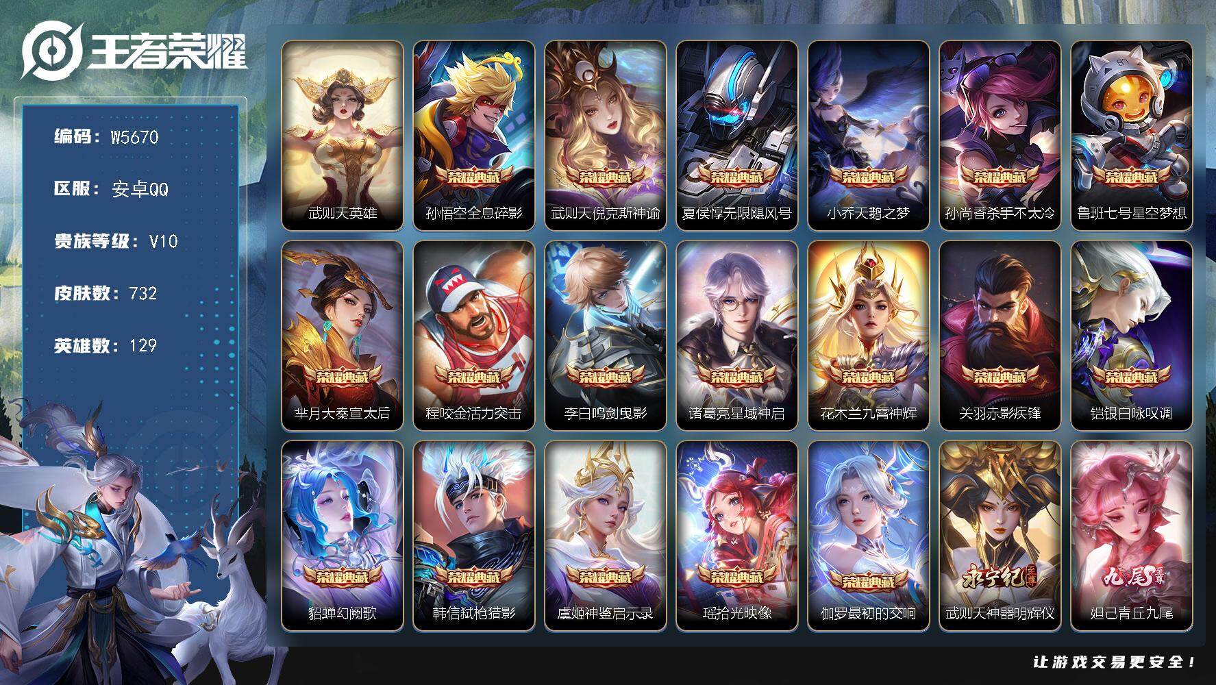 苹果微信 v区2万大国镜大国老虎 280皮肤 小国1.59w马超