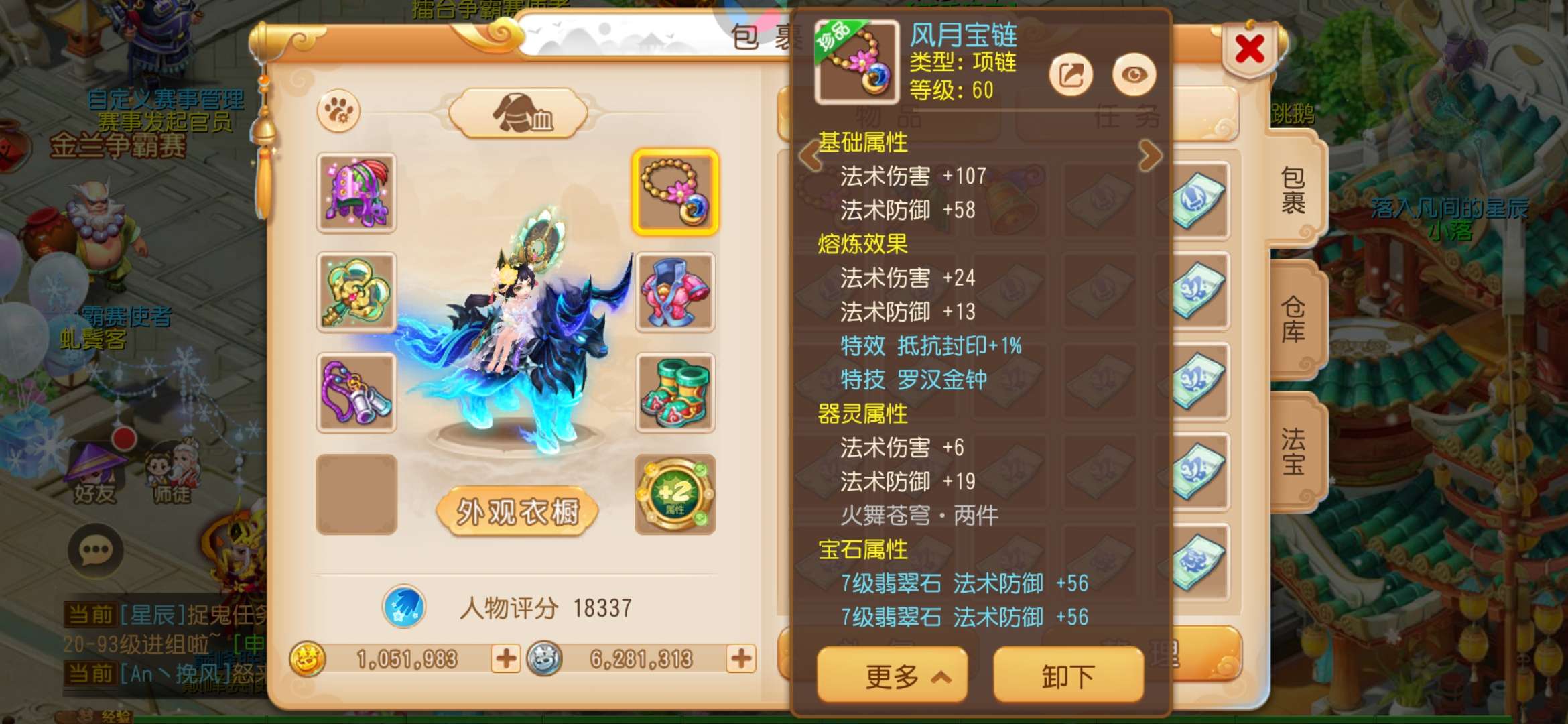 100万金币 血耐地府和力地府两套装备 罗汉 玉齐全
