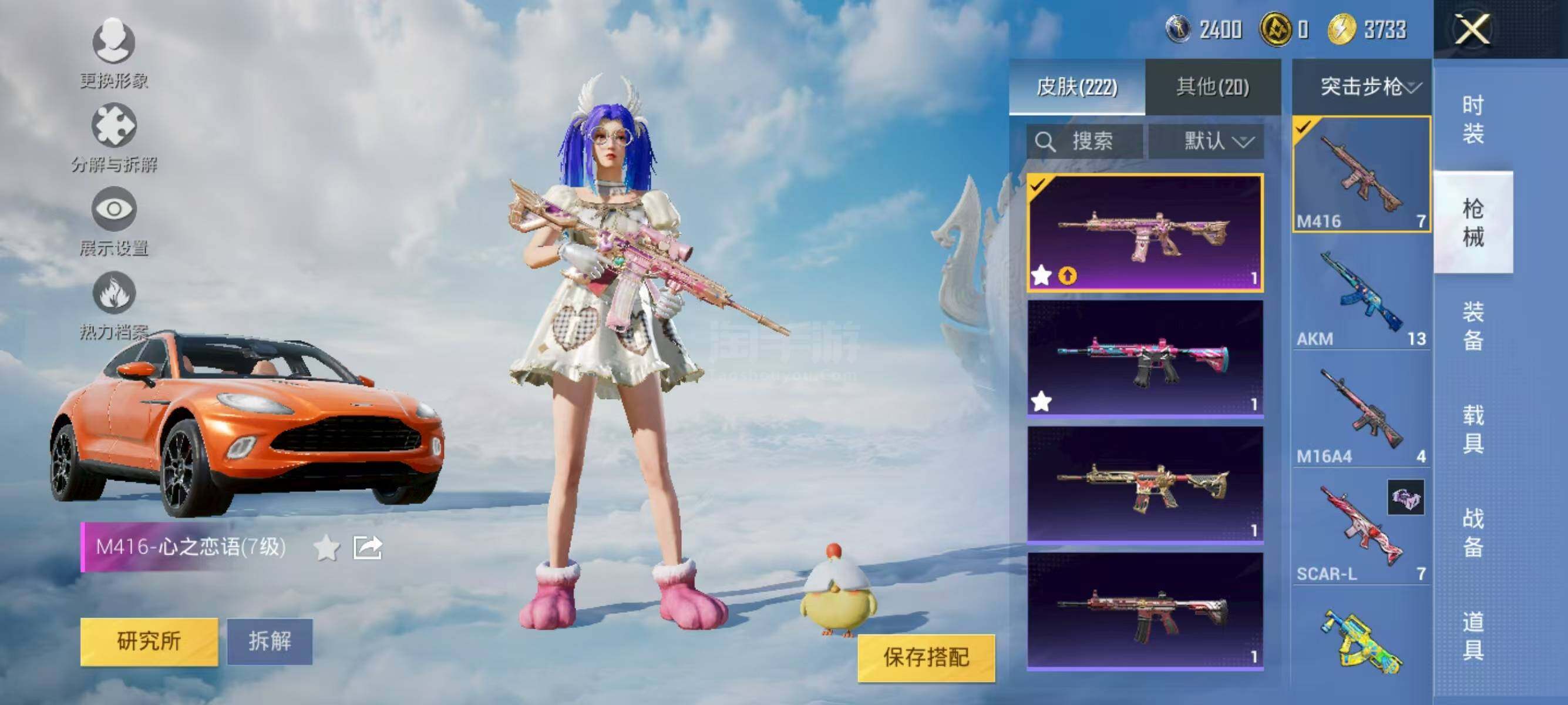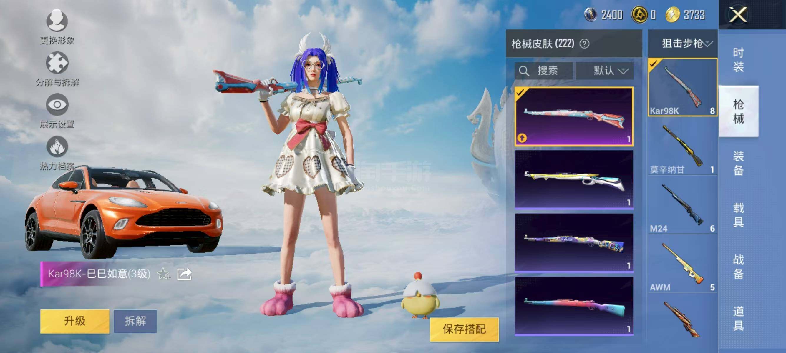 【特效枪等级】:M416-心之恋语(七级),GROZA-香水柠檬(七级),Vector-环太平洋(六级),Kar98K-巳巳如意(三级),MG3-炙焰牛王(六级)