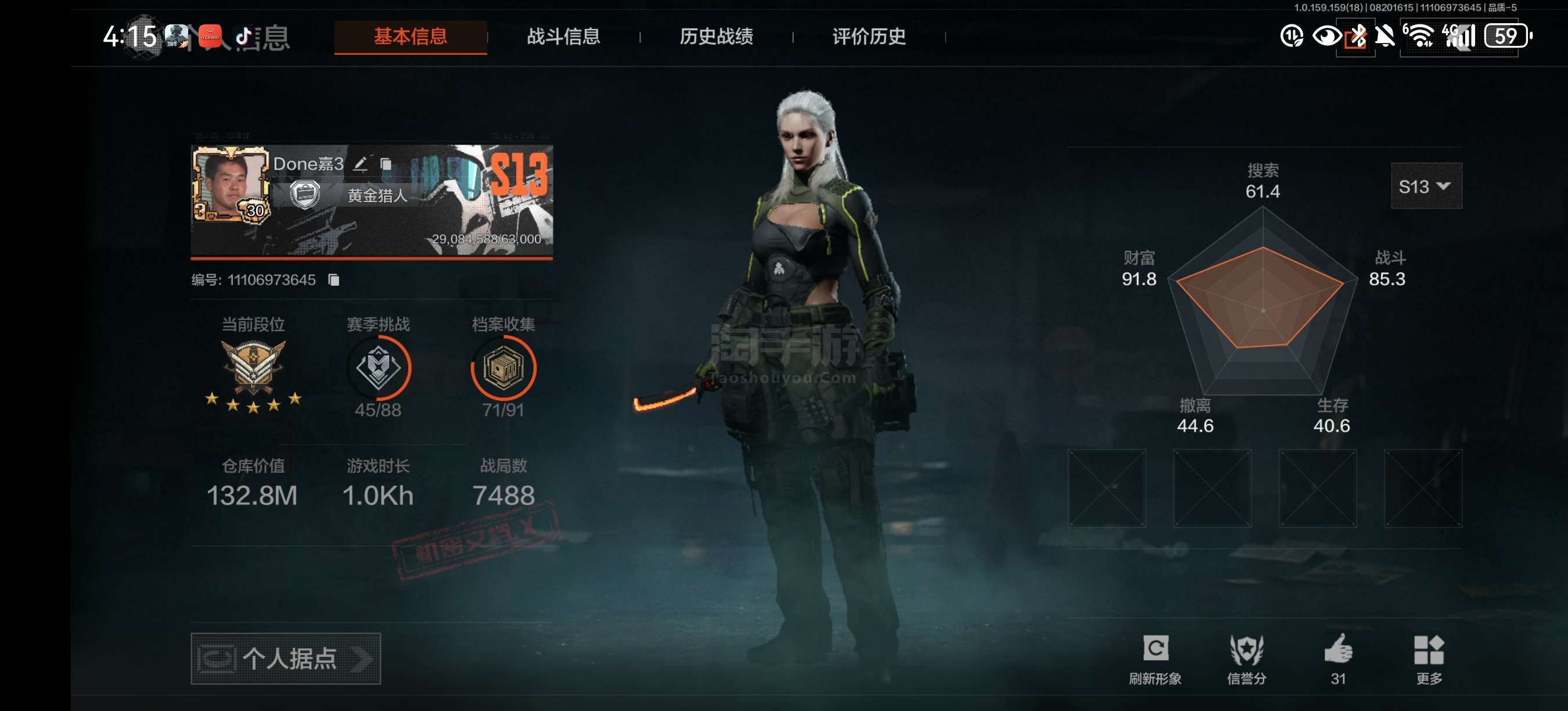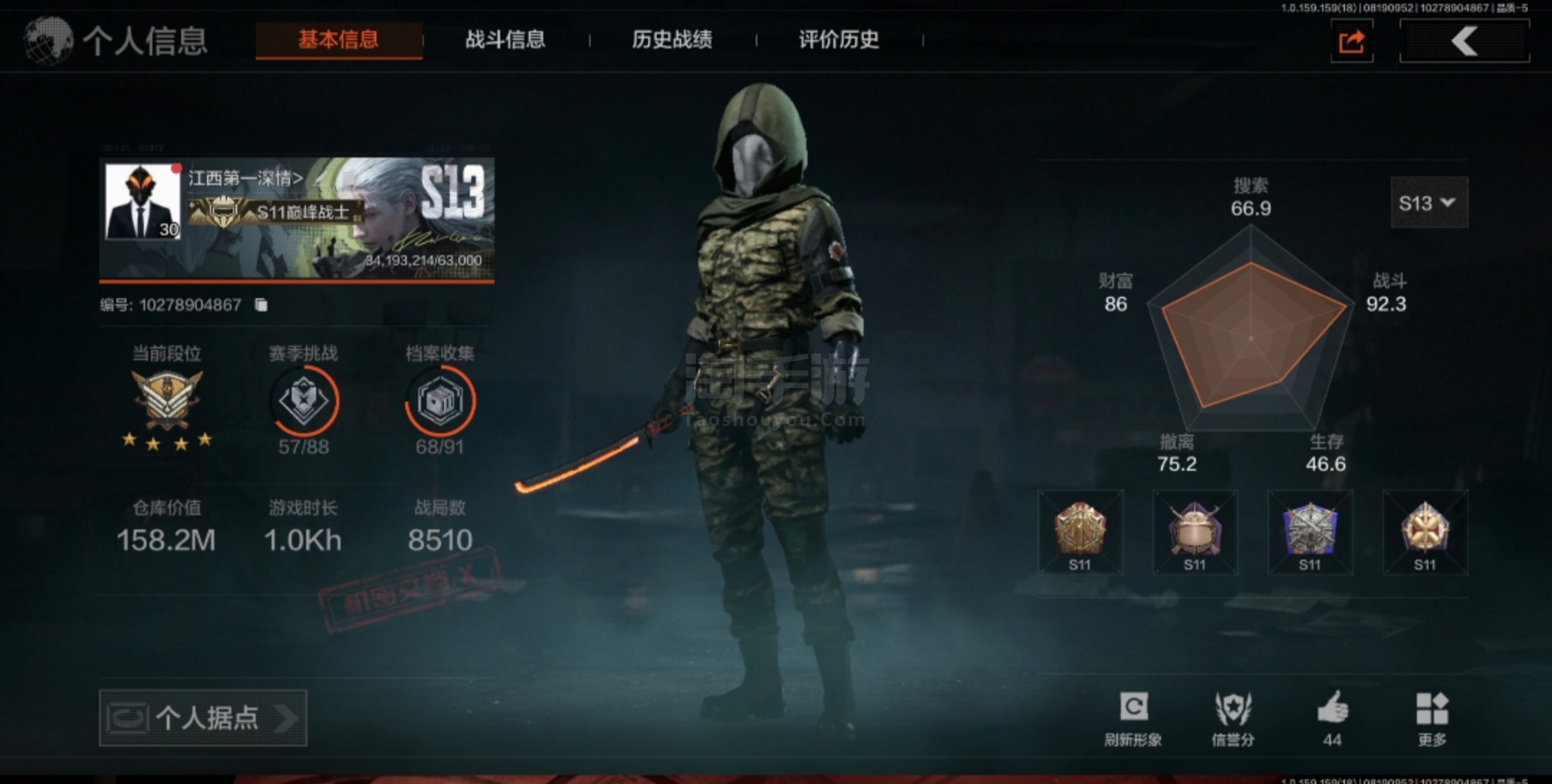 暗区突围【安卓QQ】FY5389,总资产158.2m,近战武器:赢家匕首,热能武器·补牢,龙魂·双节棍,急袭弯刀,可二次