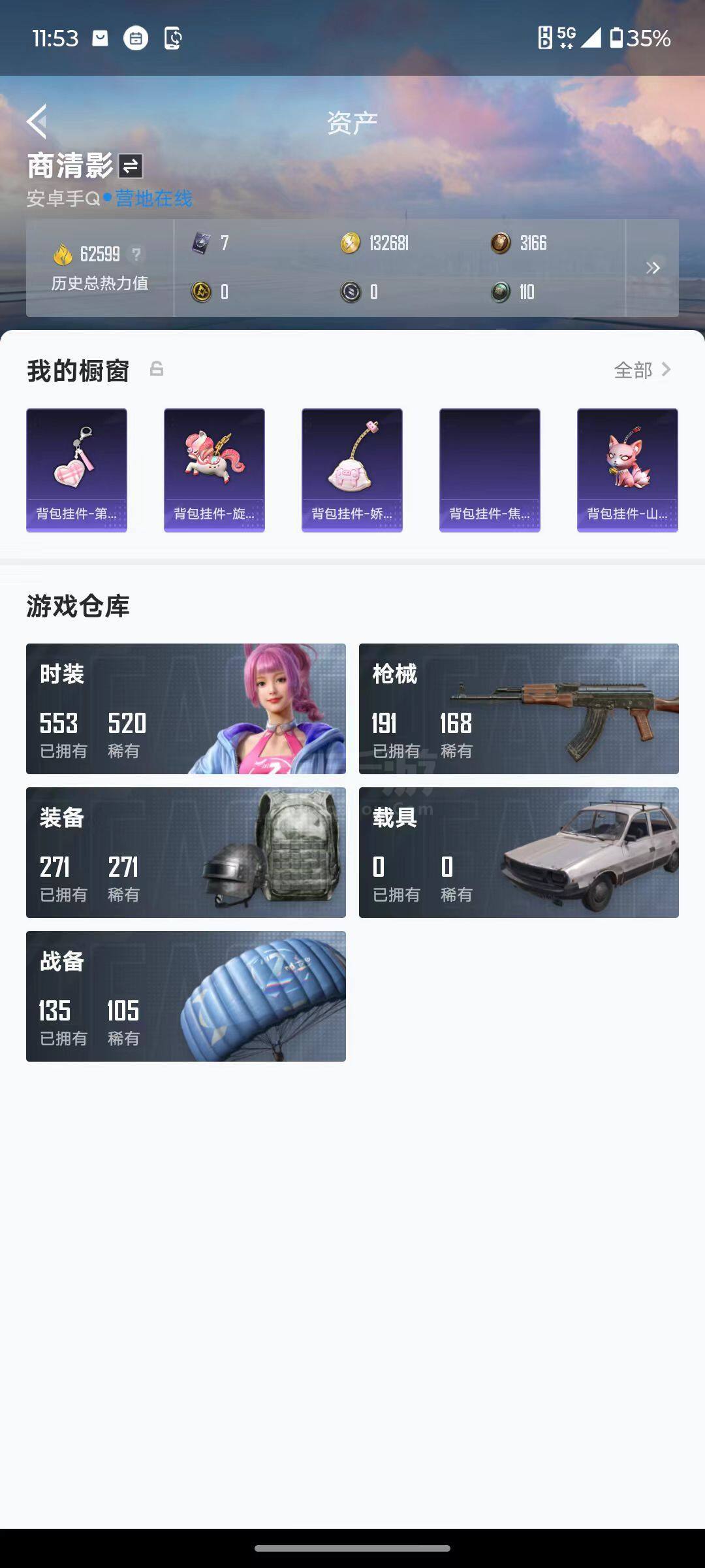【商品标题】:安卓 手Q-12粉装-3特效枪-0载具-62599热力值-5印记-142套装-191枪皮