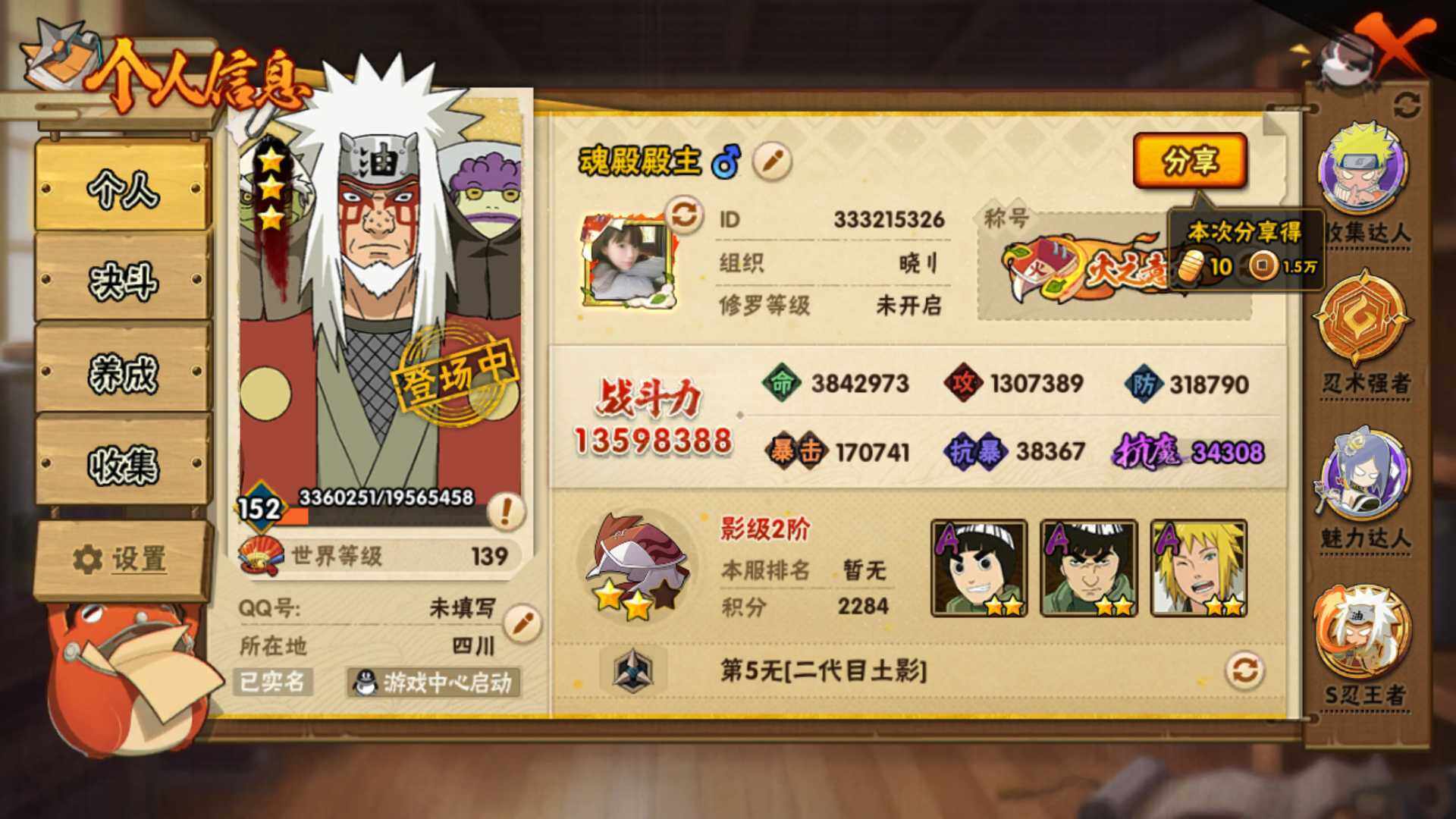 苹果QQ-V13/1359万战力/总忍者222/31S/47A/7个直购A/白面具/红夜