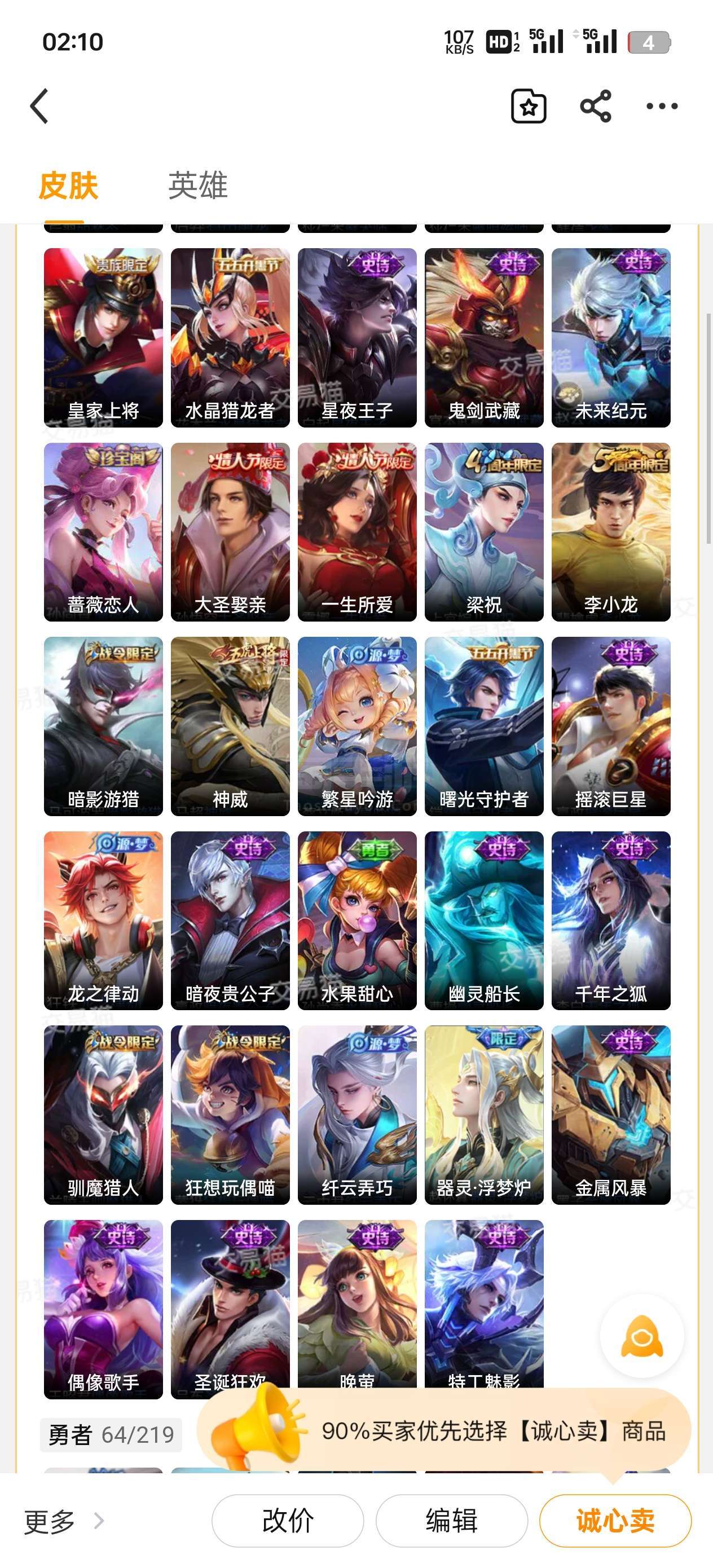 珍品传说皮肤: