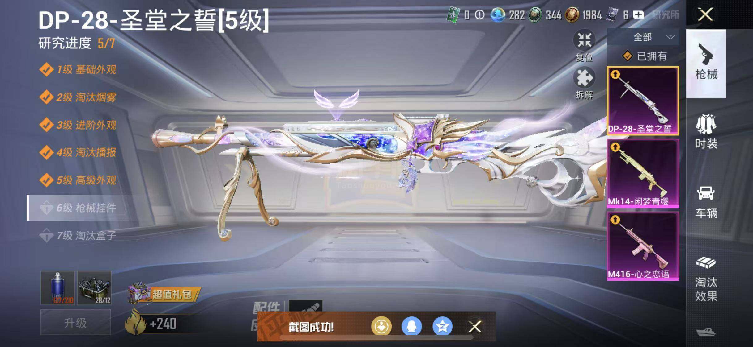 【特效枪等级】:M416-心之恋语(七级),DP-28-圣堂之誓(五级)
