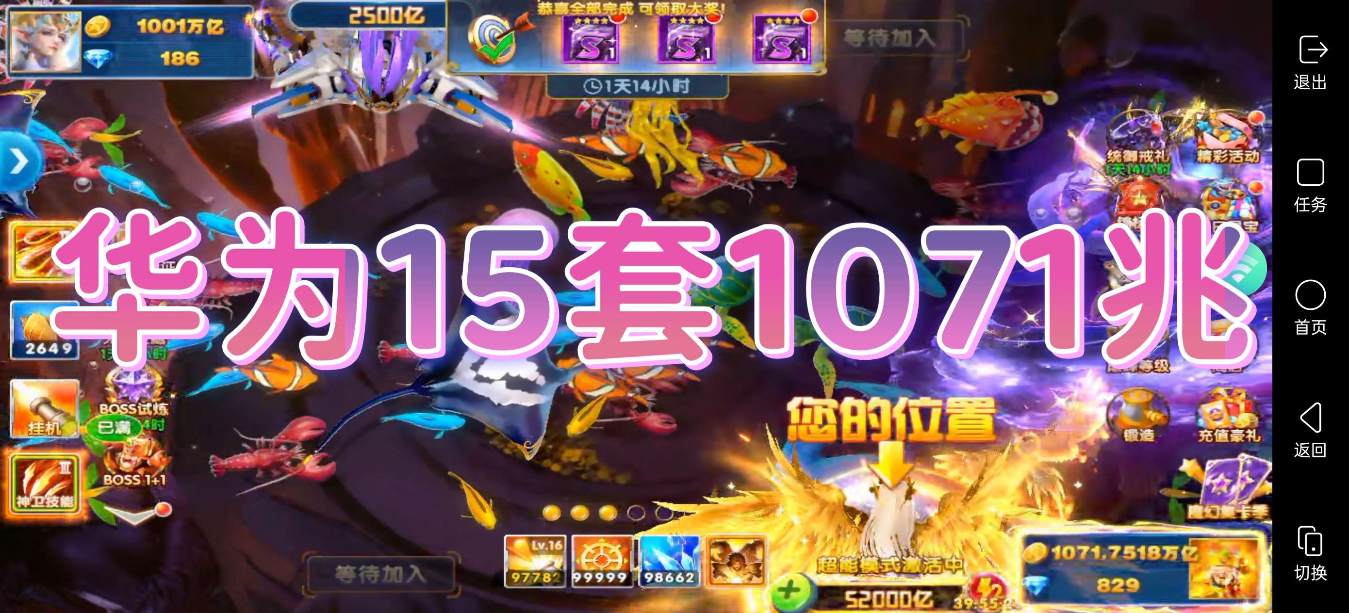 捕鱼大作战【安卓华为】华为v15 纯救济3333特权10 金蝉子9 孙悟空8 急先锋9 六芒星7