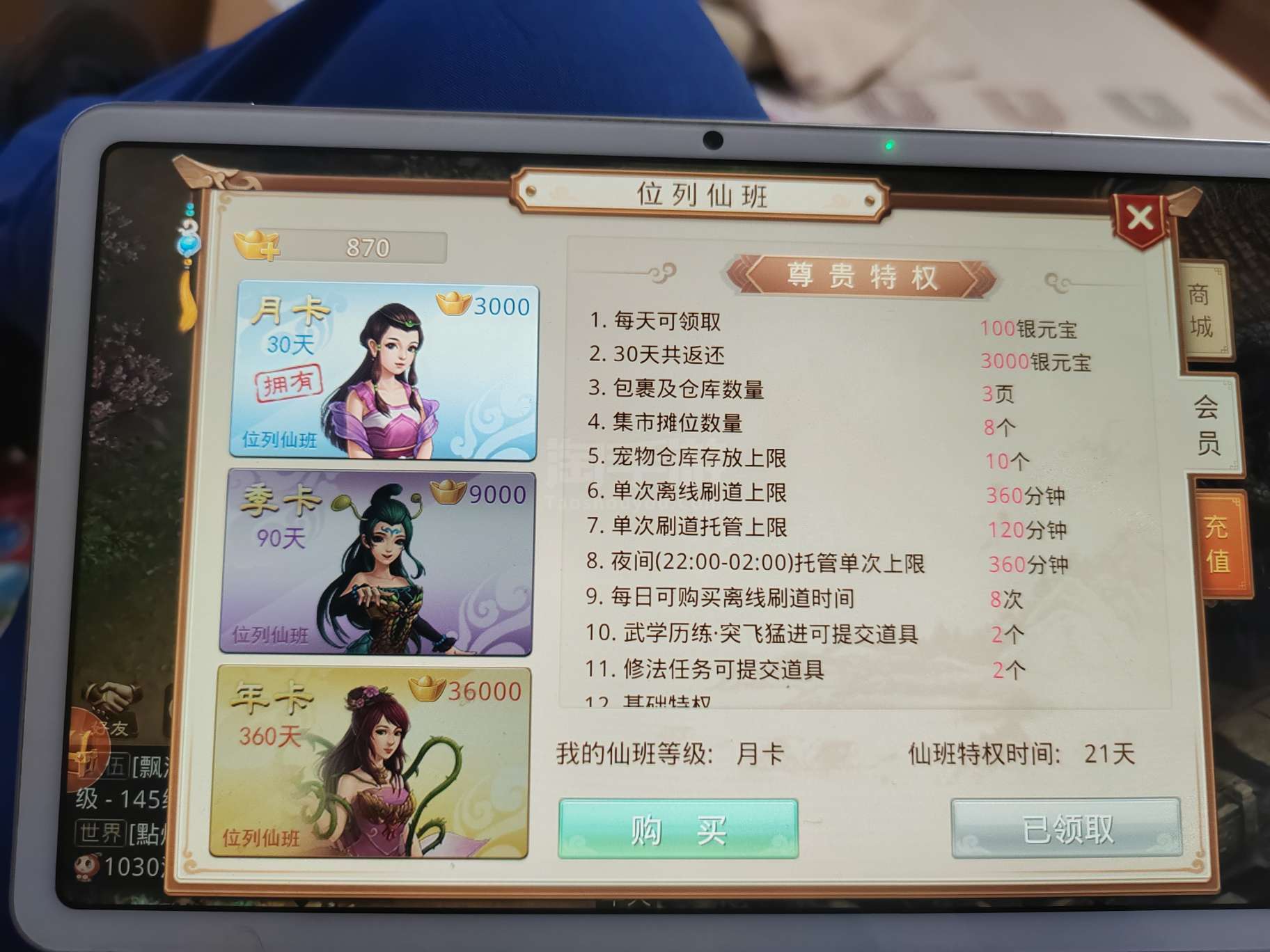 145力木3万3千年道,高级托管234天,月会员。
