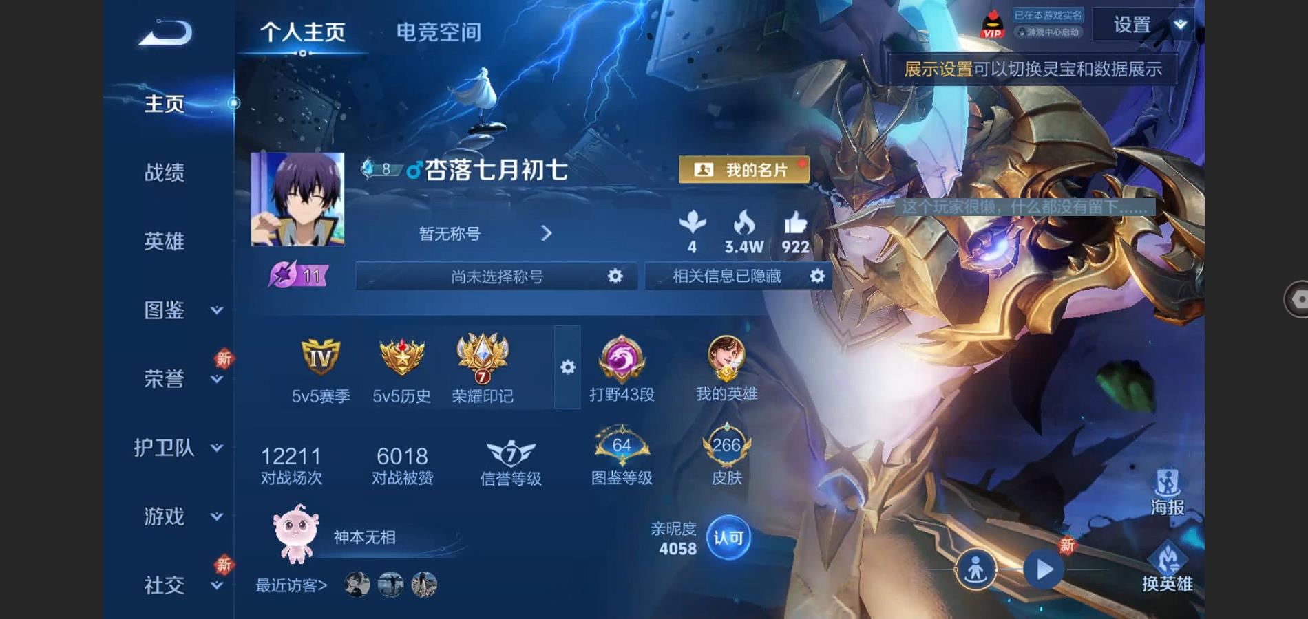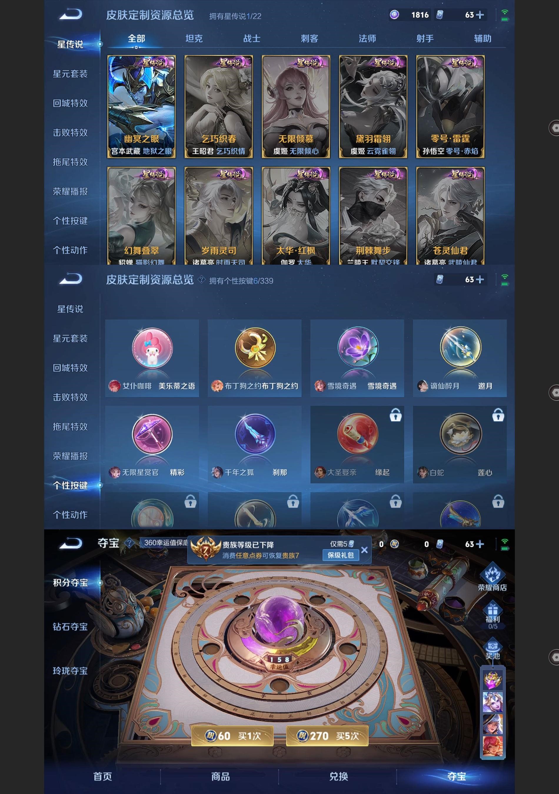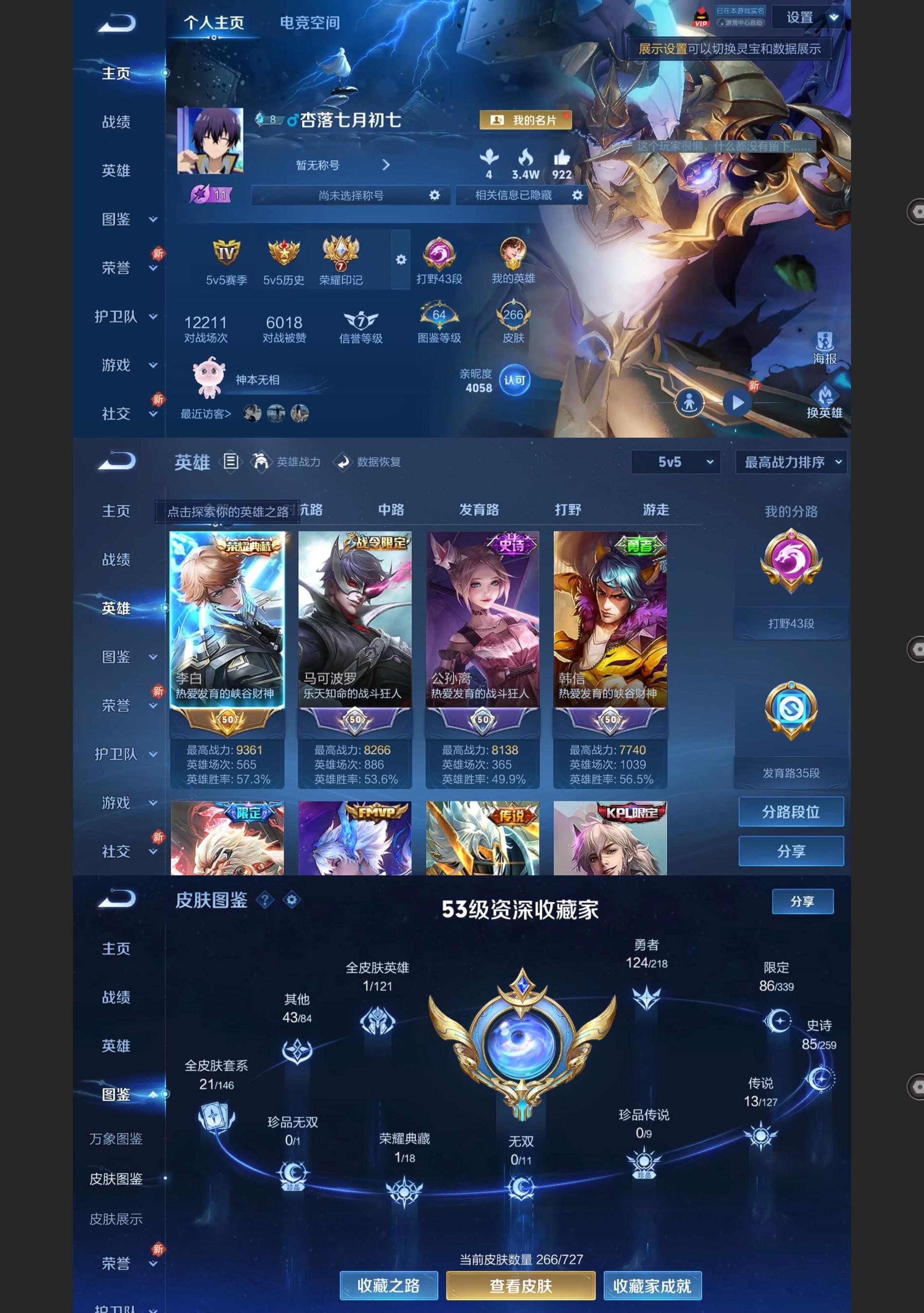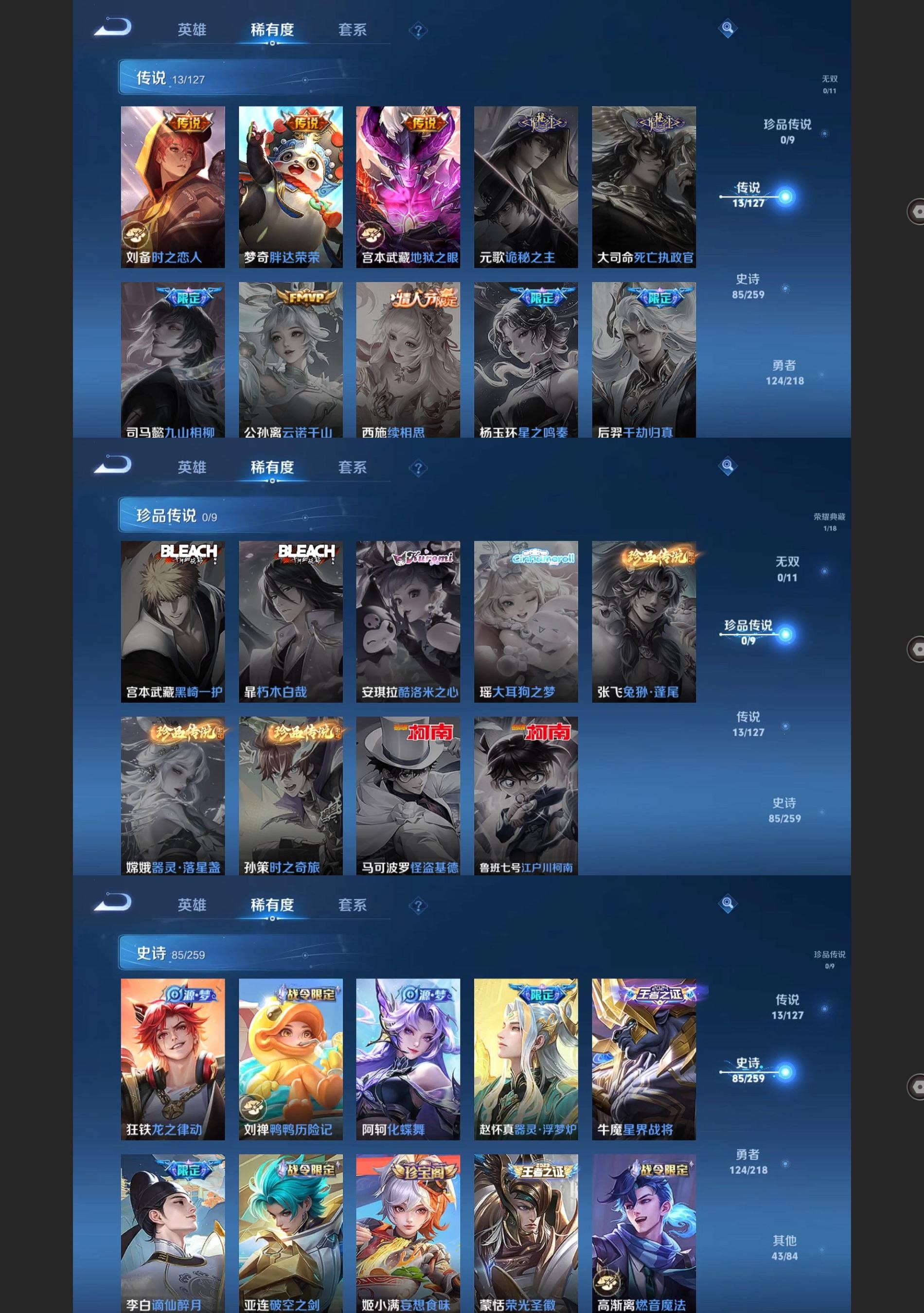 [王者荣耀]V71典藏13传说85史诗266皮肤至尊星耀V