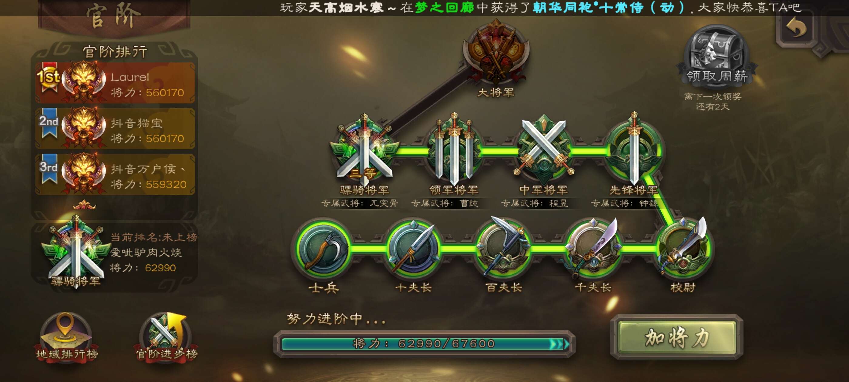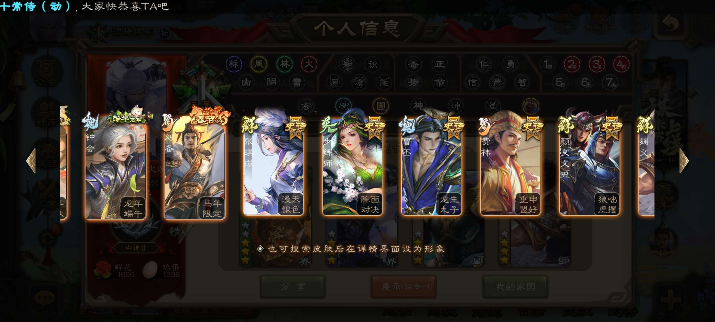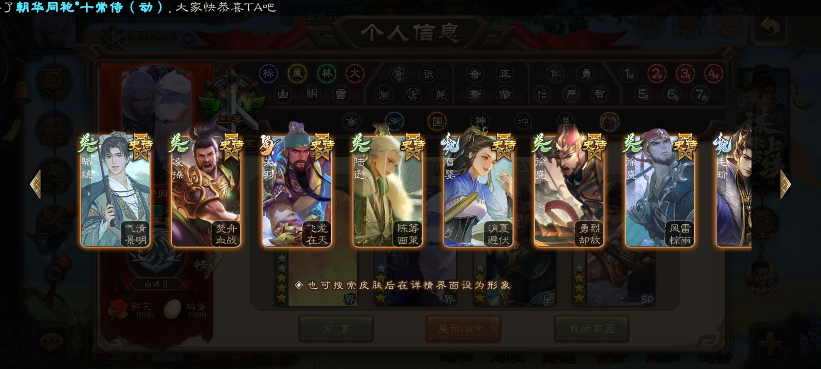 16史诗武将,一堆史诗皮肤,还有两千二将魂可下次兑换,骠骑官阶,可小刀