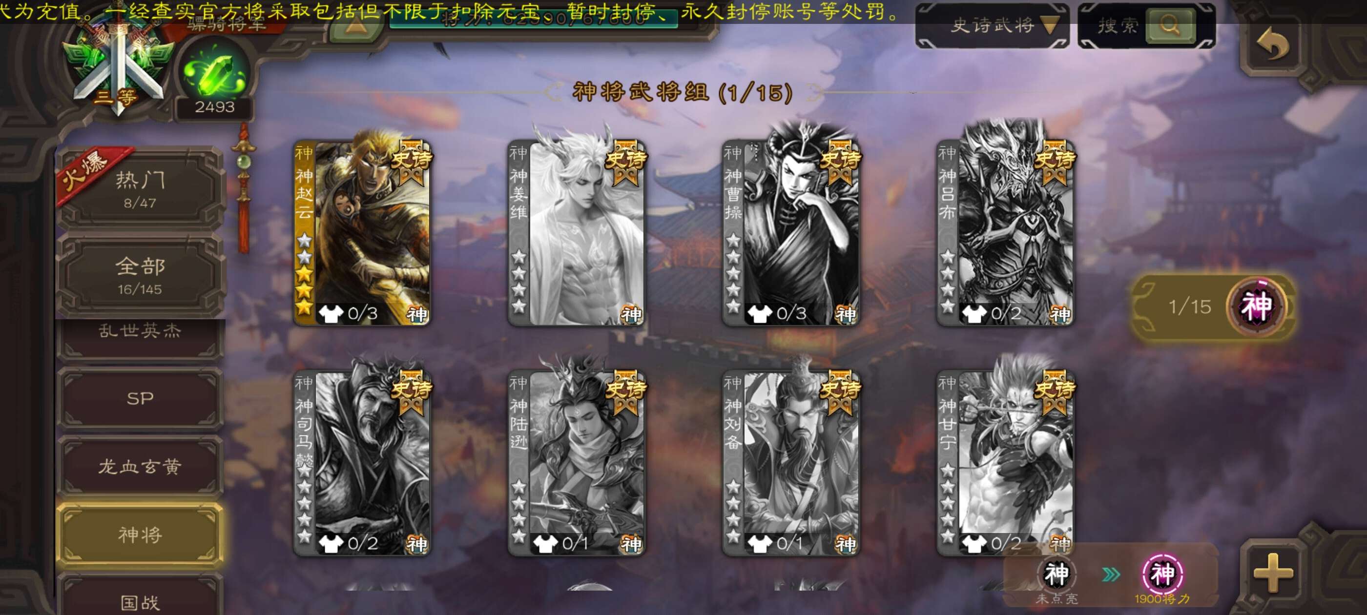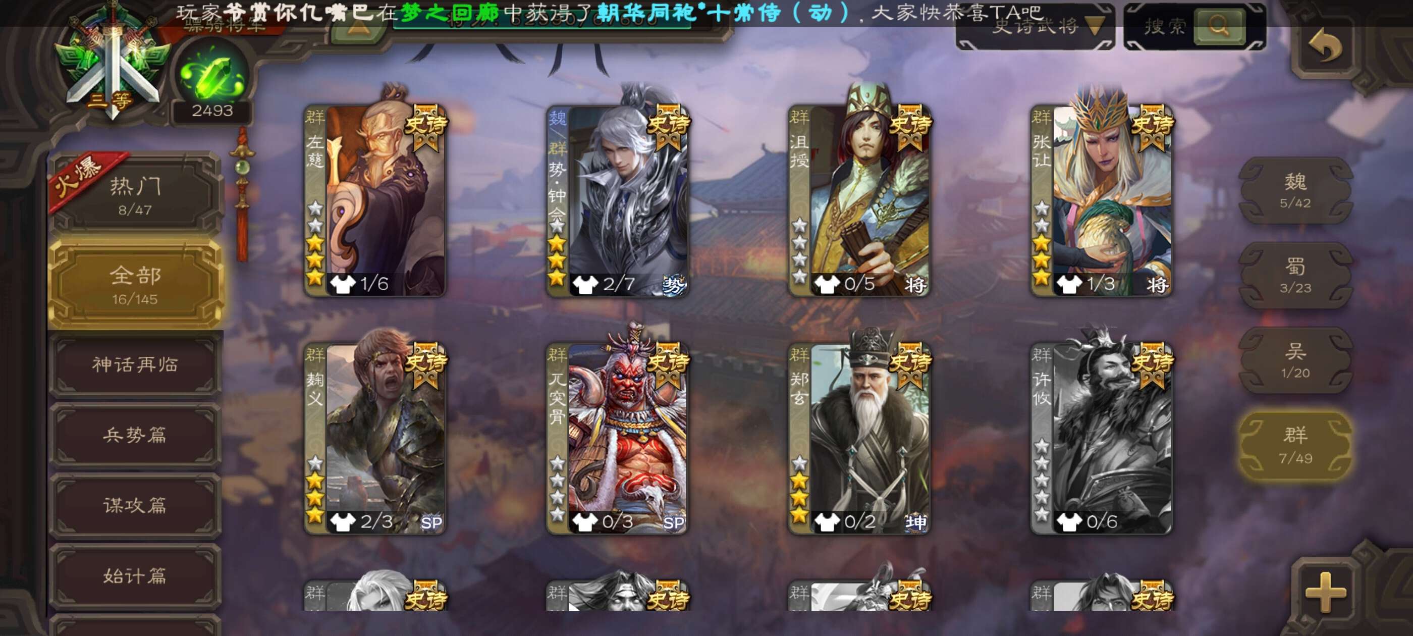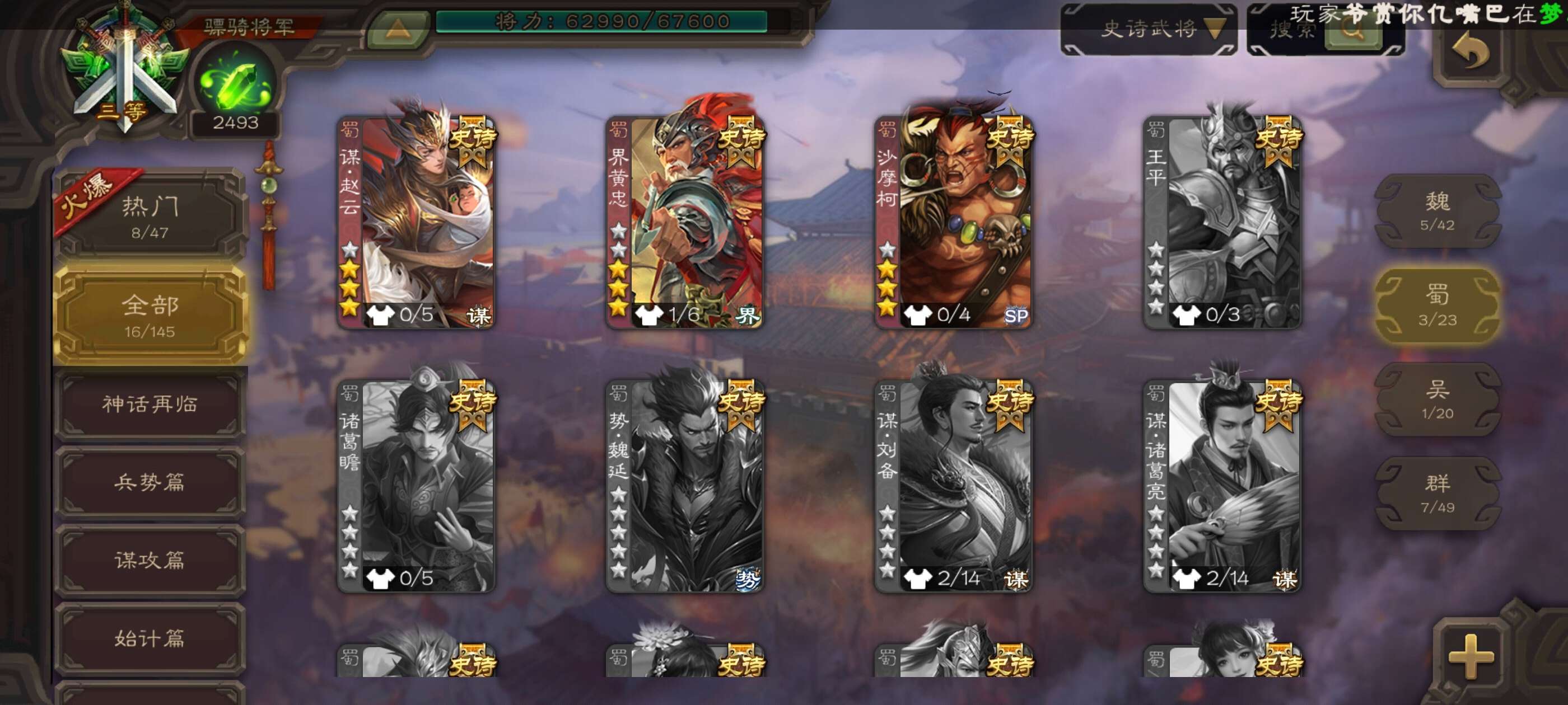 史诗武将数量: