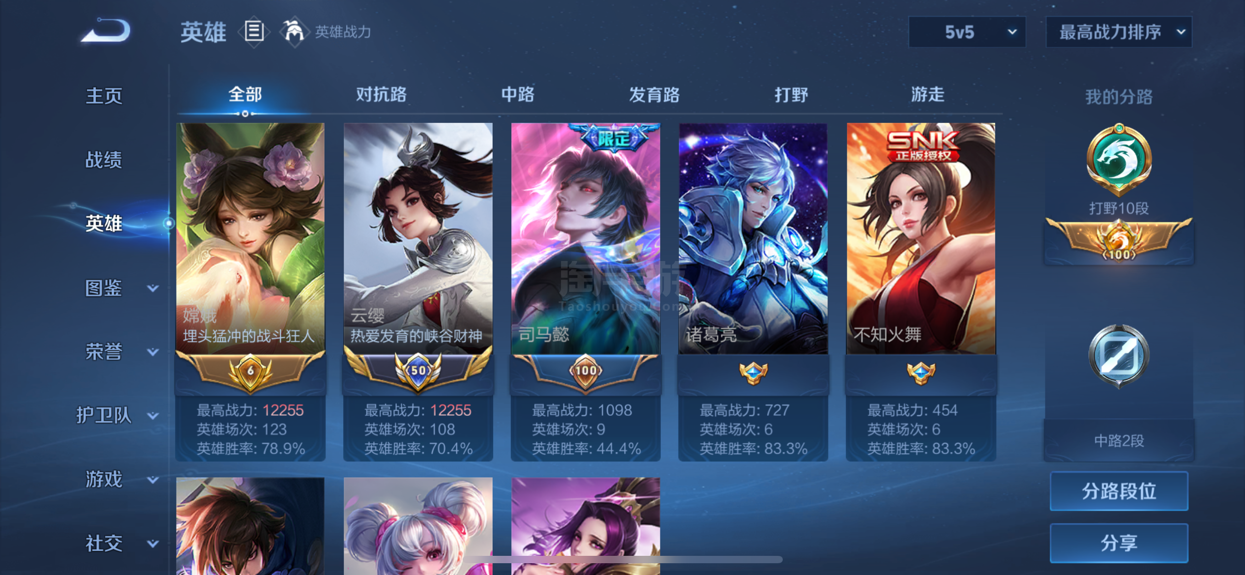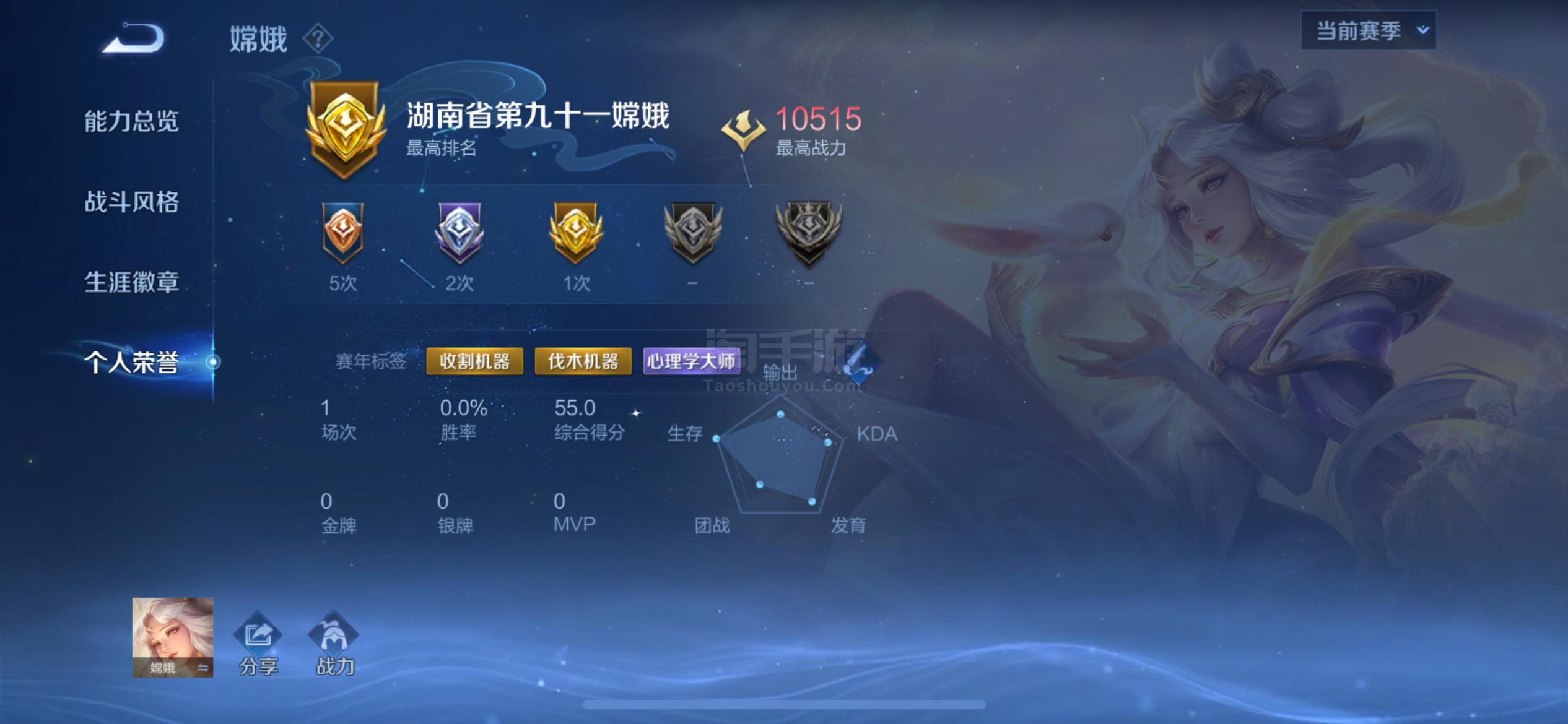 高胜率云缨嫦娥现在绑巅峰排名 2350 名排位82星,一个微信三个区