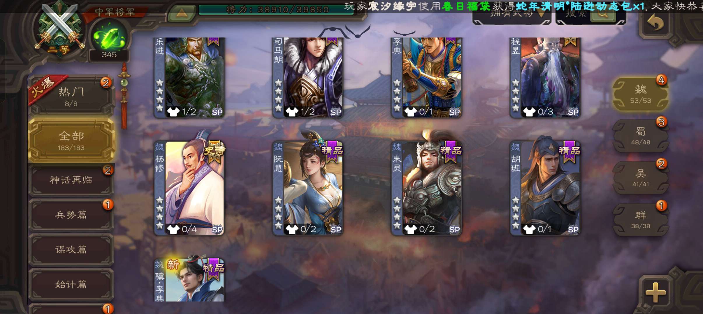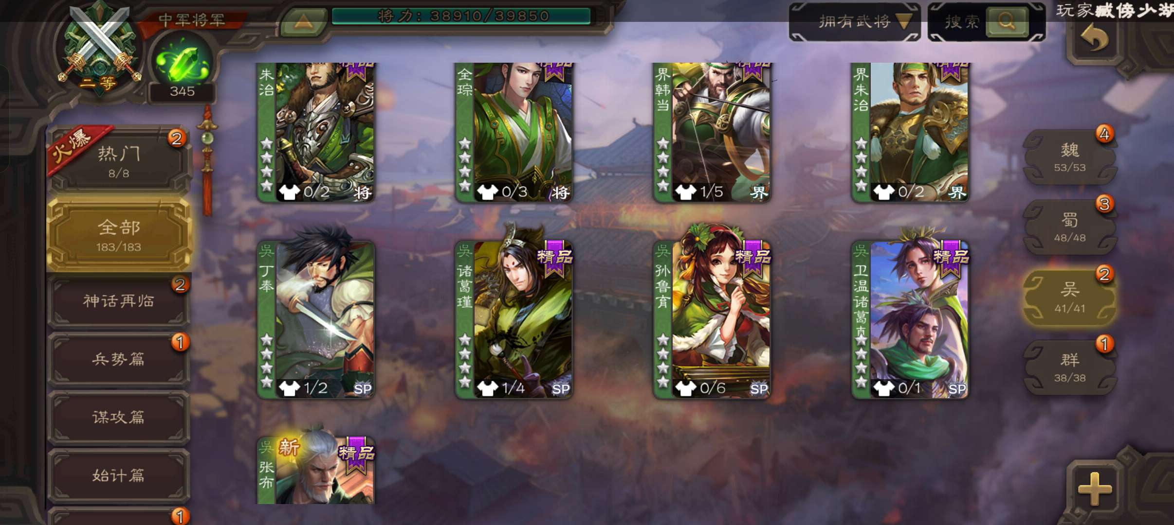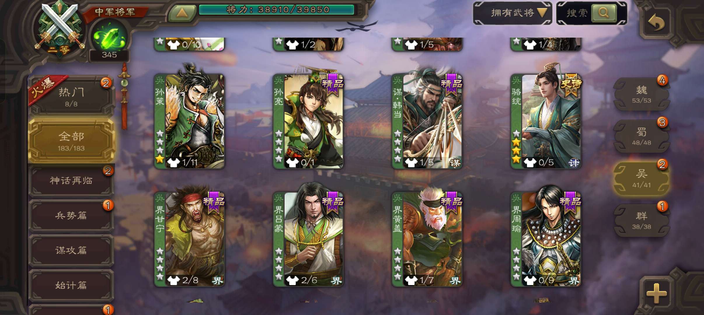 8史诗3神中军,8万豆,骆统金皮张让神刘备谯周界于禁杨修嵇康程昱,神吕蒙神周瑜动李儒动曹冲动诸葛果