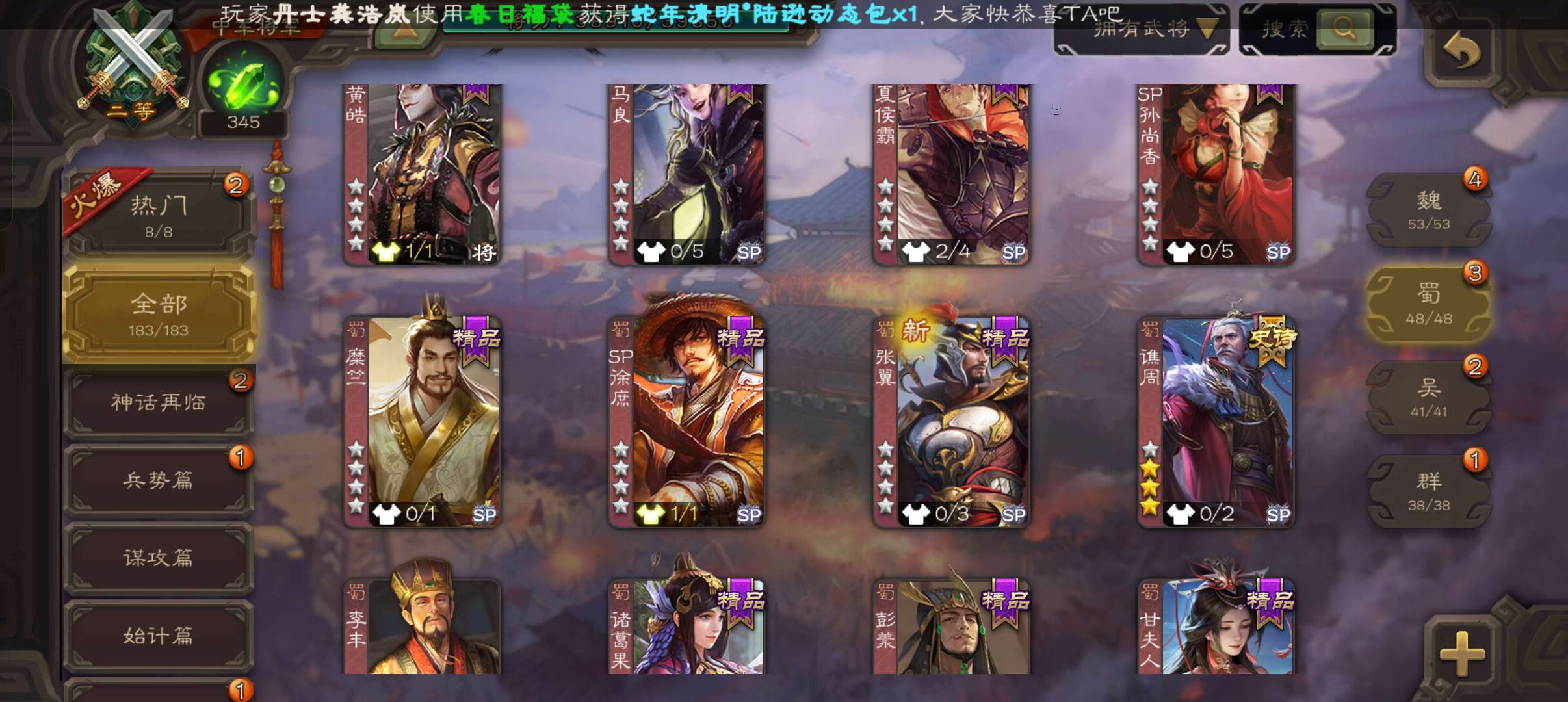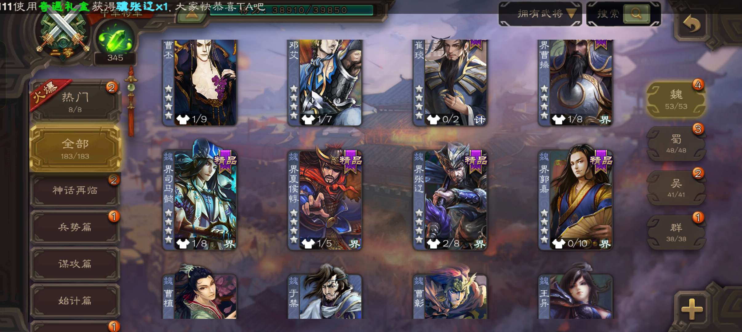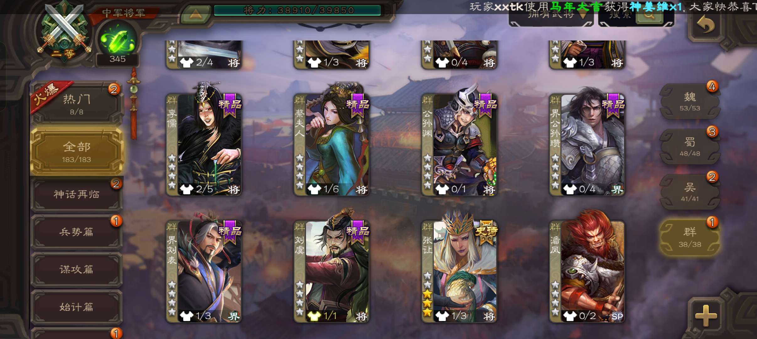 8史诗3神中军,8万豆,骆统金皮张让神刘备谯周界于禁杨修嵇康程昱,神吕蒙神周瑜动李儒动曹冲动诸葛果