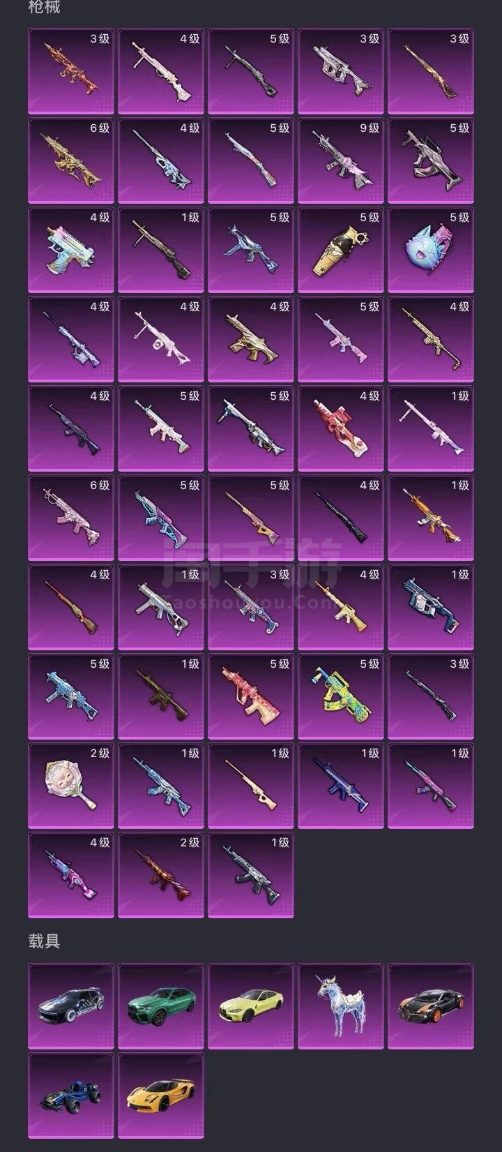 苹果QQ-50粉装-48粉枪-8载具 还有很多东西没有截,卖了自己看,号上还有1000多红装碎片在补一点可以换自己喜欢的红满级超新星m4