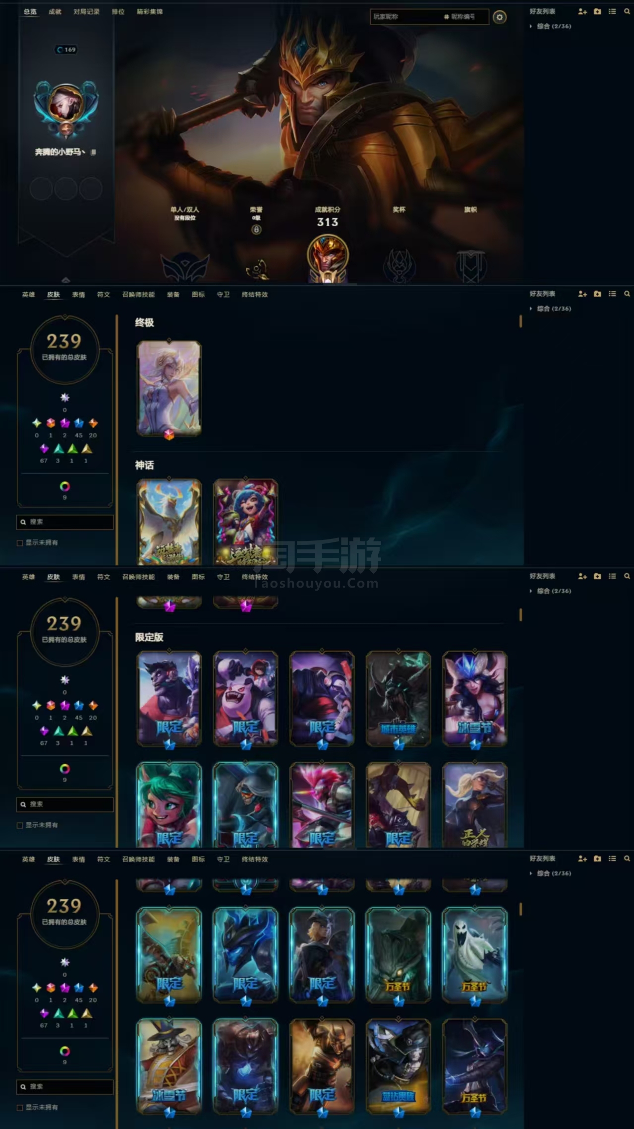 XMLM70 157英雄 /239皮肤 1终极/2神话/45限定/20传说 等级169 可改实名
