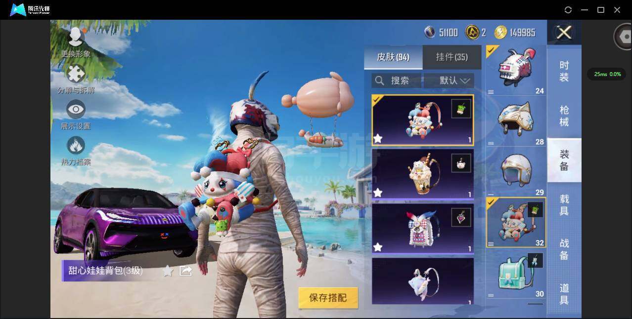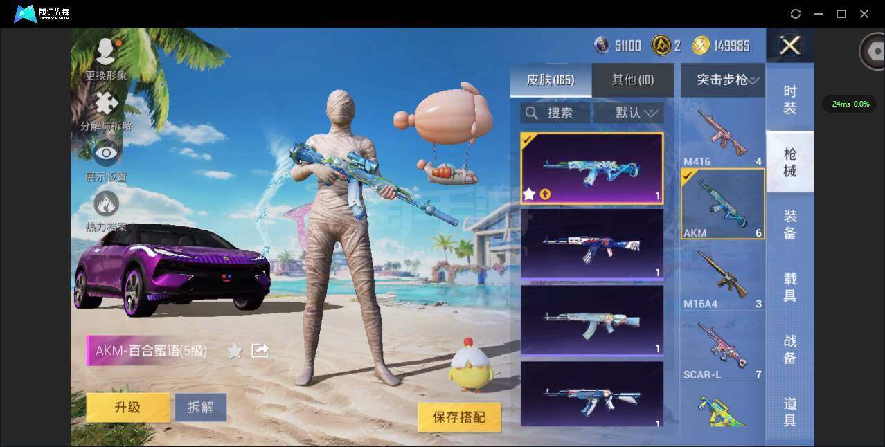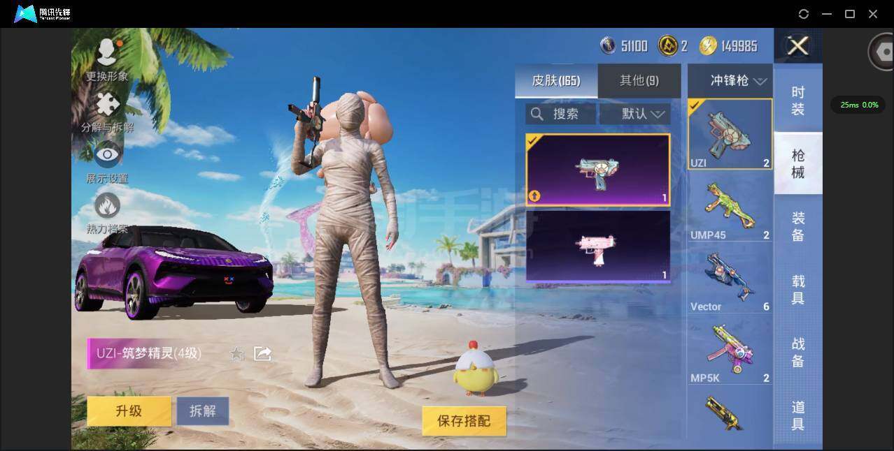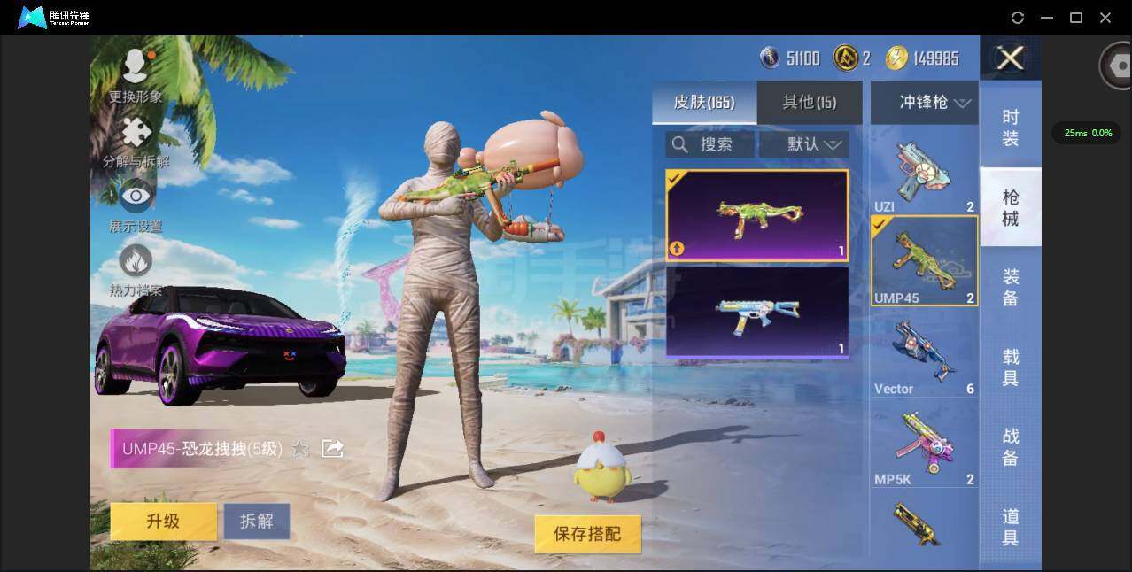 时装数: 118 载具数: 6 枪械数: 165 战备数: 98 热门装扮:
