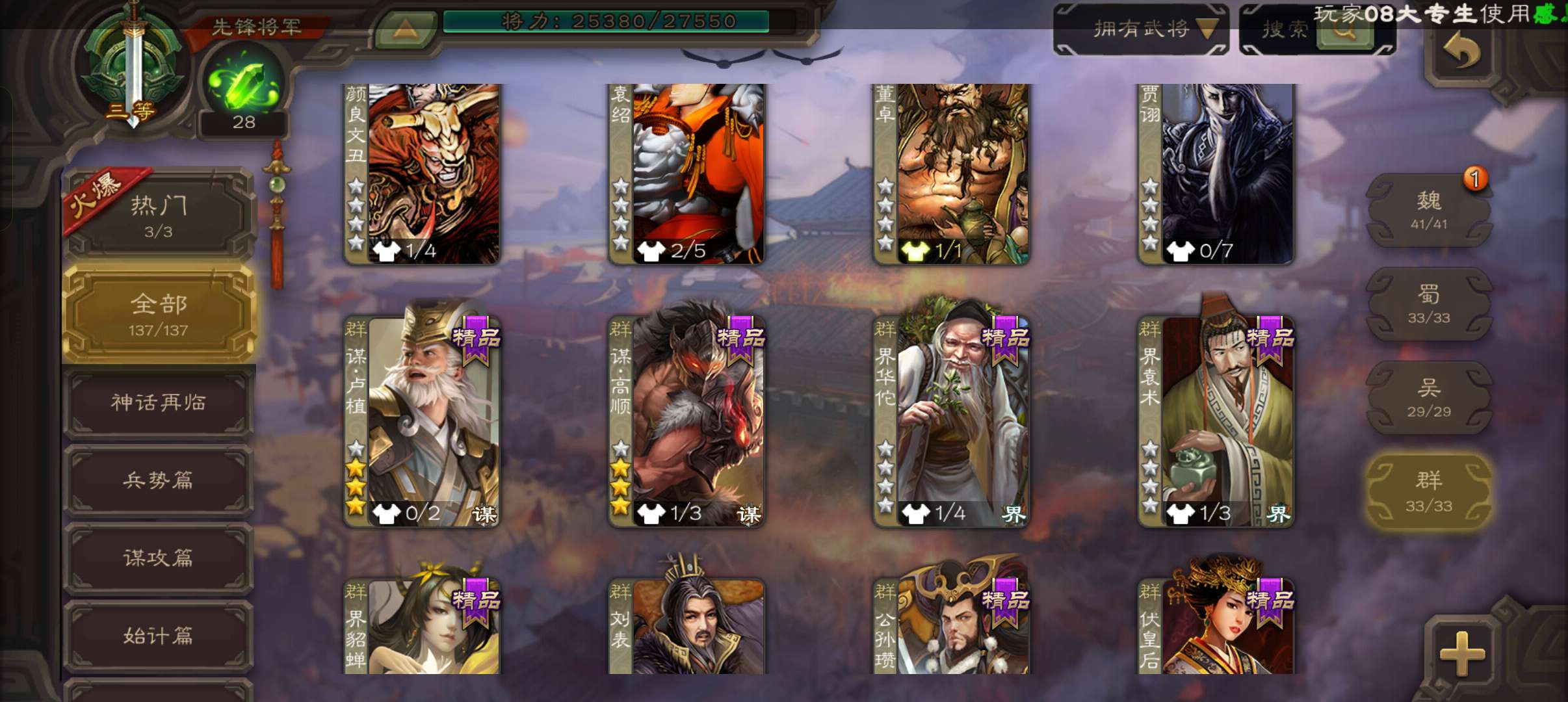 4万4羽毛,界钟会张让双史诗先锋,神周瑜甘夫人谋卢植谋高顺金皮界曹植137将