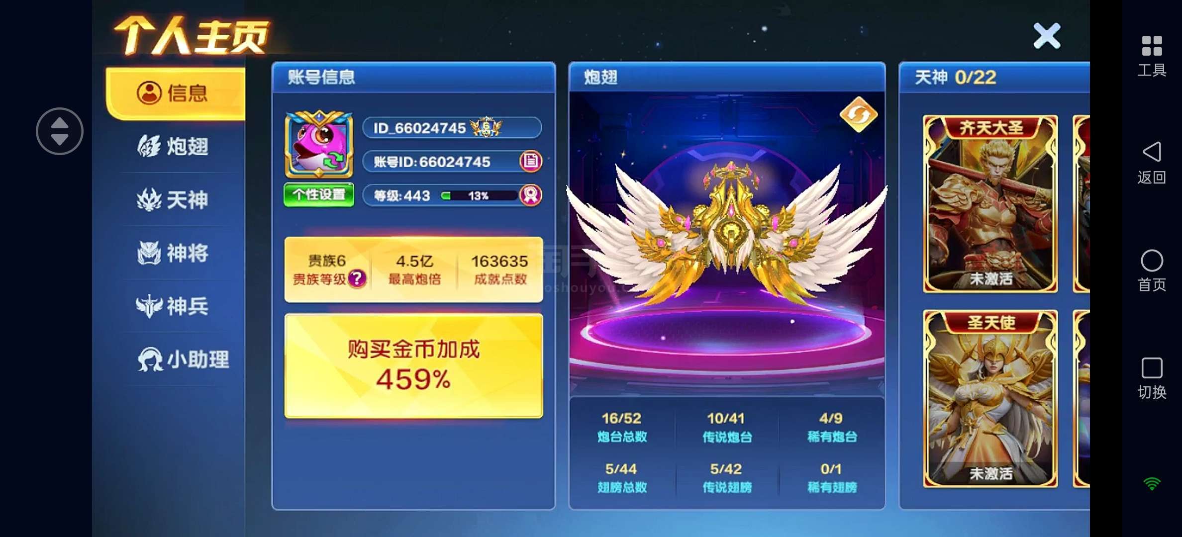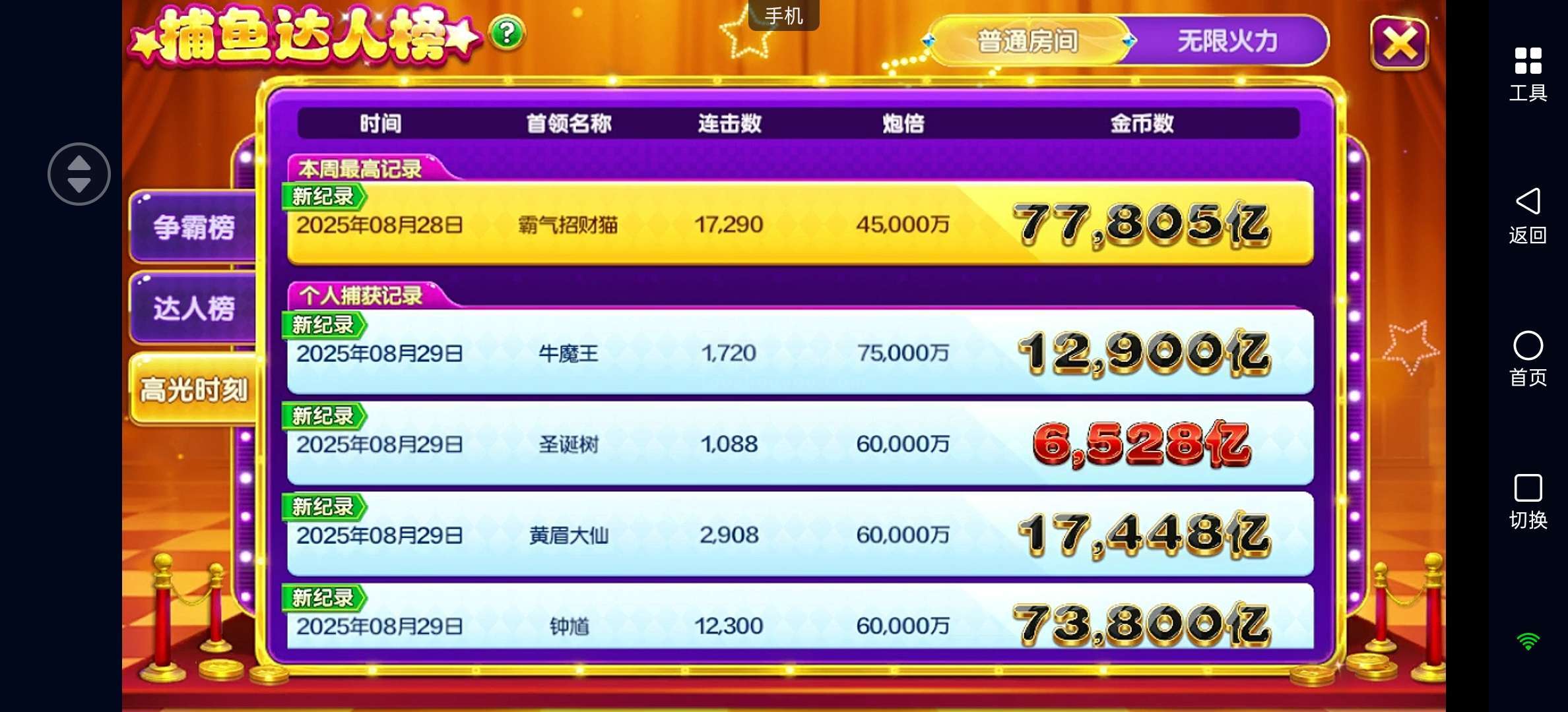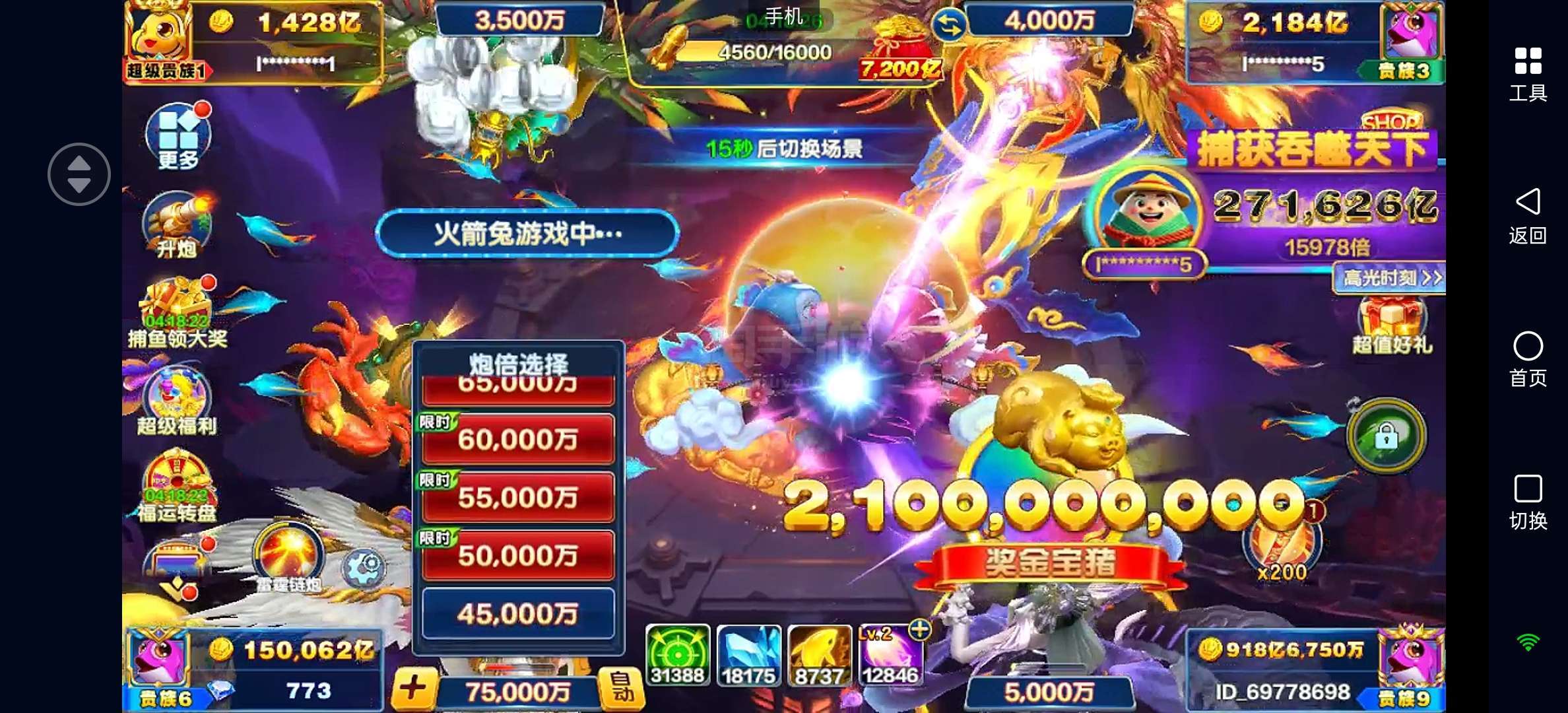 捕鱼大咖【安卓小米】30天以上没打过 捕鱼大咖V6 4.5亿炮限7.5亿炮15万亿 时间天使小米安卓通用,能换绑。