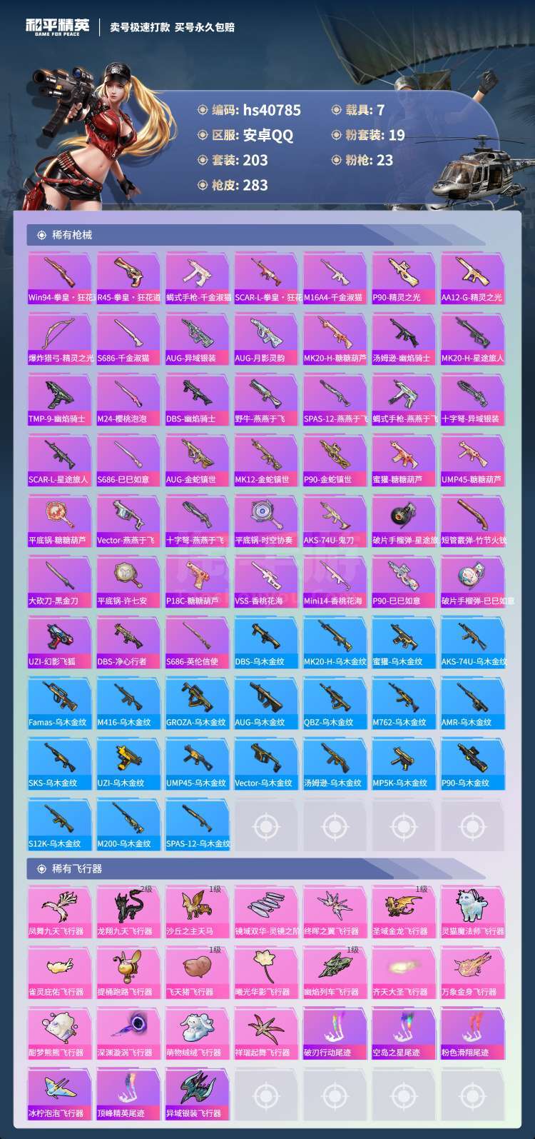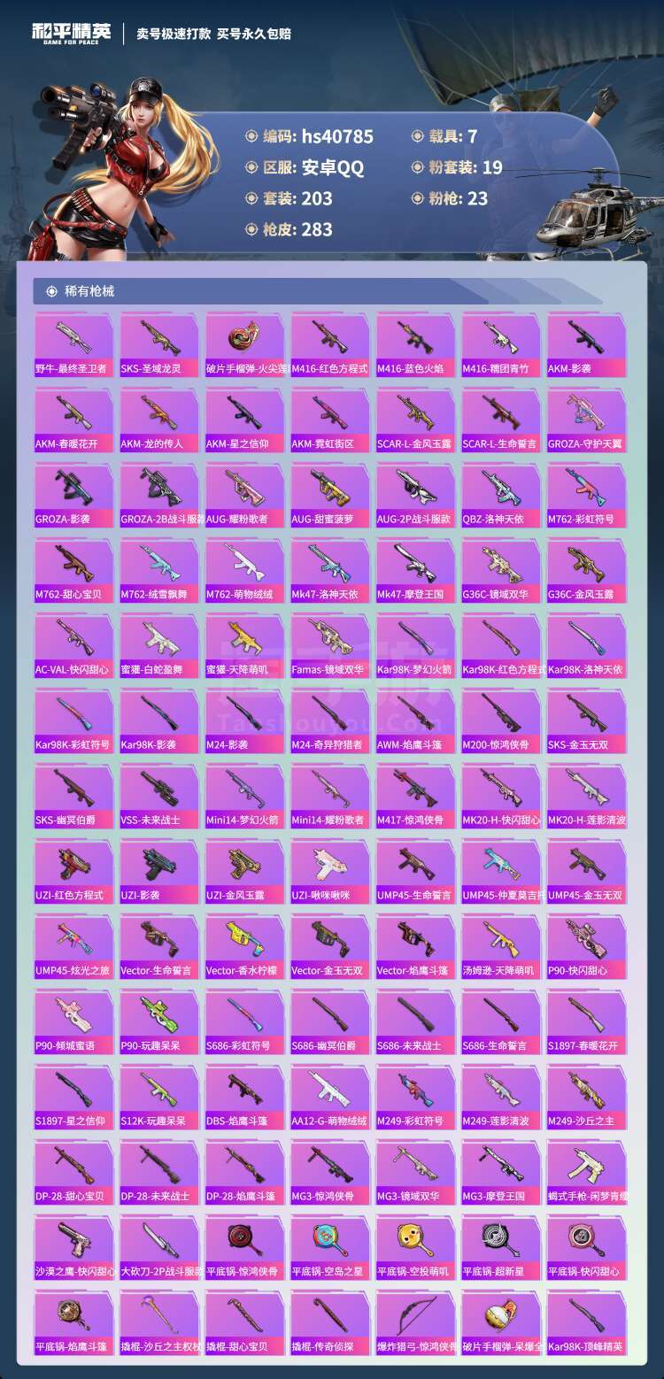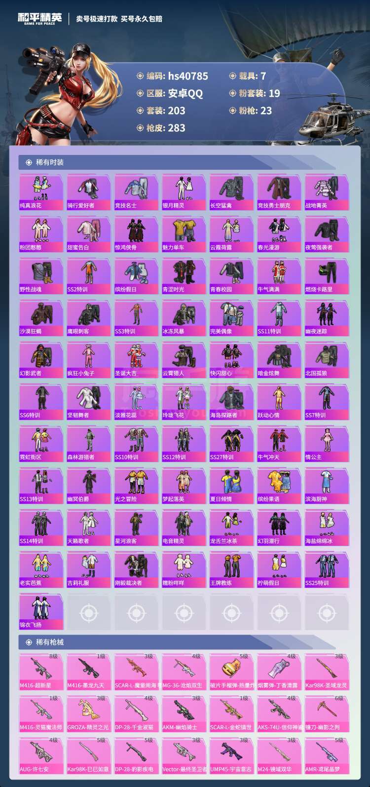 安卓手Q-10王牌印记-19粉装-23特效枪-7载具-114900热力值-203套装