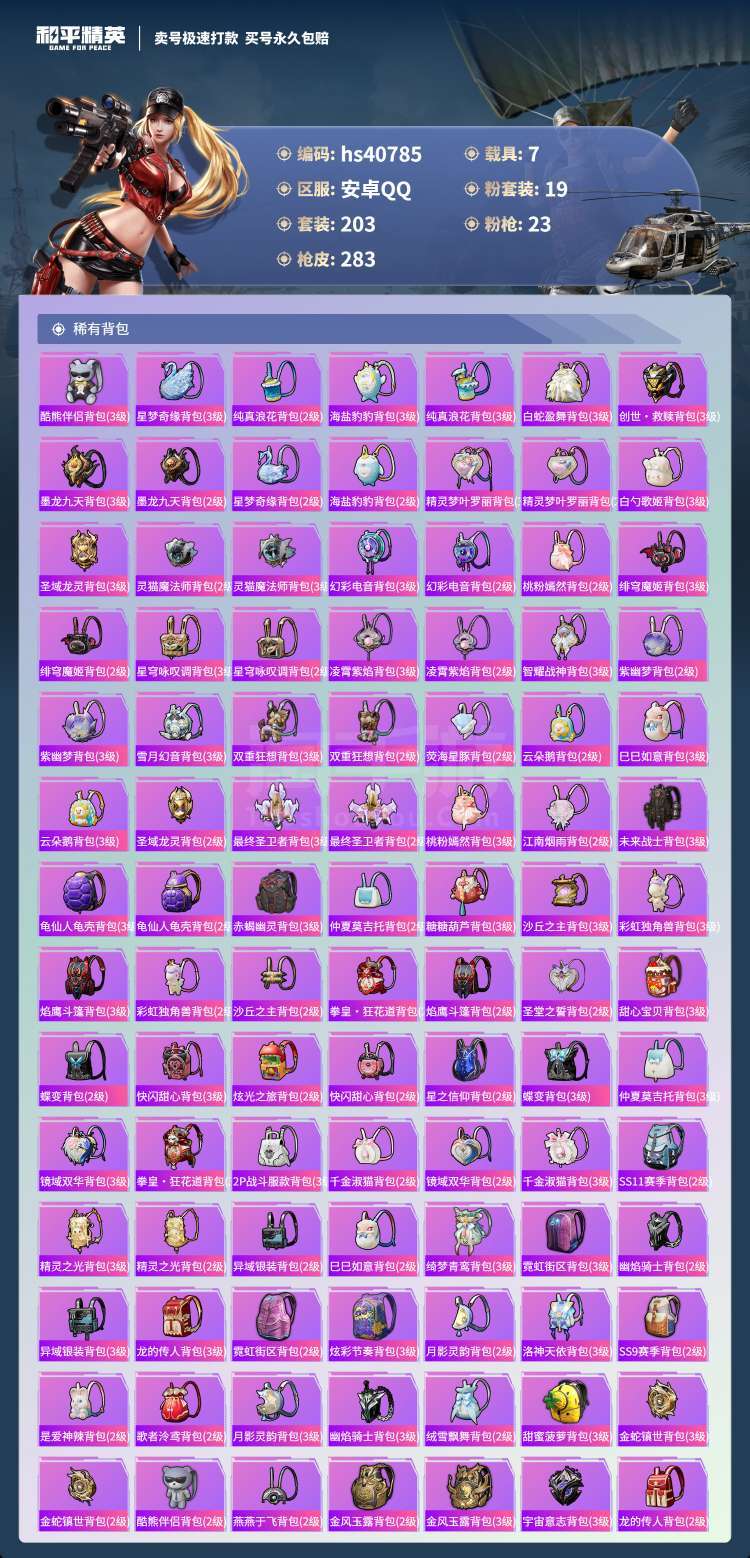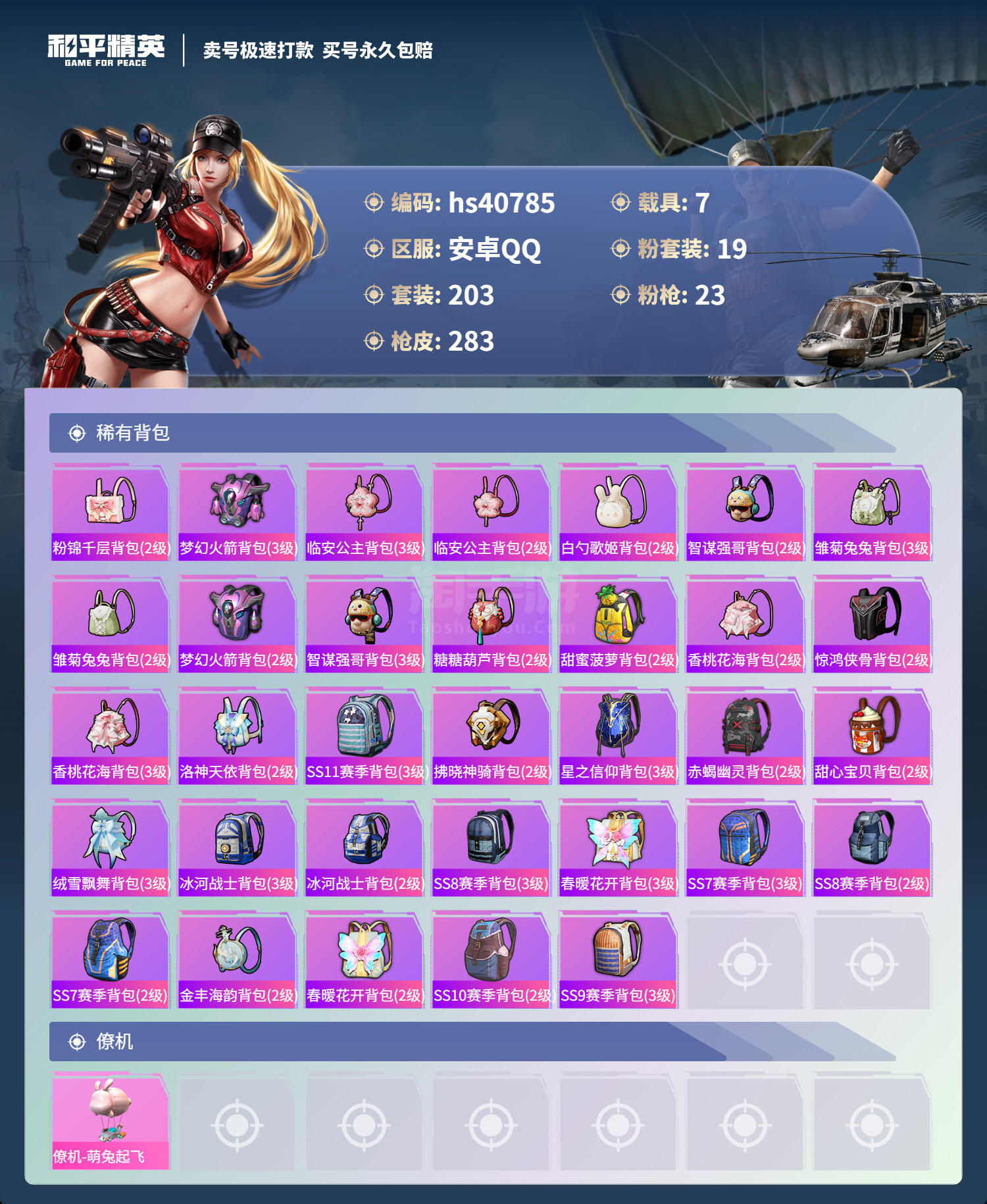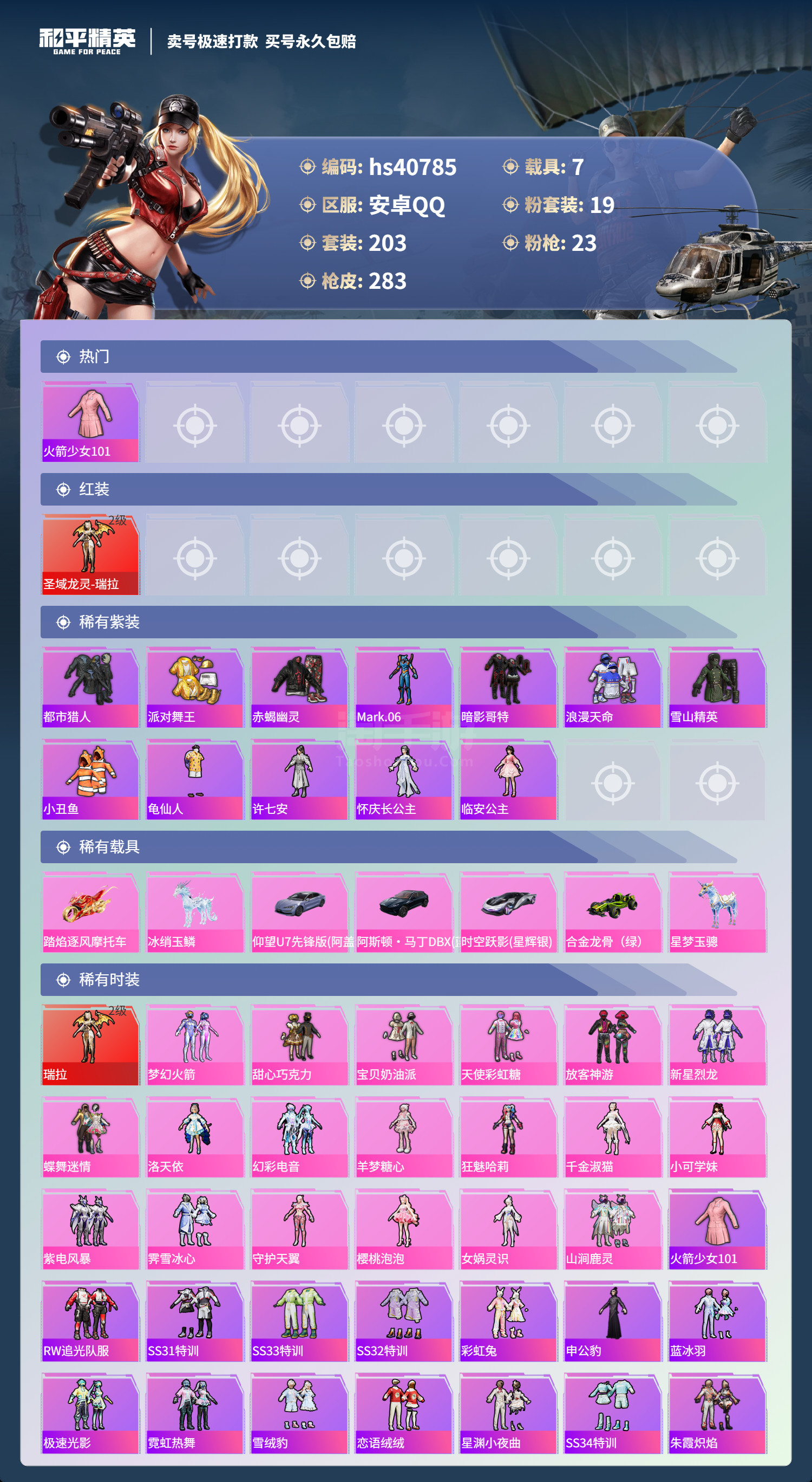 安卓手Q-10王牌印记-19粉装-23特效枪-7载具-114900热力值-203套装