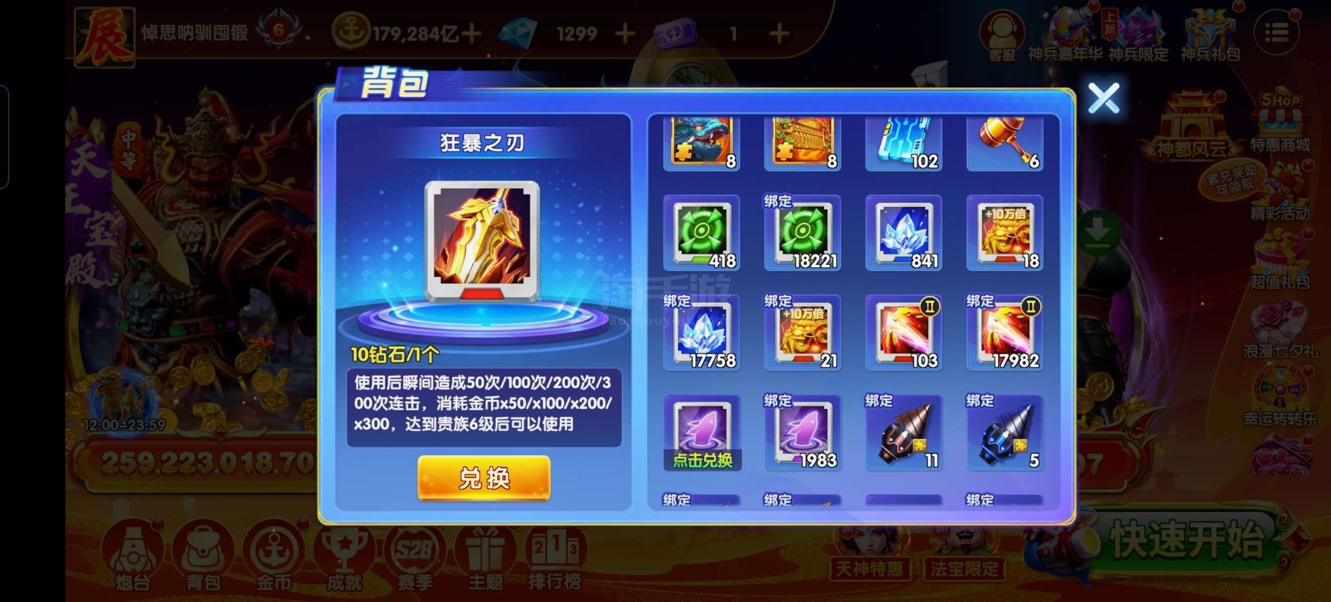 乐乐捕鱼V6金币17.9万亿9000炮多神兵带分裂