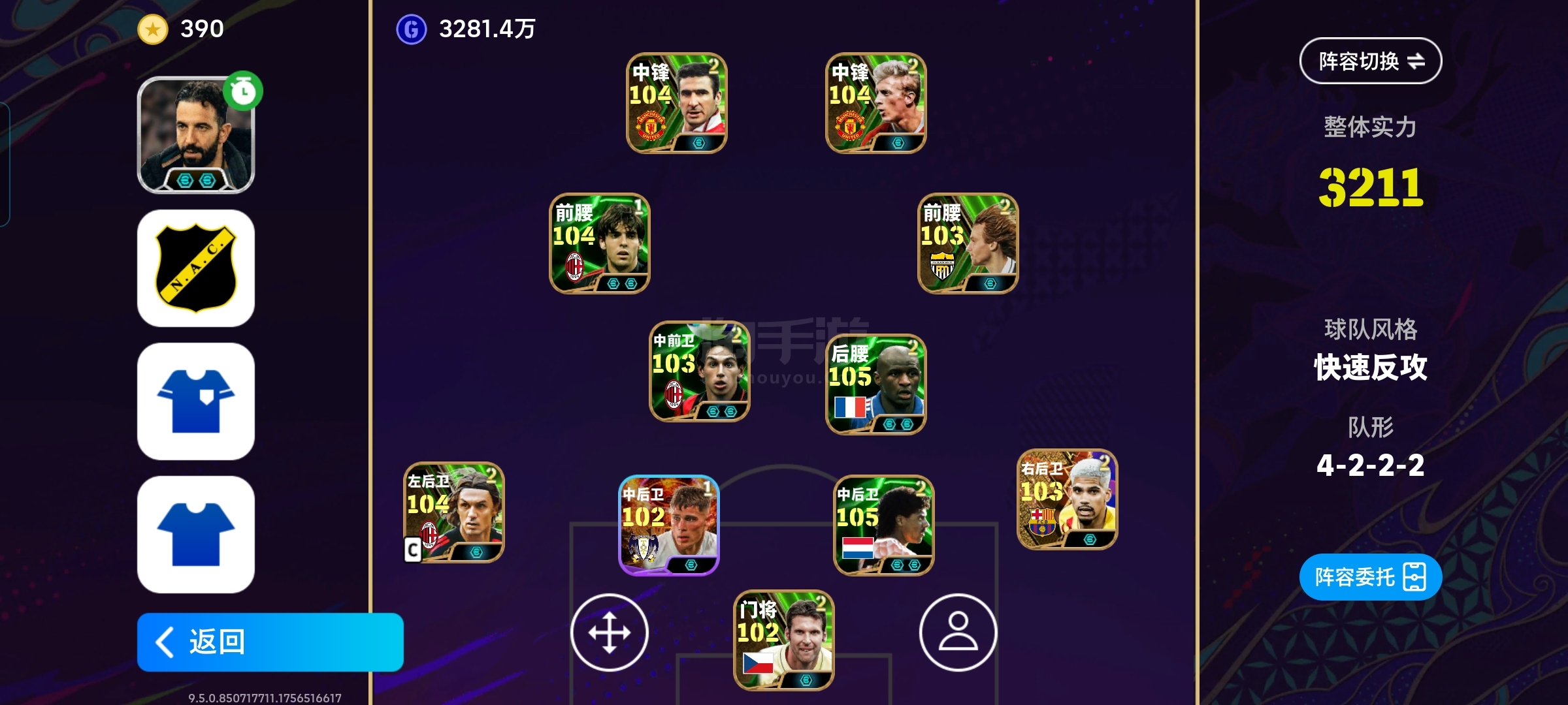 安卓华为 3200评分,主教练数量:30 金球数量:300 黑球数量:258 球员数量:600 球队实力:3211可以小刀