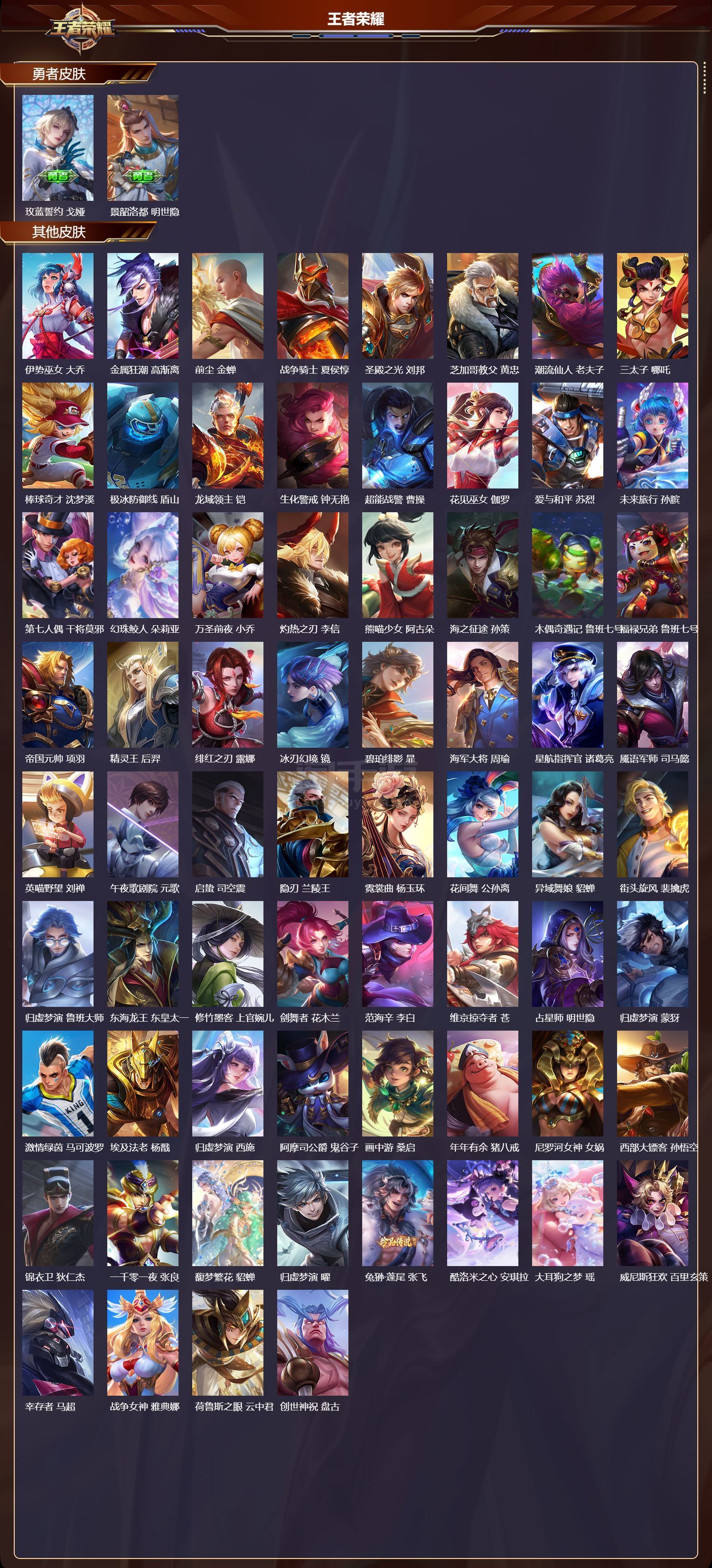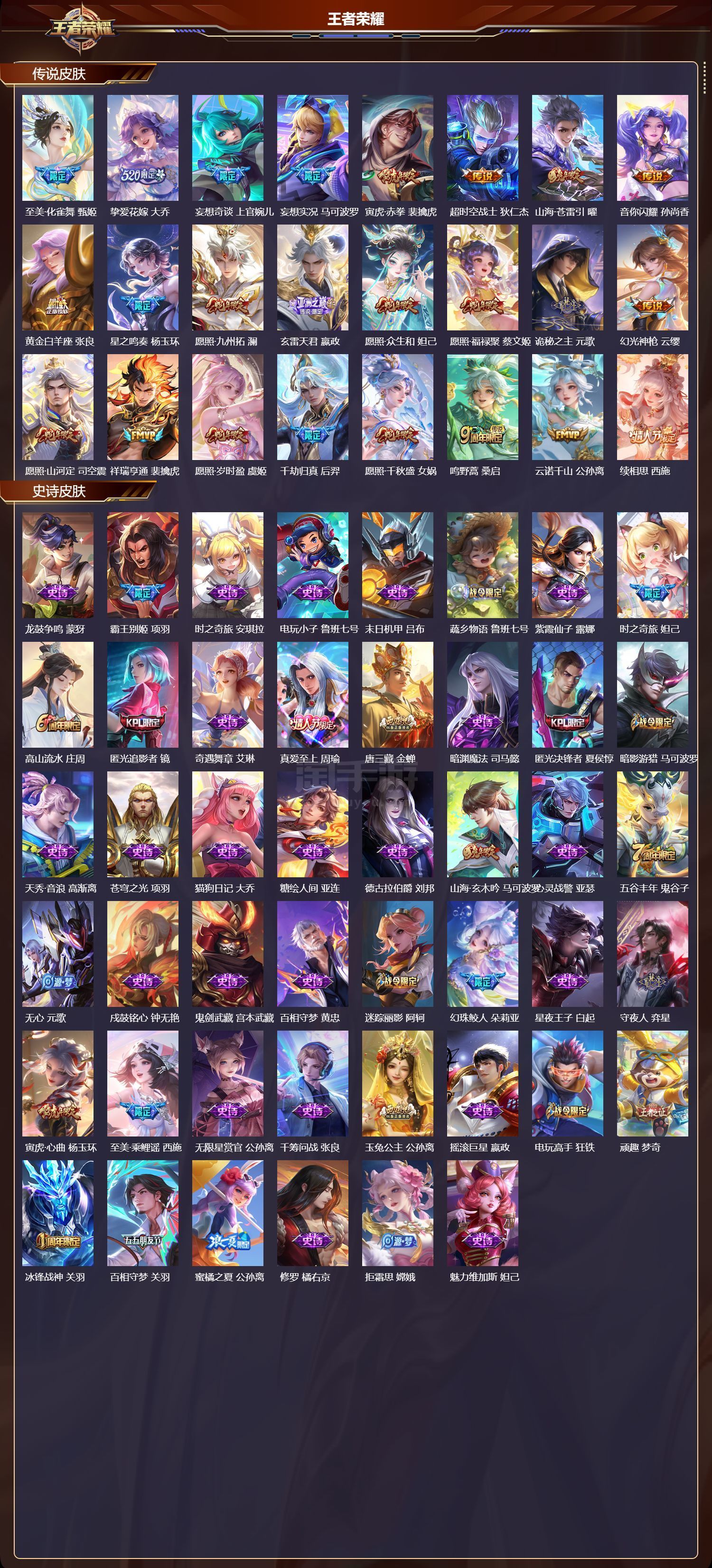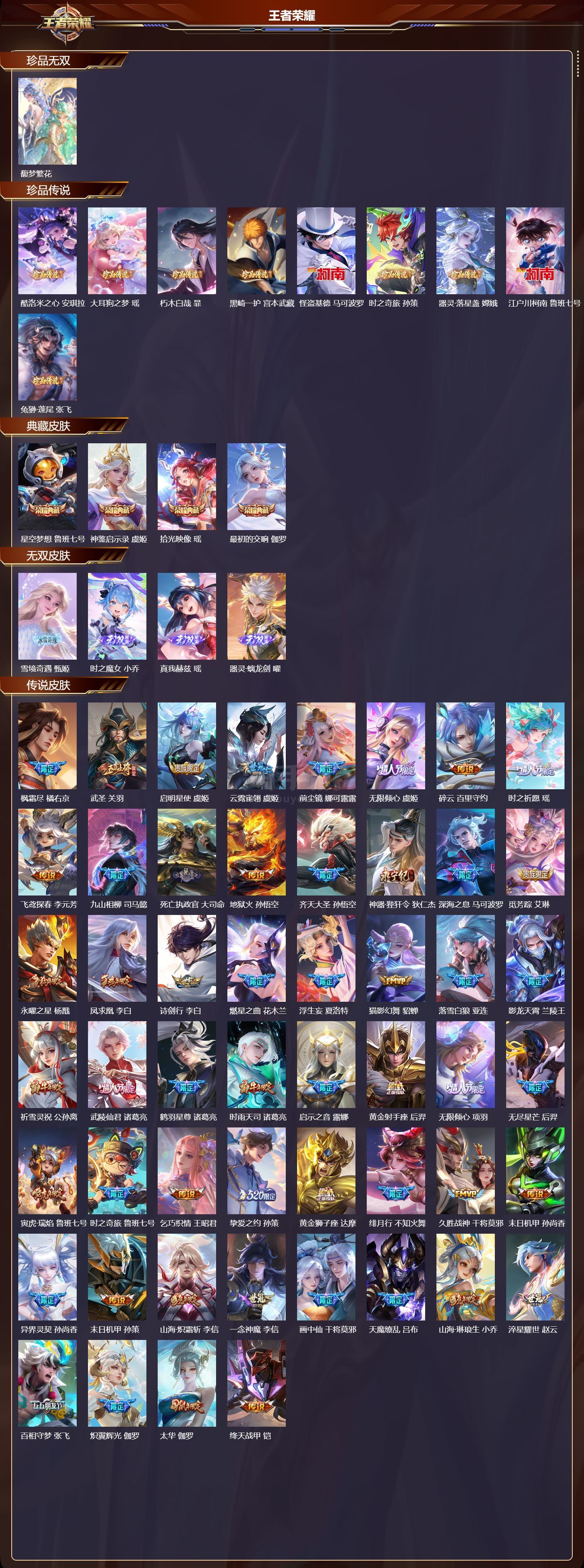 苹果微/传奇王者/500皮肤/125英雄/4典藏/1珍品无双/4无双/9珍品传说/76传说/173