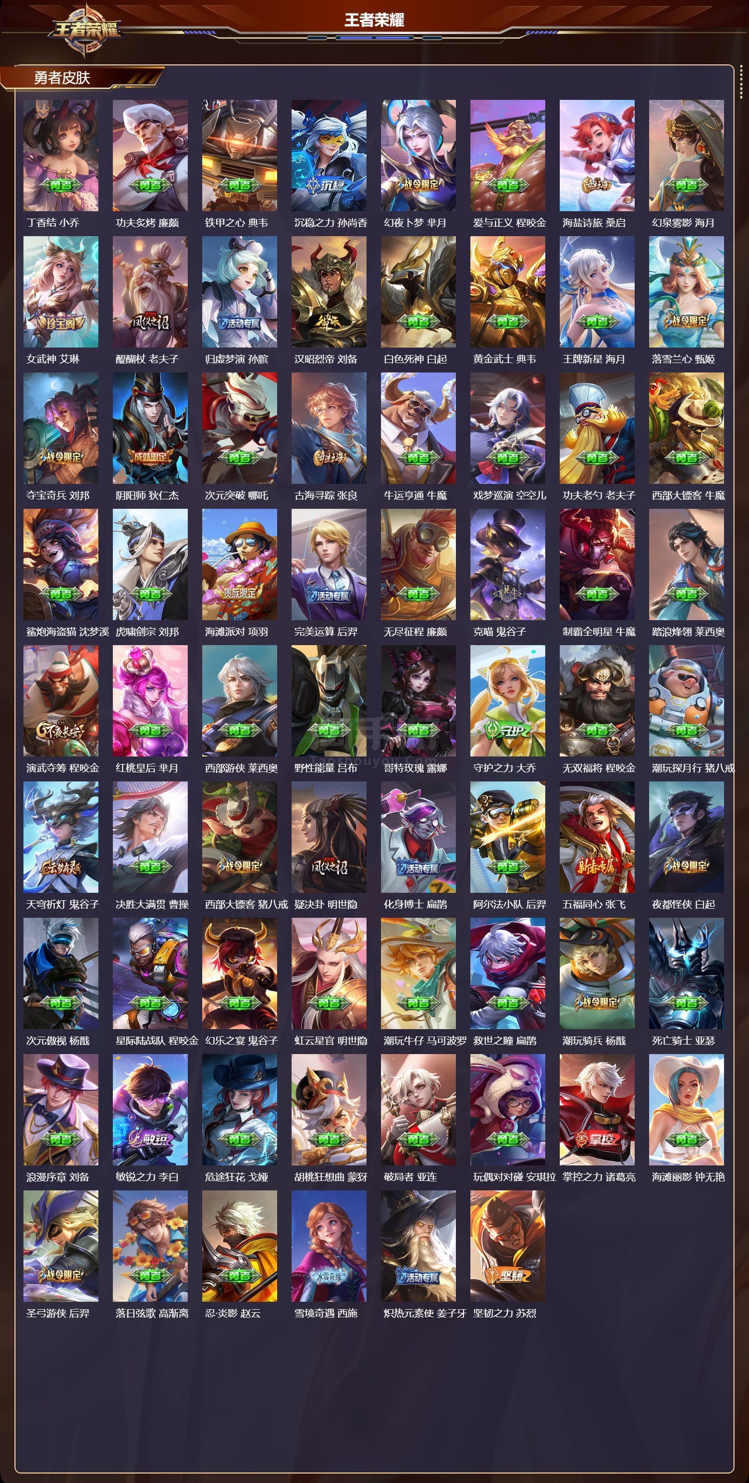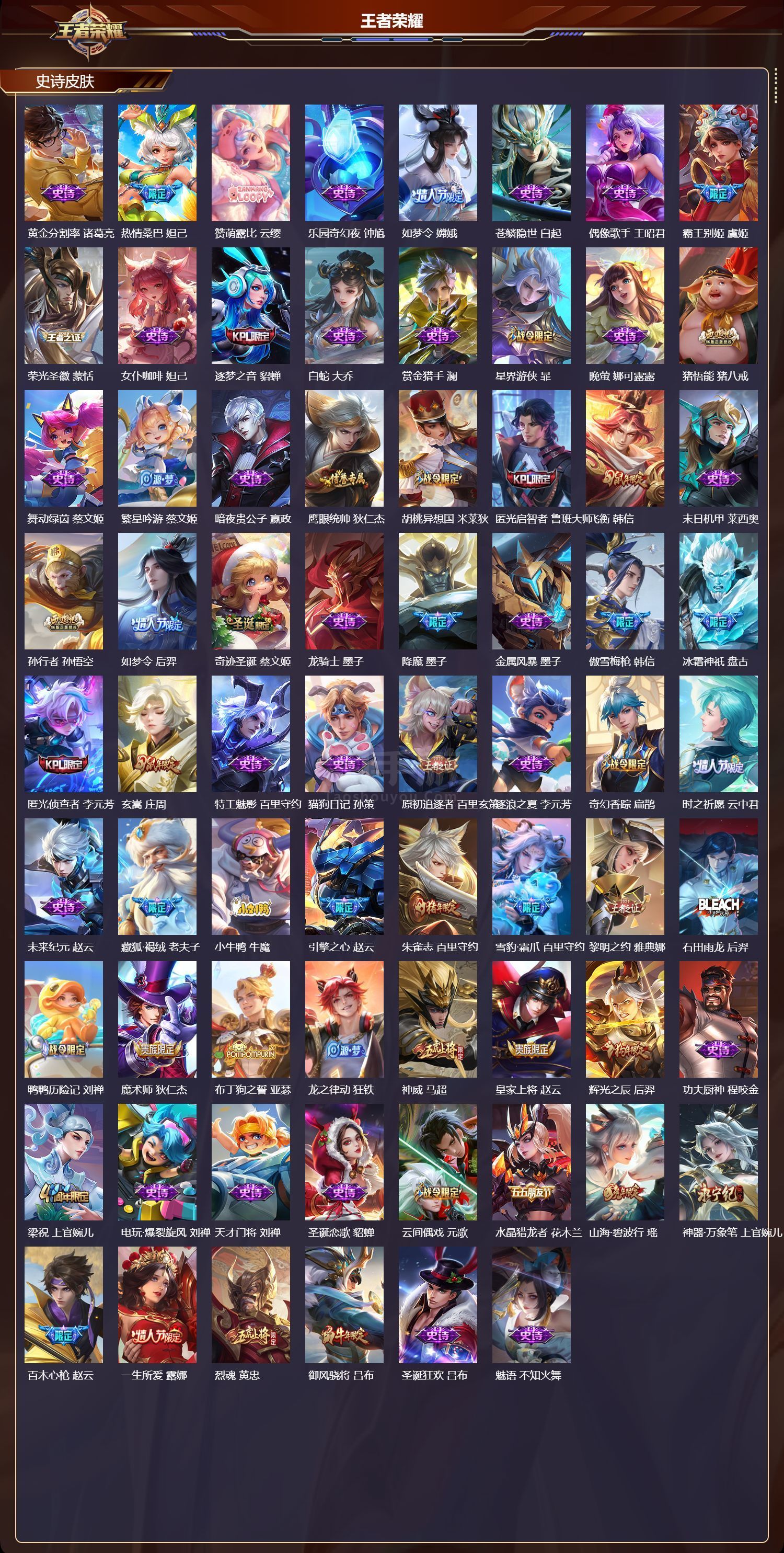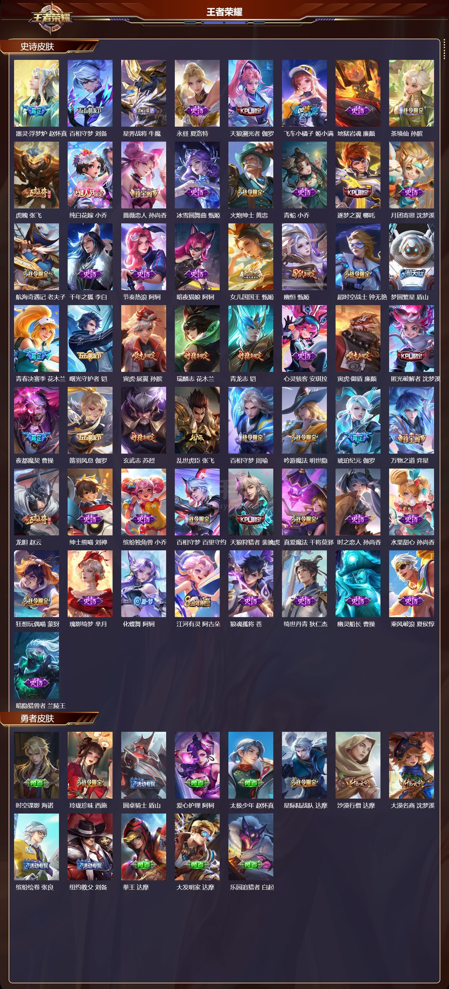 苹果微/传奇王者/500皮肤/125英雄/4典藏/1珍品无双/4无双/9珍品传说/76传说/173