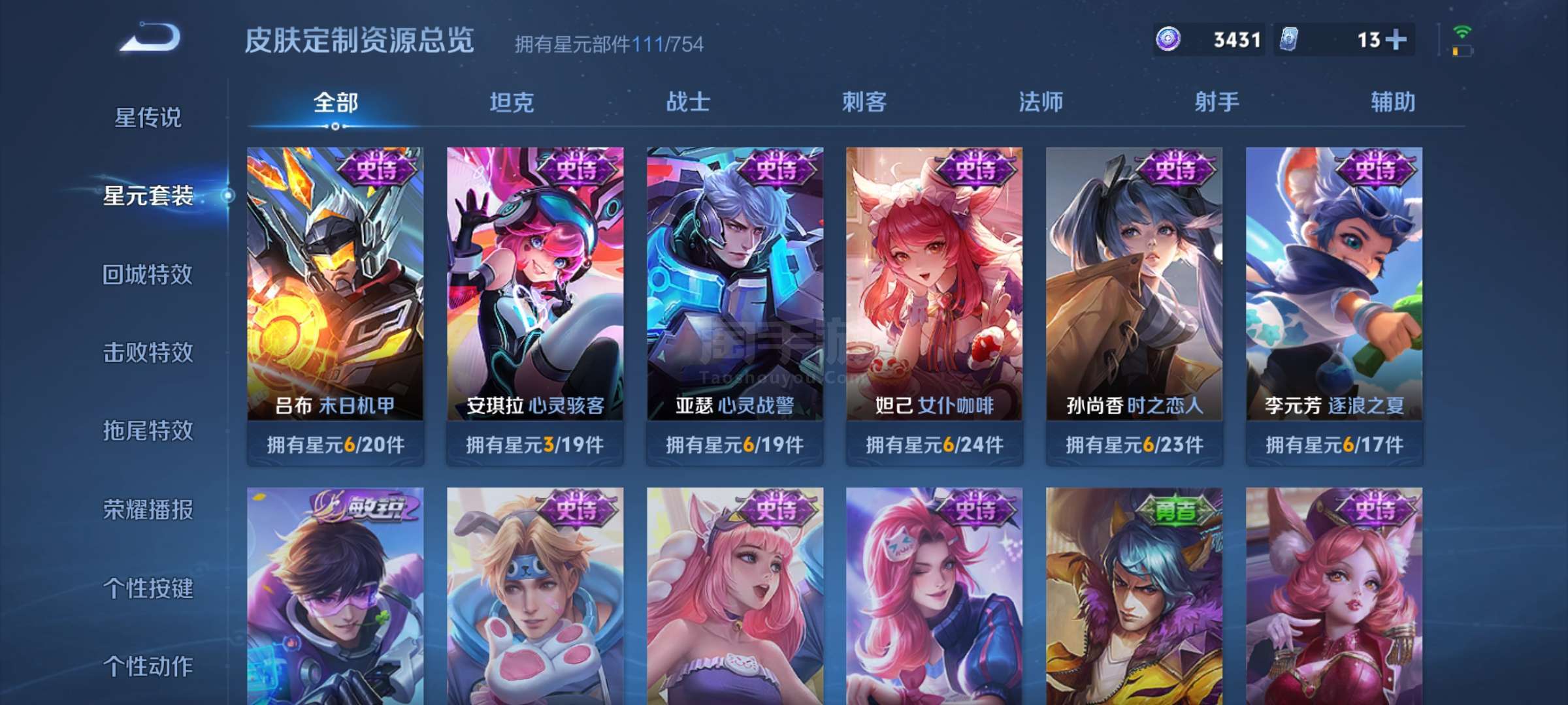 诸葛亮无双皮,韩信典藏皮,还有好多传说皮肤和限定皮肤。