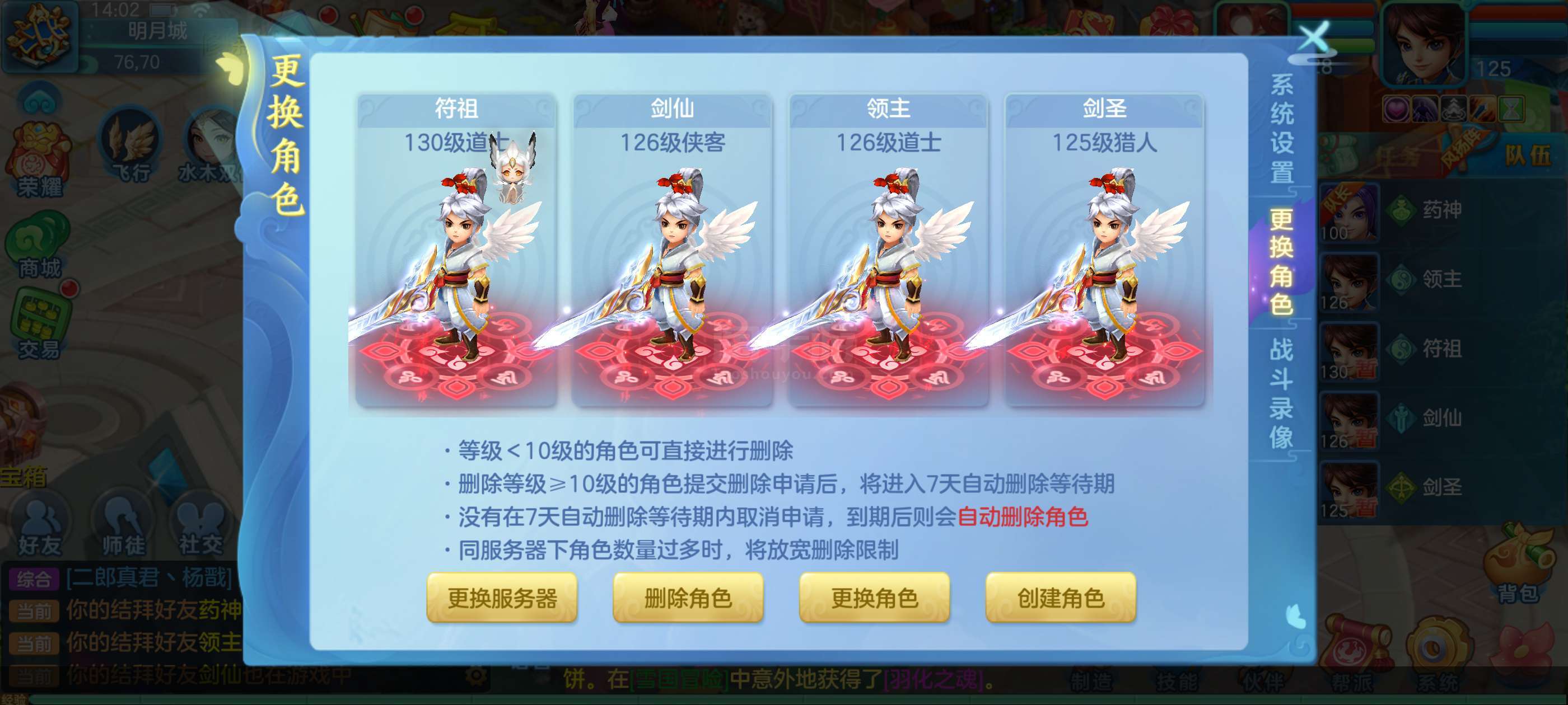一区花好月圆 一个账号下四个角色 125 飞升 4 角色,日常活动无压力