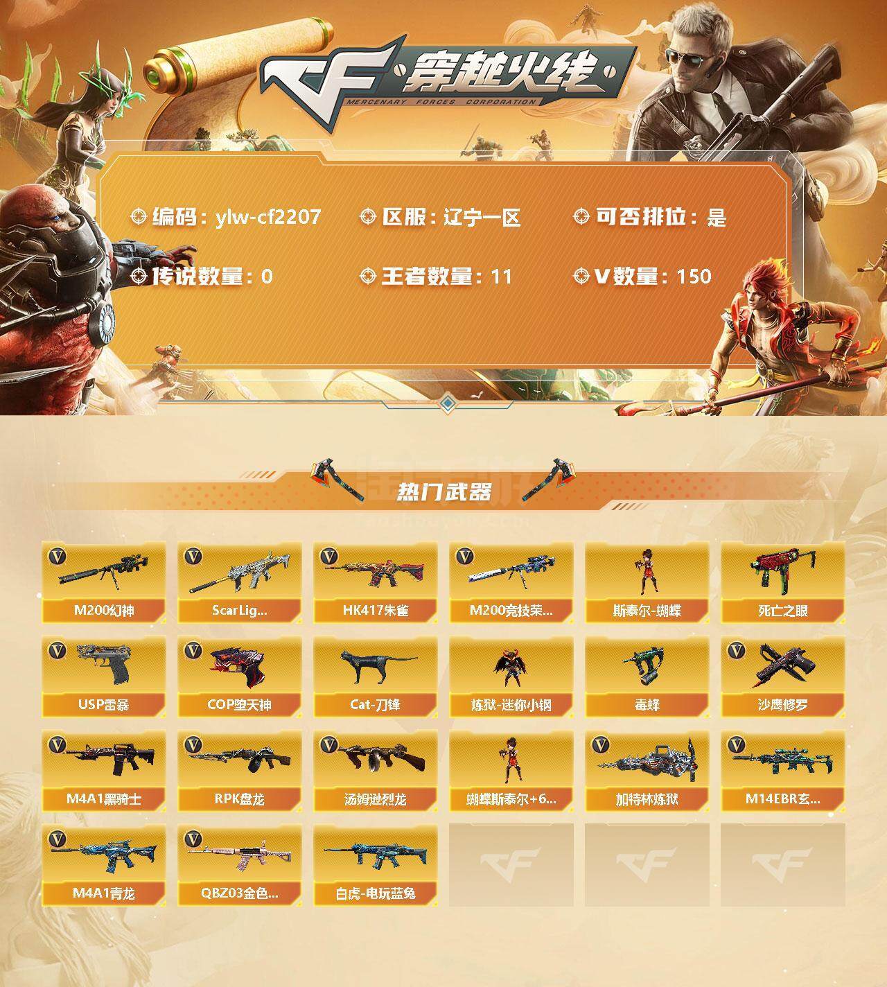 穿越火线(CF)【端游】【商品标题】:辽宁一区-150V-11王者-7炫金