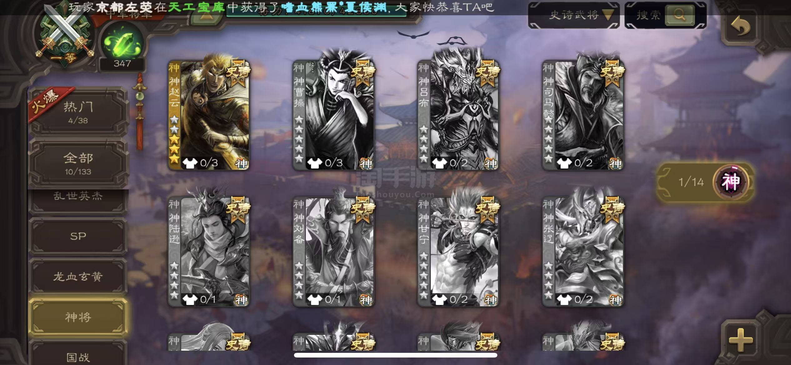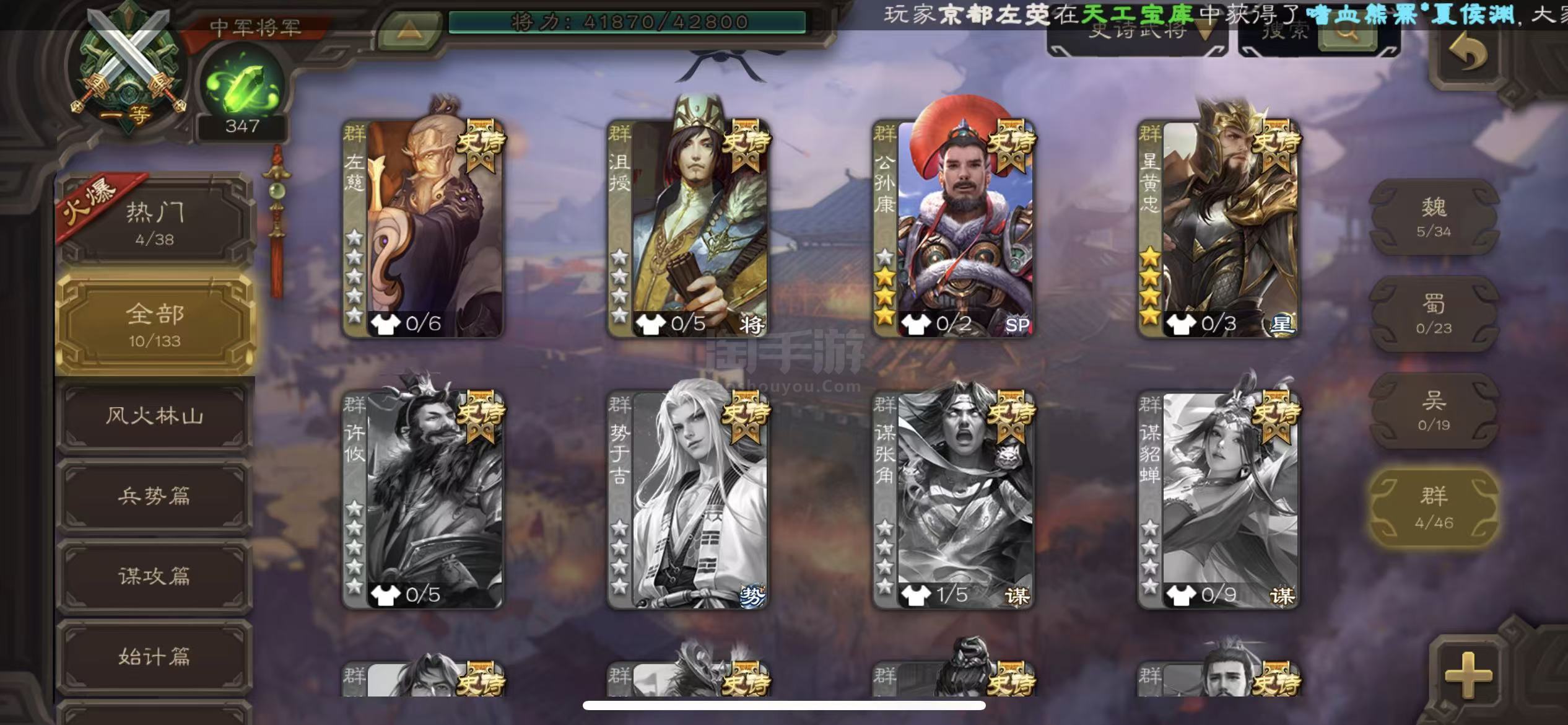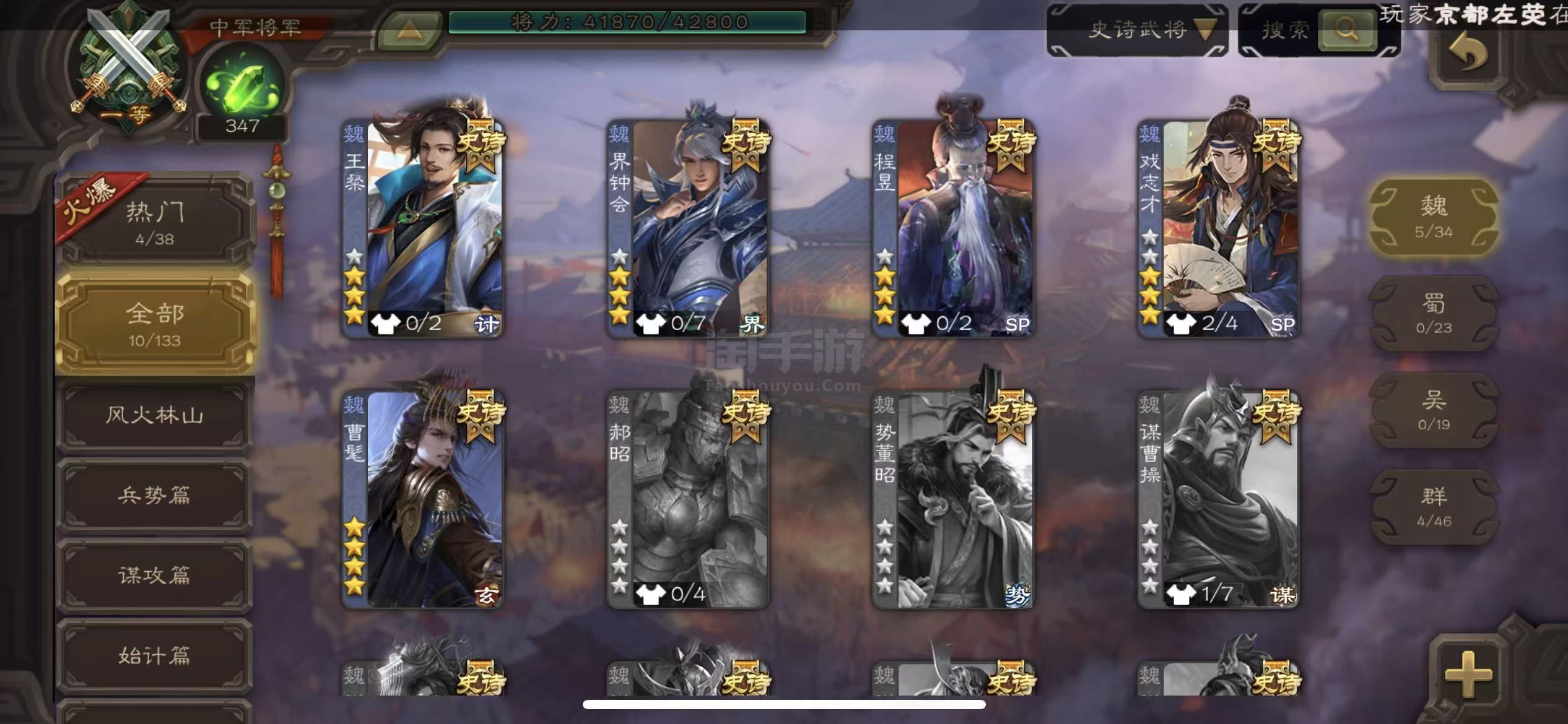 史诗武将数量: