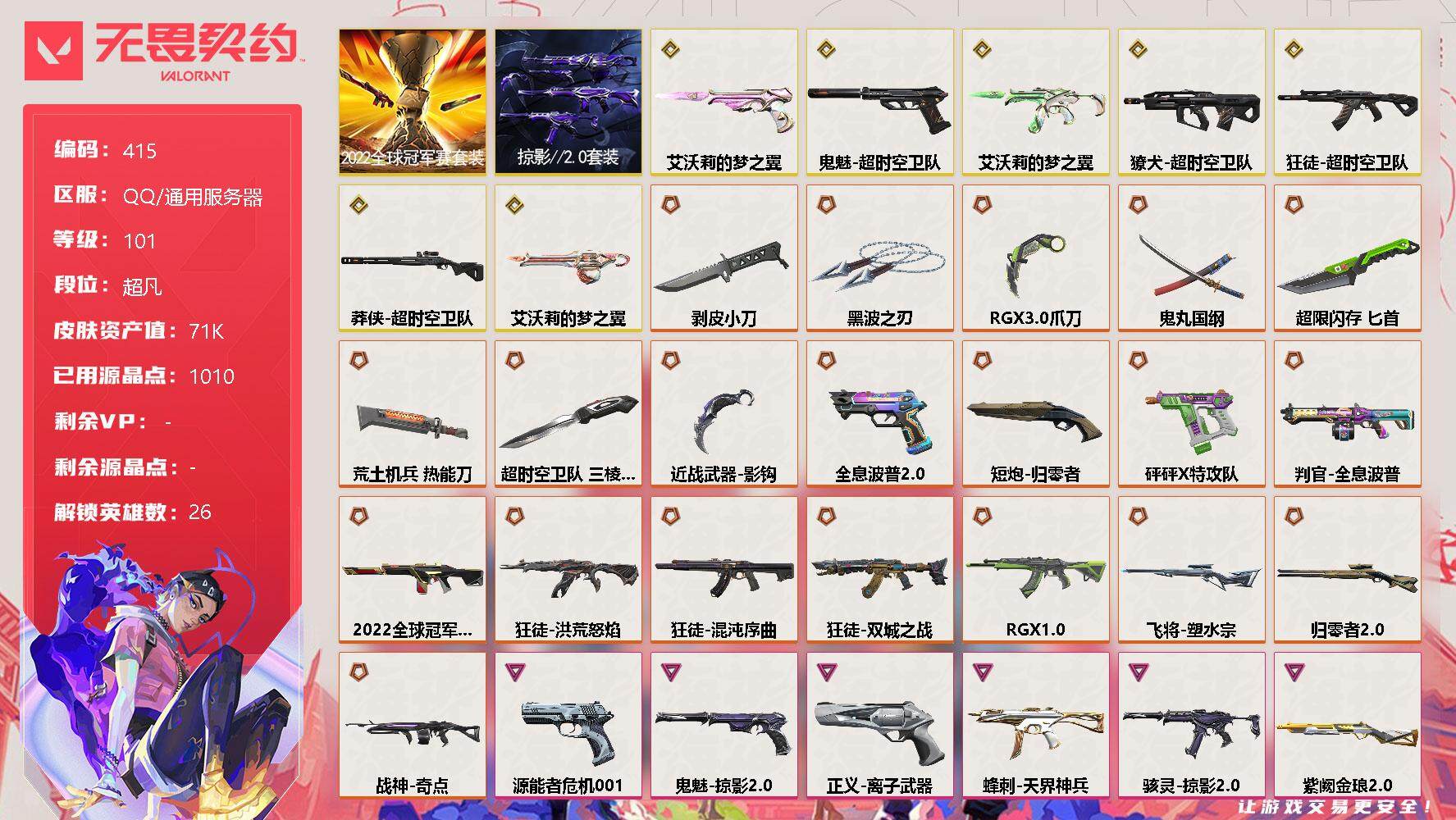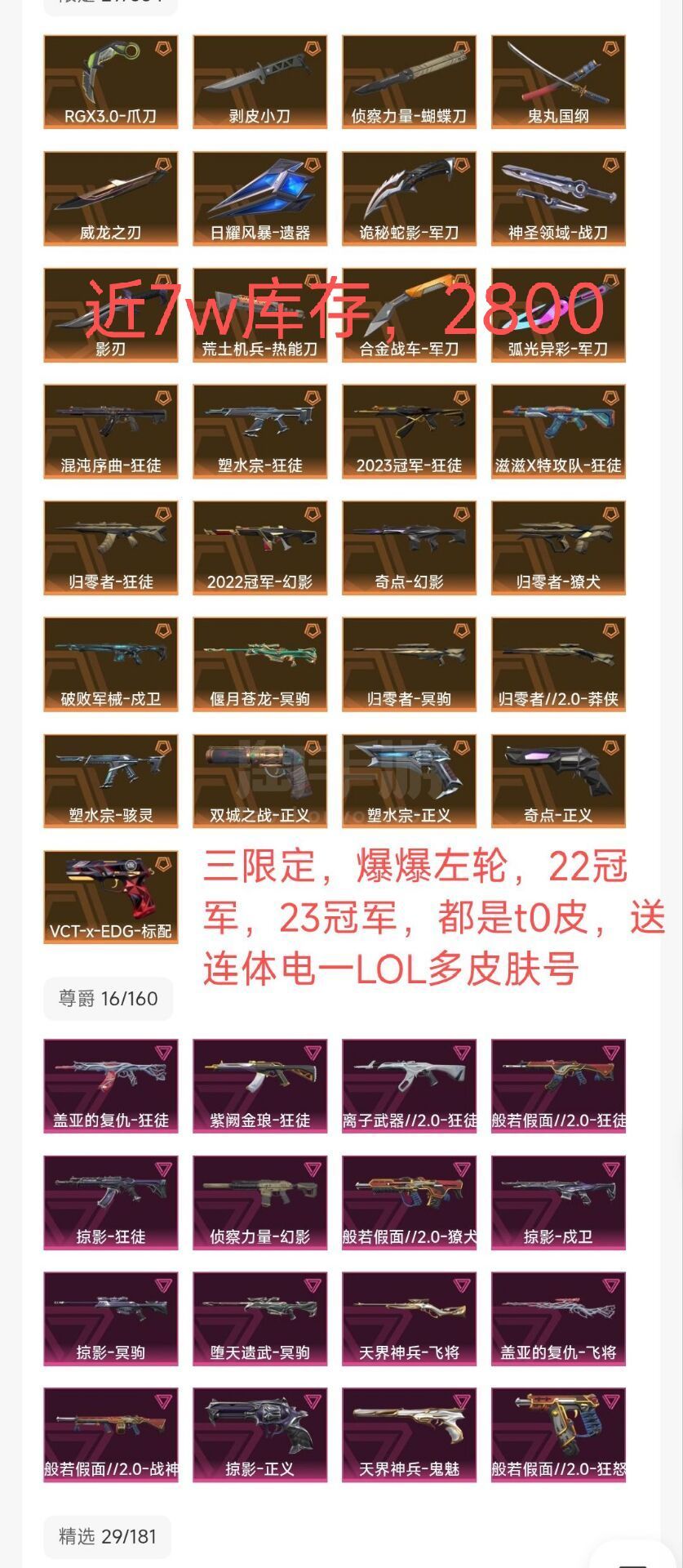 无畏契约【端游】无畏契约近7w库存冠军套三绝版,爆爆正义,22幻影,23狂徒