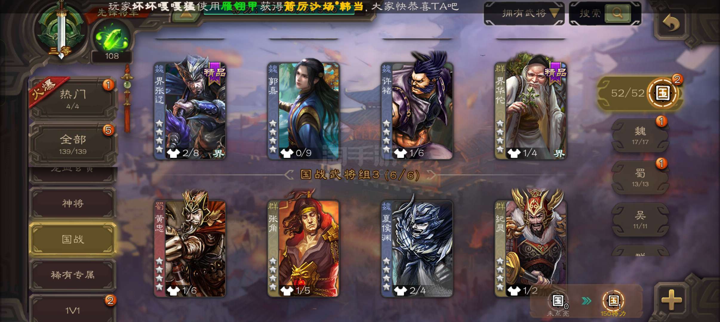 4.8万豆,回廊动白马庞德公杨修左慈4史诗先锋,掰开动皮界吕布崔琰谋高顺谋卢植140将