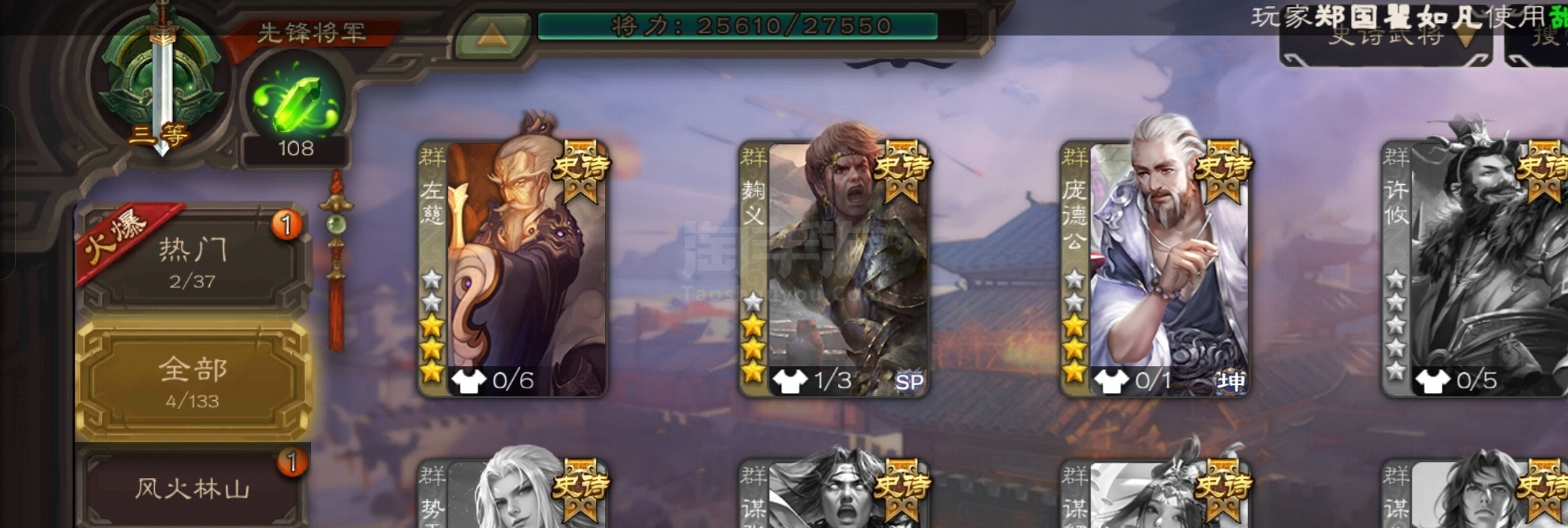 史诗武将数量:
