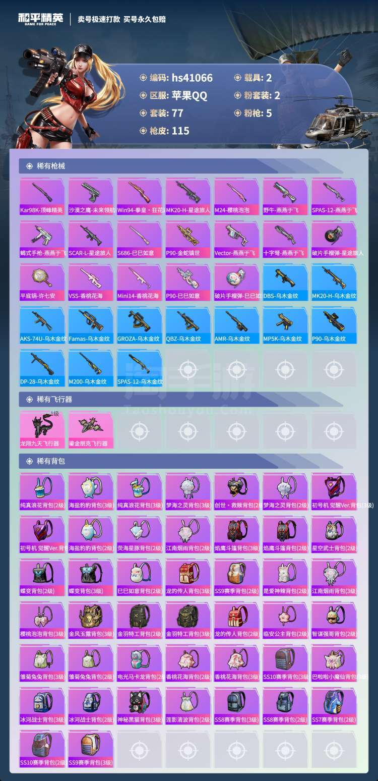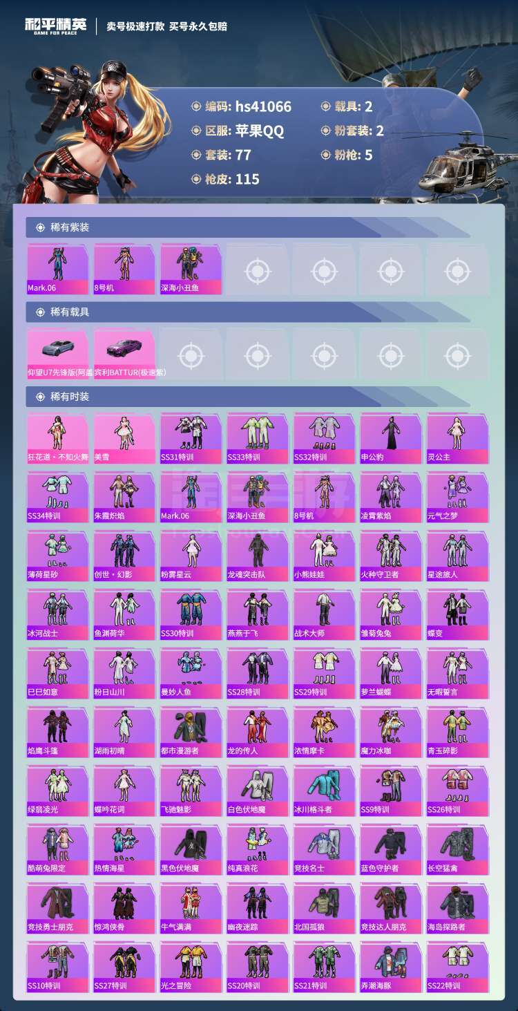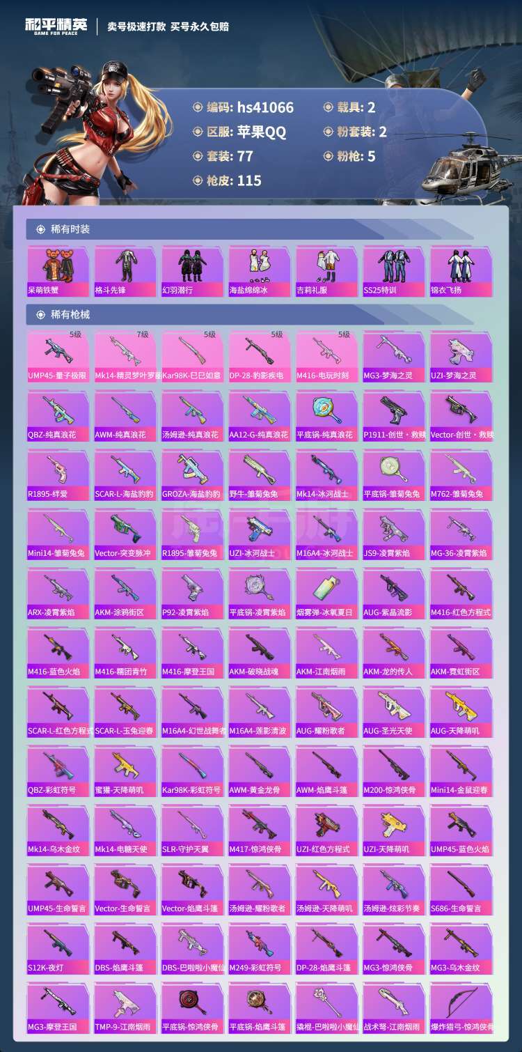 hs41066 苹果手Q-5王牌印记-2粉装-5特效枪-2载具-39211热力值-77套装-115枪