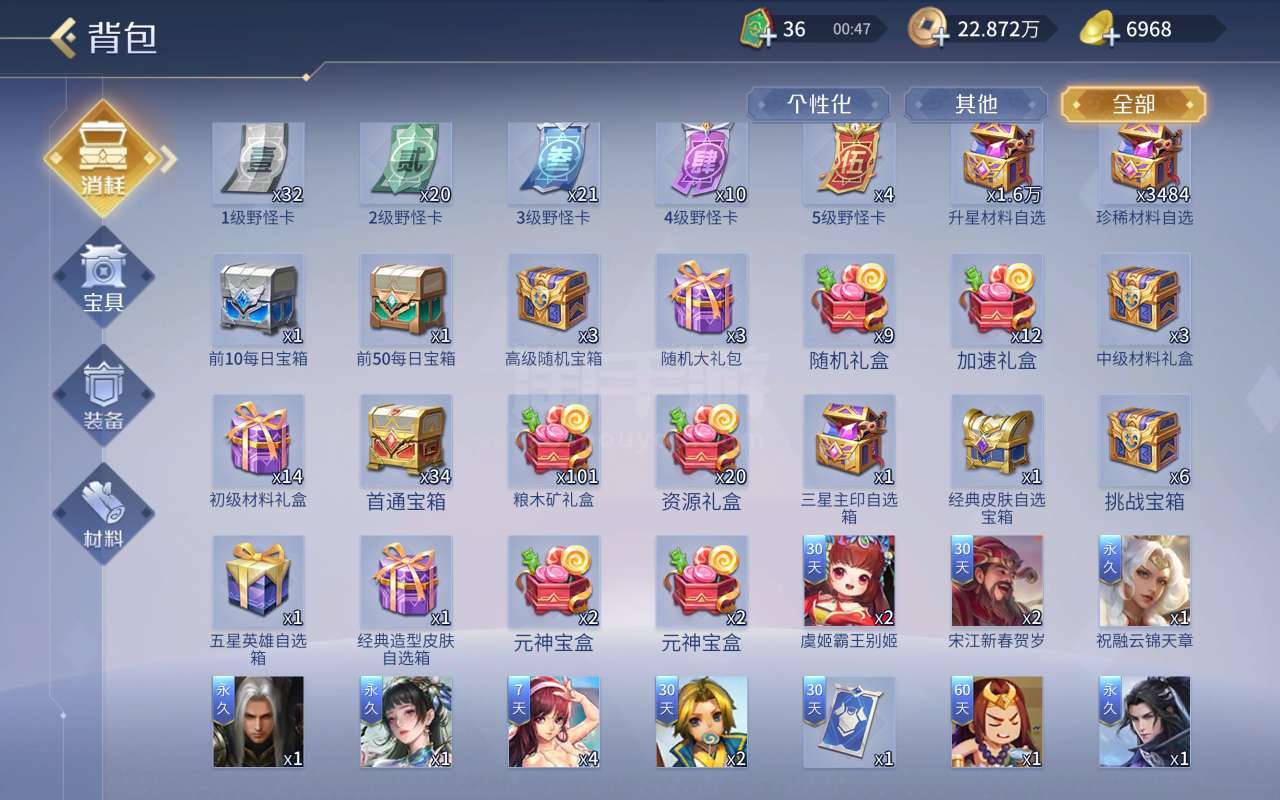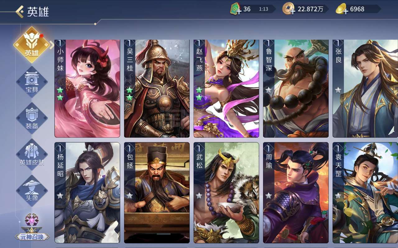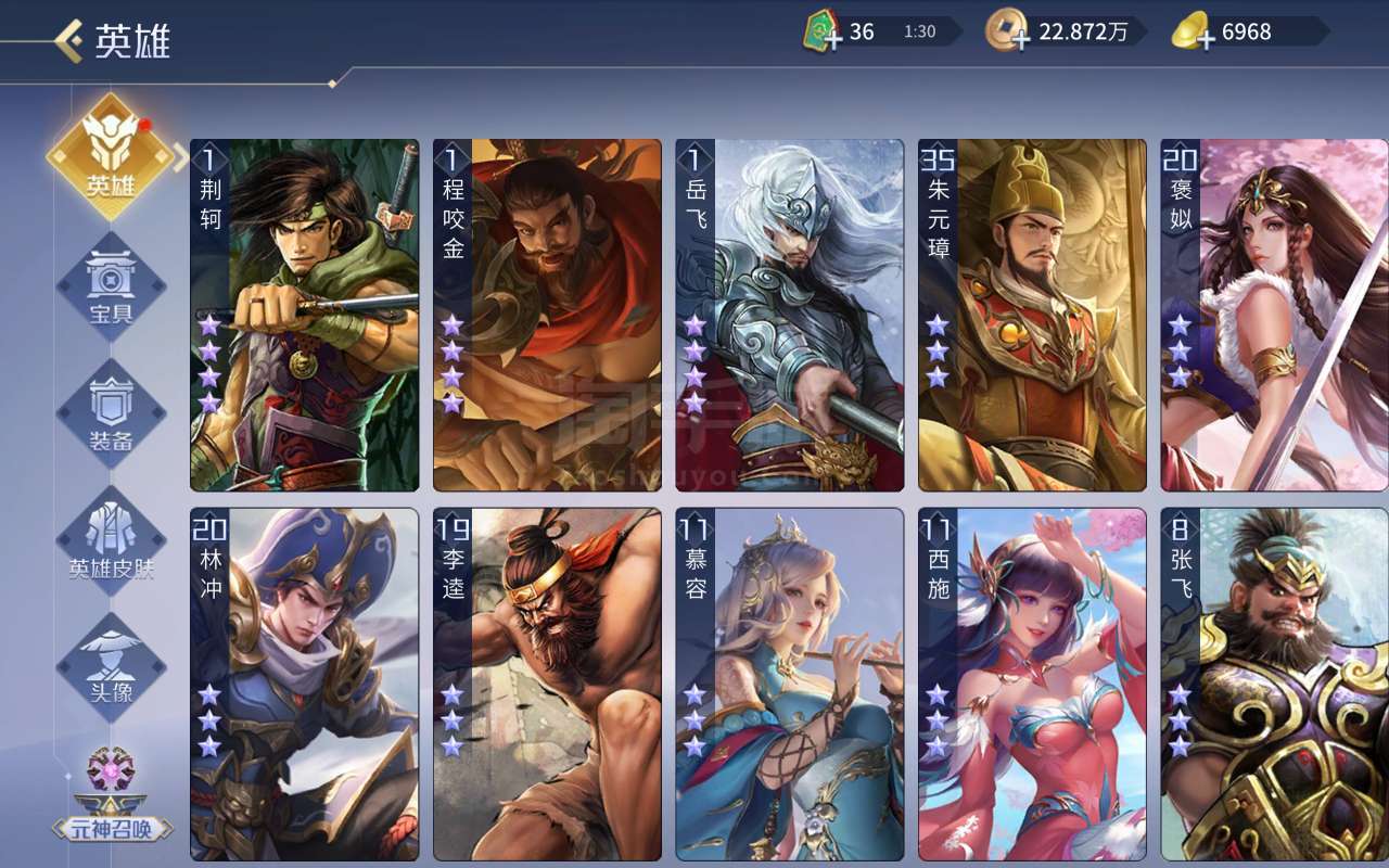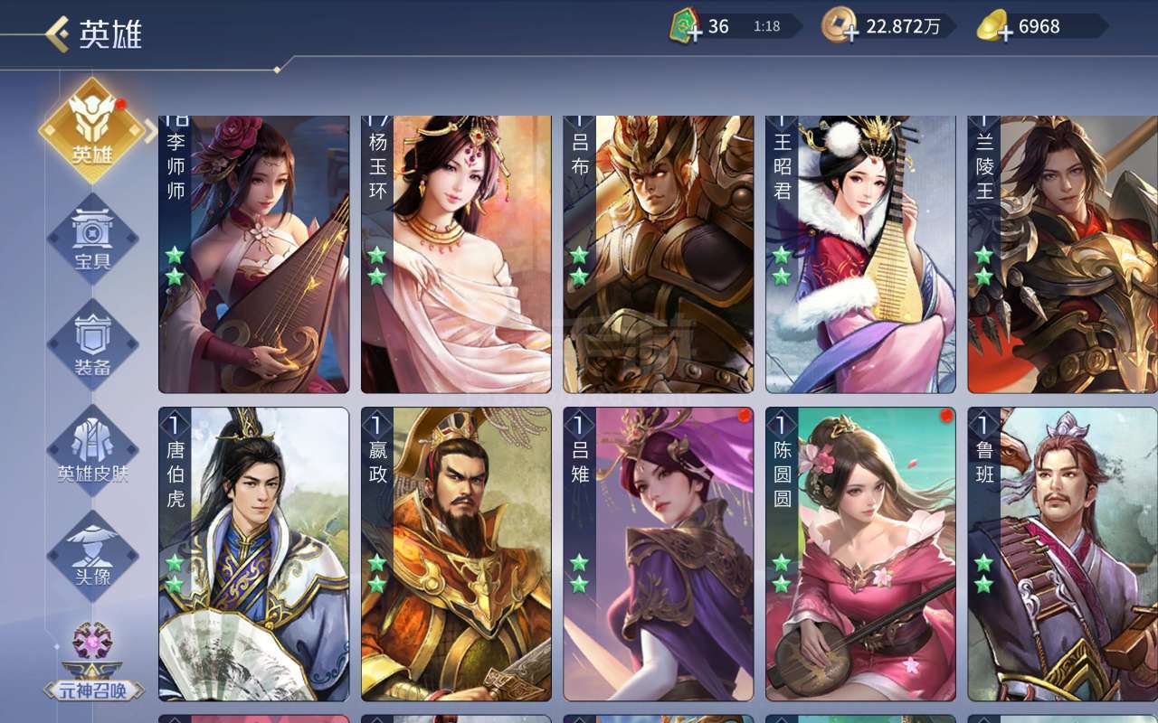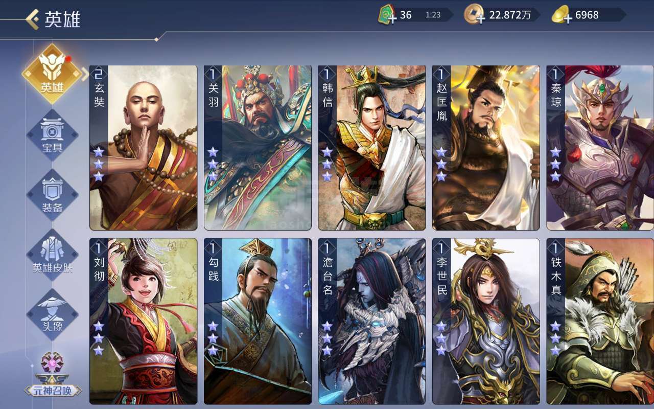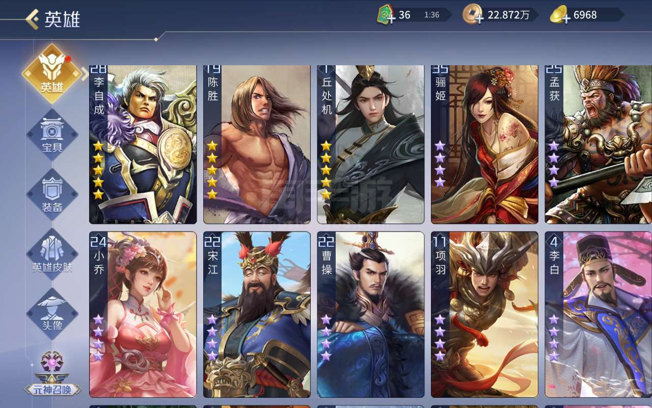 英雄杀【安卓QQ】世界采集小号四星郦姬,四星孟获,三个五星+一个五星箱子+马上再领一个五星,共五个五星英雄,双卡已开。