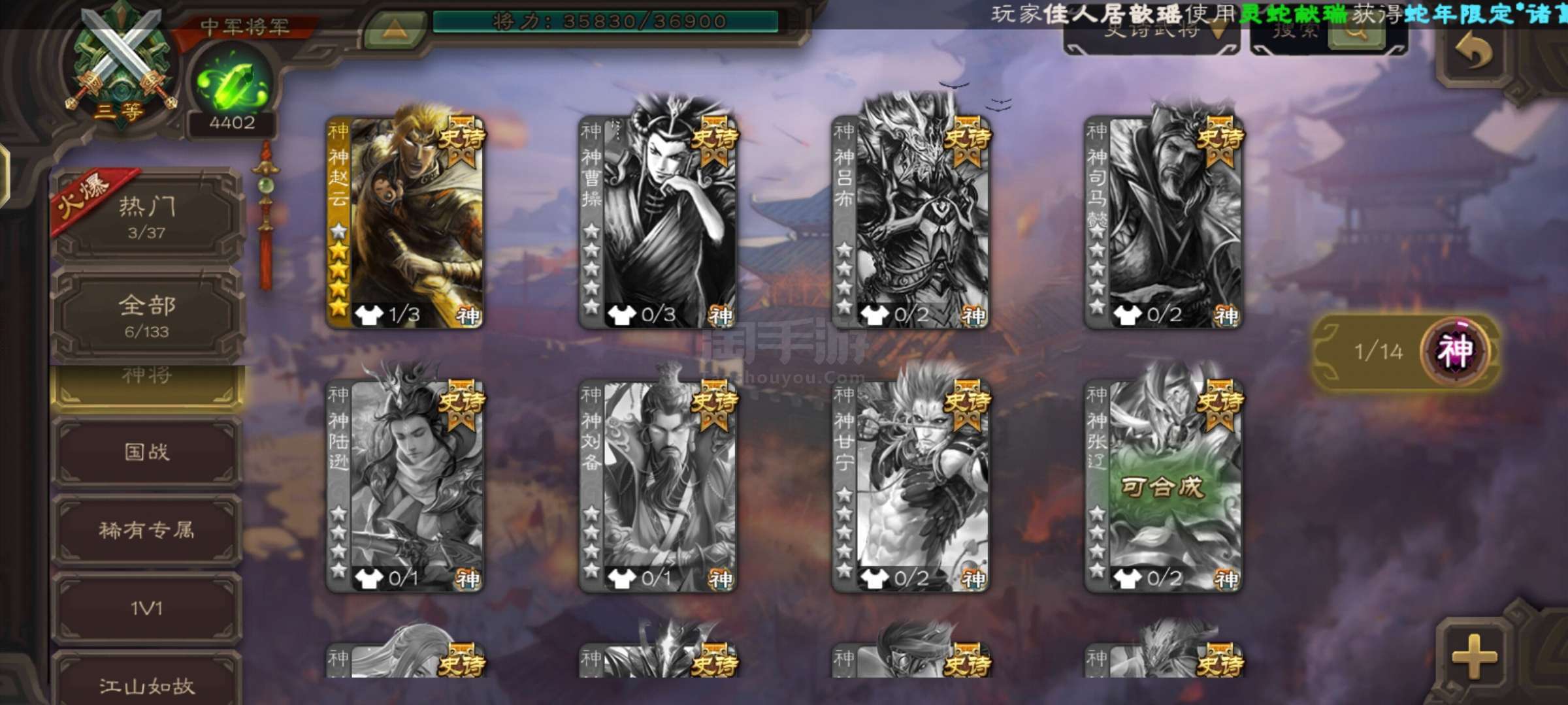 史诗武将数量: