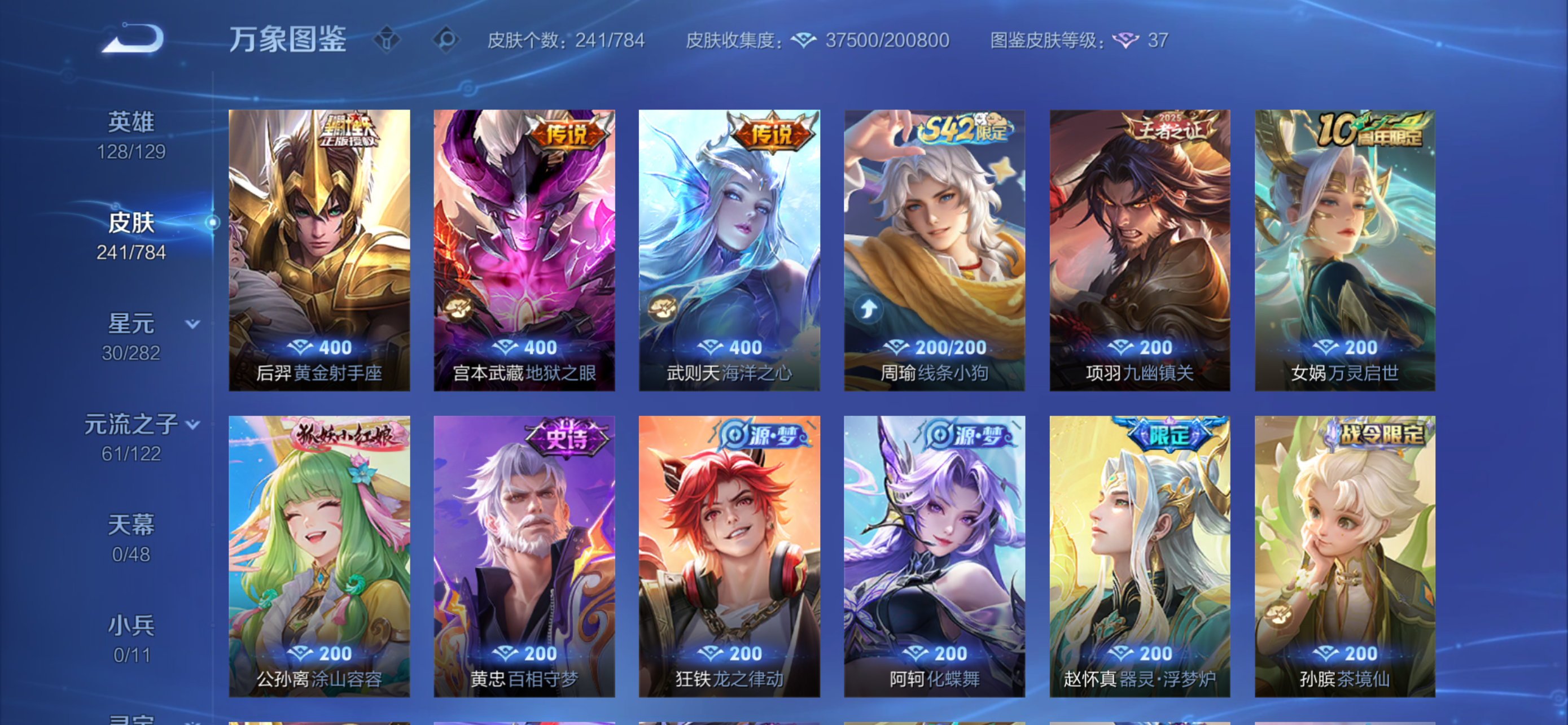 4典藏,2无双,基德在内12传说,累充宝箱没开,星君娄金/千劫归真,夜都魔契/冰霜神衹,新出一颗水晶没兑换,差280元v8