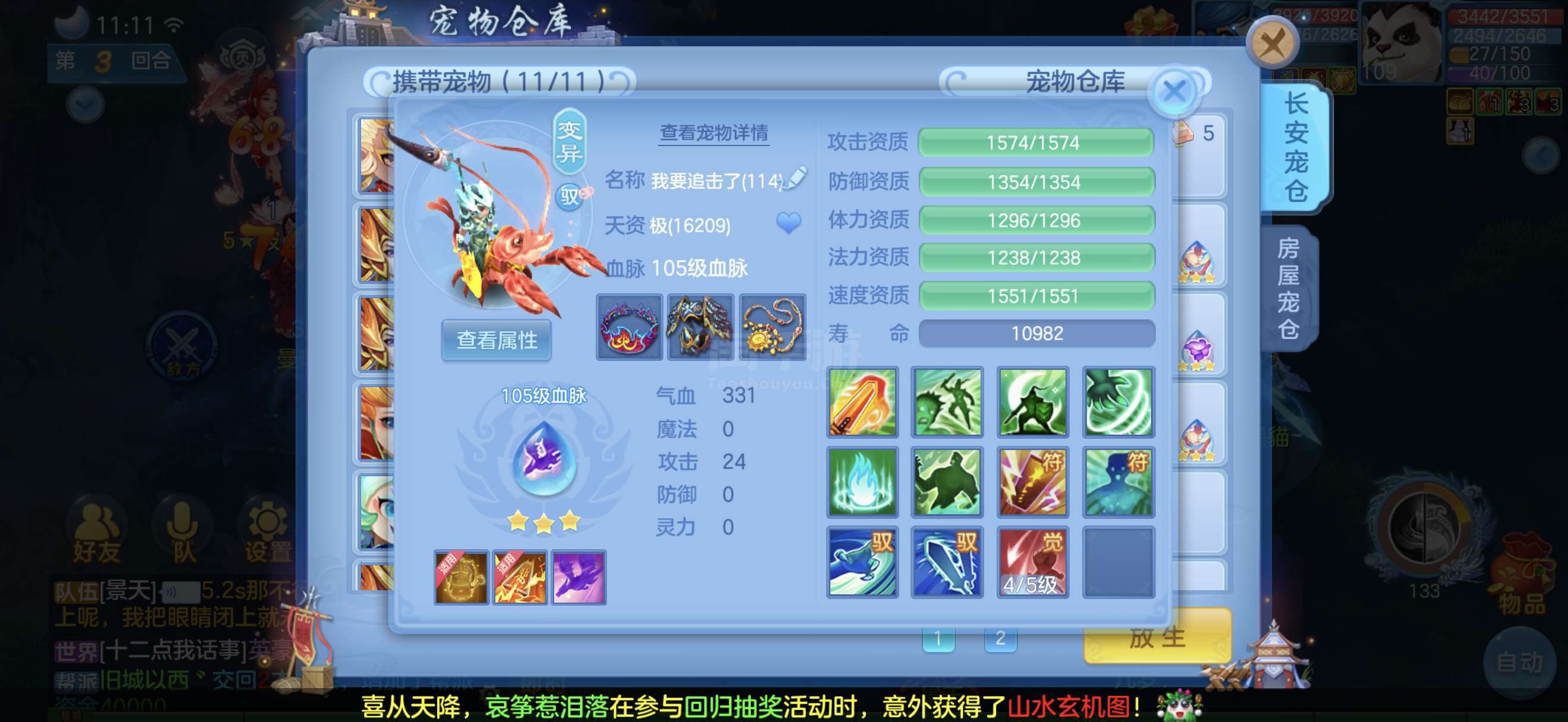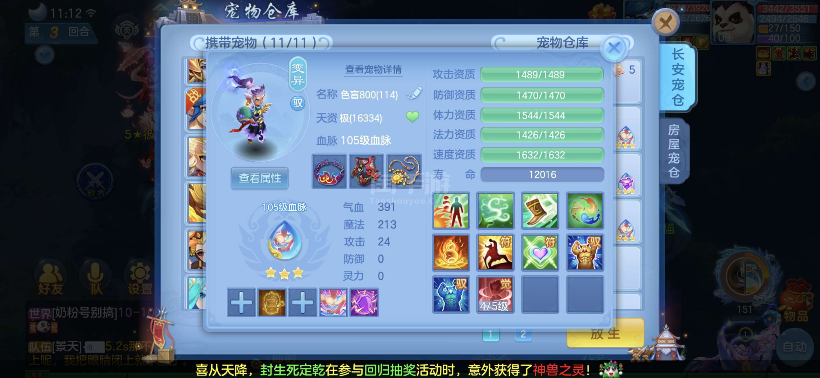 安卓官方 13段混狮子,上手很舒服,装备宝宝都可以,海马,建木,童子,浣熊专属,有源生,宝宝血脉也很好