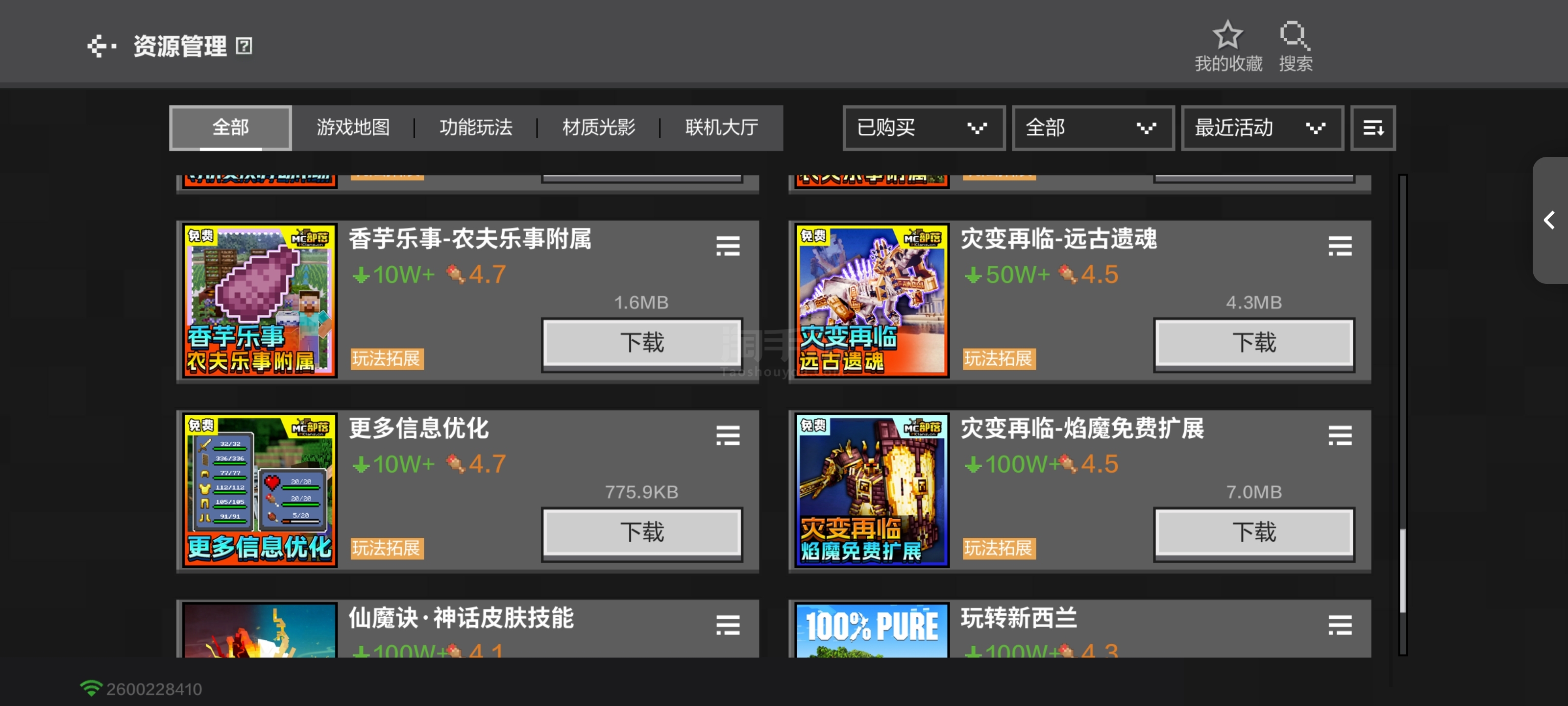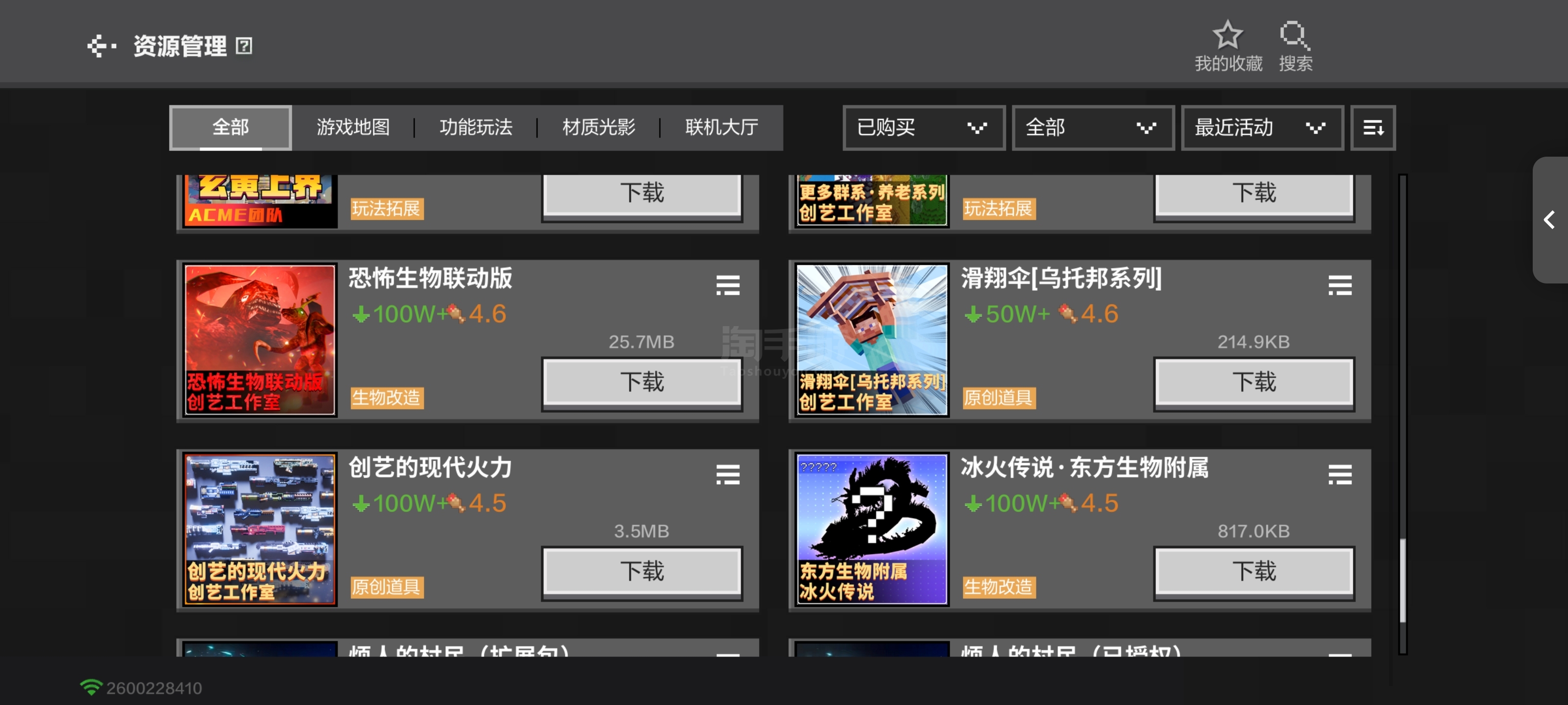 海量热门模组,斗罗全套,冰火全套,惊变/畸变全套,雾中人,贝爷全套,烦人的村民全套,和上百高质量模组