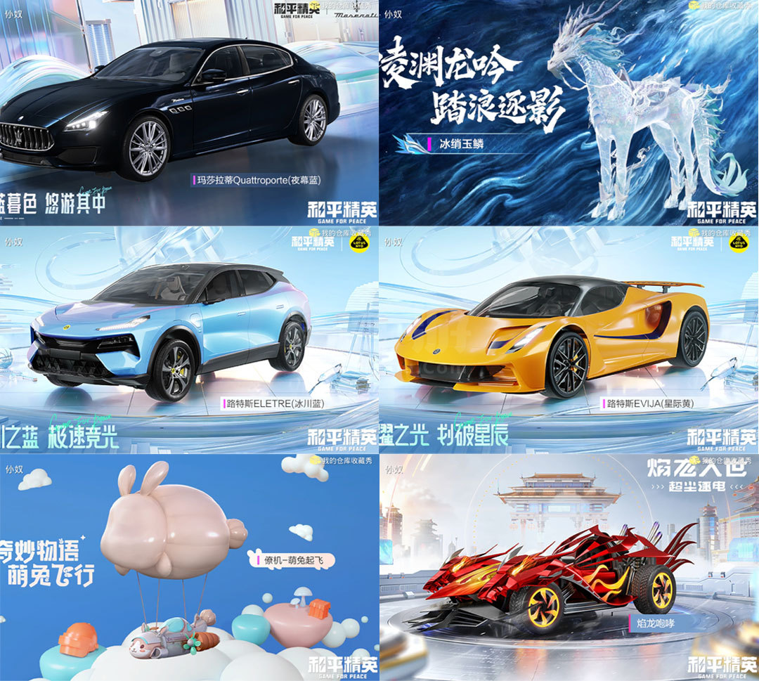 载具5:冰绡玉鳞,玛莎拉蒂Quattroporte(夜幕蓝),路特斯ELETRE(冰川蓝),路特斯EVIJA(星际黄),焰龙咆哮,